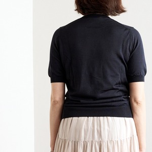 最高級のシルクを用い、18ゲージ天竺編みをフルファッション*で丁寧に編み立てた半袖クルーネック。上品な光沢と滑らかな肌触り。