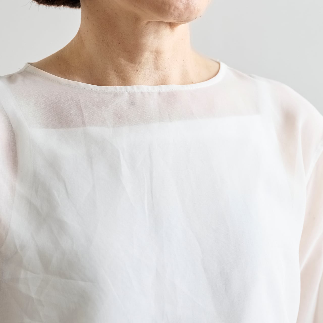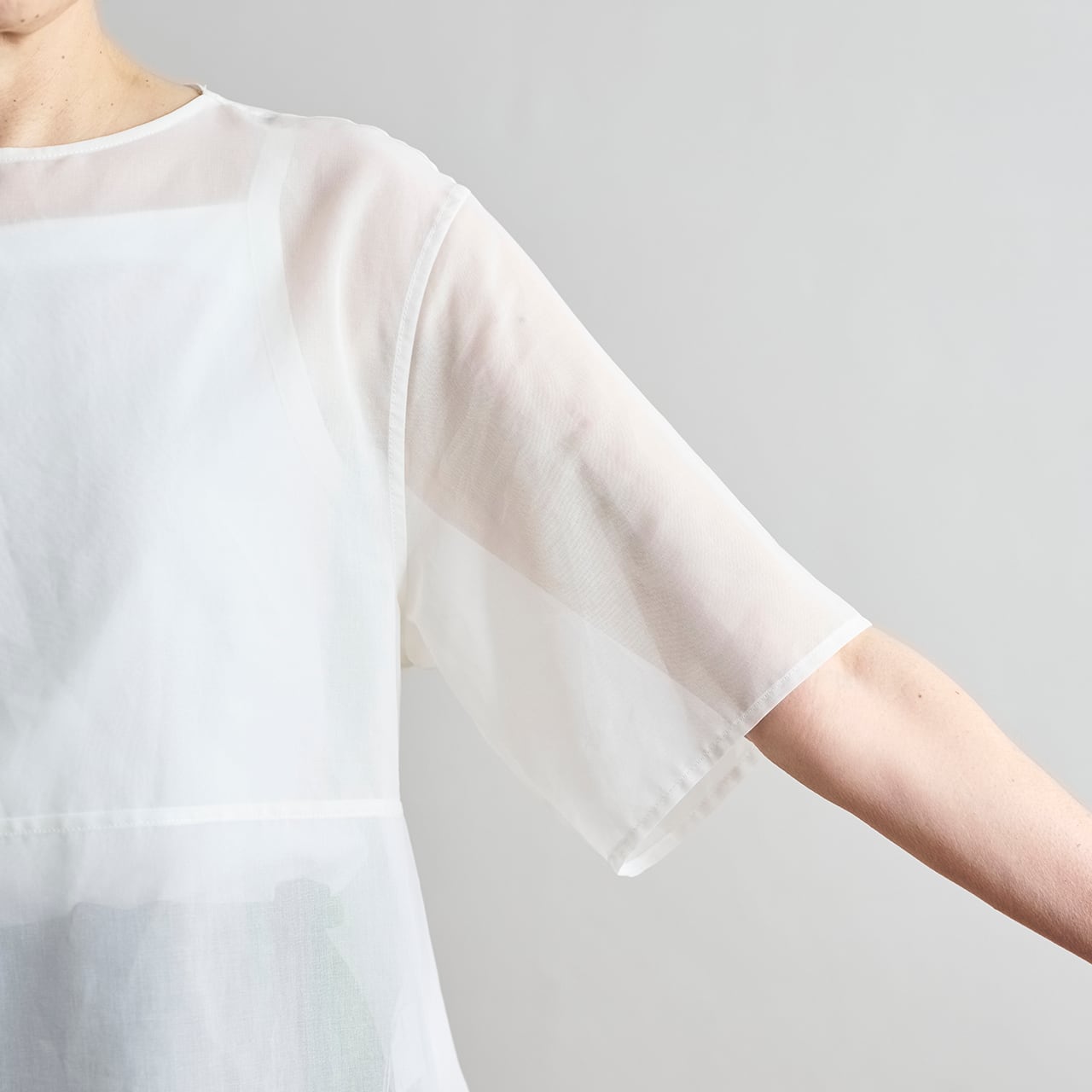 【30%off】10 HANDCRAFTED MODERN テンハンドクラフテッドモダン organza half sleeve pullover オーガンジーブラウス ホワイト
