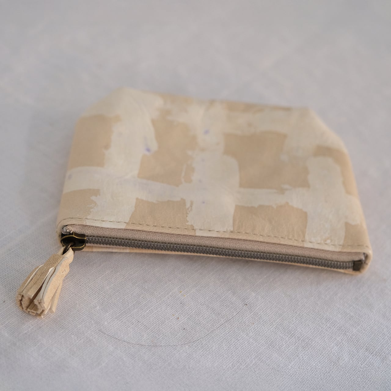 害獣として駆除される鹿や猪の革を草木の染料で色付けされた革による作品です。