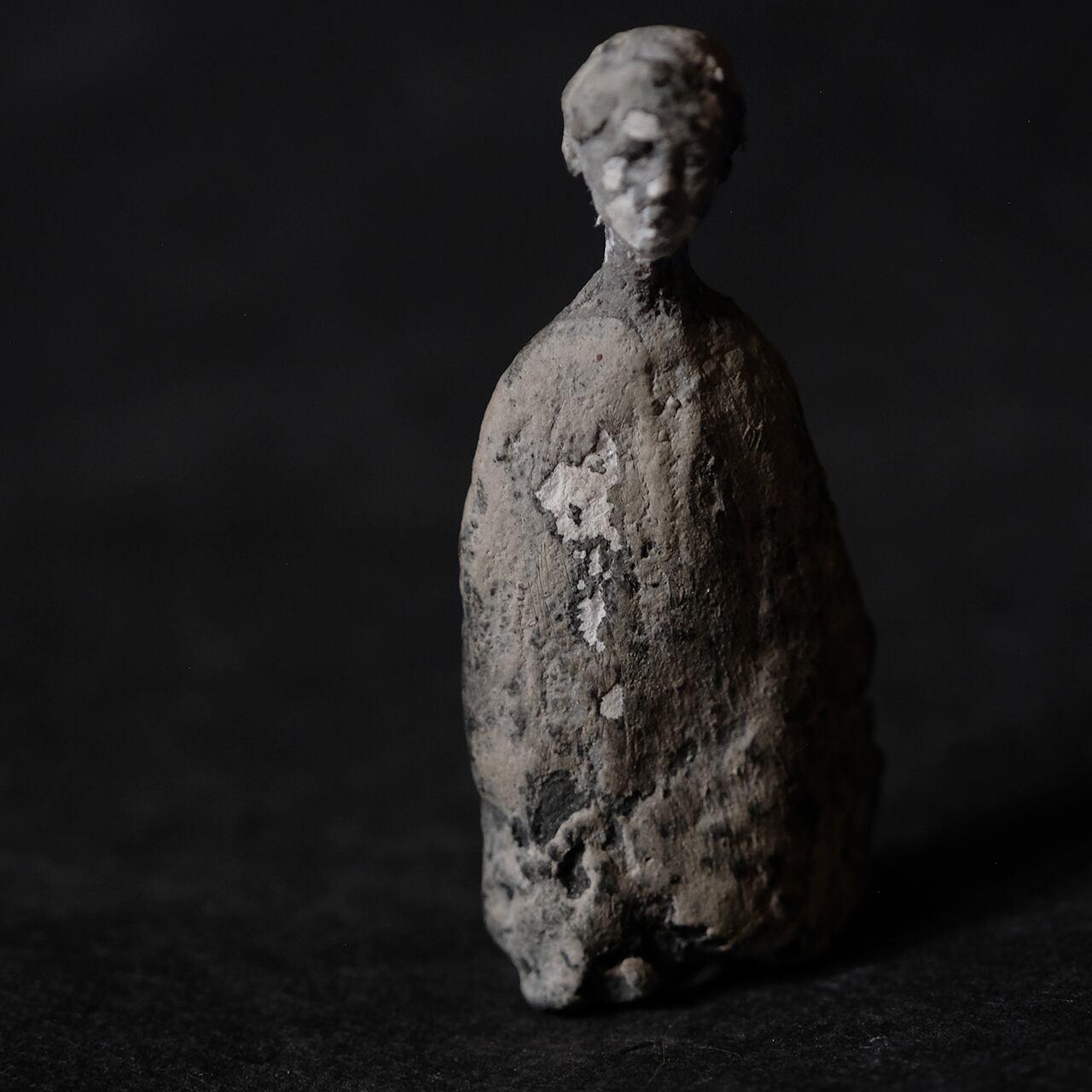 造形後に微量のアクリルと顔料粉末、メディウムを混ぜたペーストをひと塗り毎に配分を変えながら何度も重ねて質感を作っています。時を経た自然な風合いを表現しています。