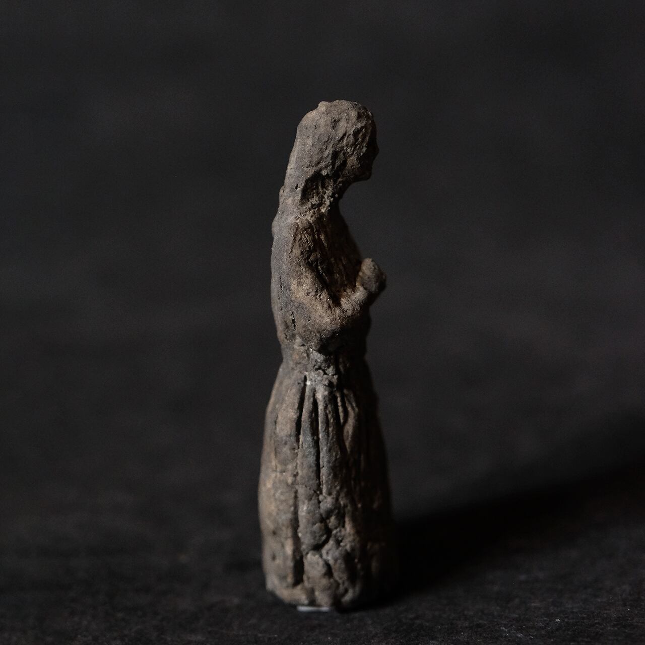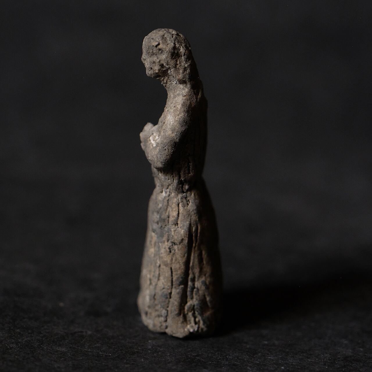 造形後に微量のアクリルと顔料粉末、メディウムを混ぜたペーストをひと塗り毎に配分を変えながら何度も重ねて質感を作っています。時を経た自然な風合いを表現しています。