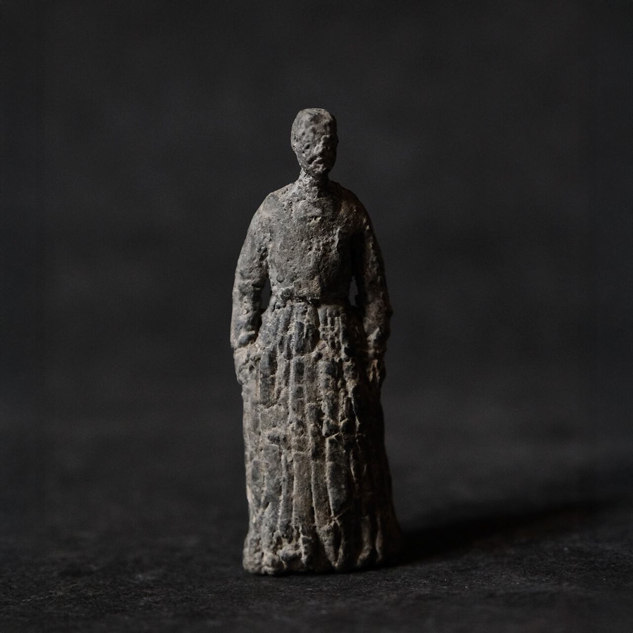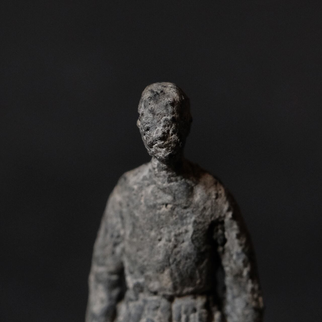 造形後に微量のアクリルと顔料粉末、メディウムを混ぜたペーストをひと塗り毎に配分を変えながら何度も重ねて質感を作っています。時を経た自然な風合いを表現しています。