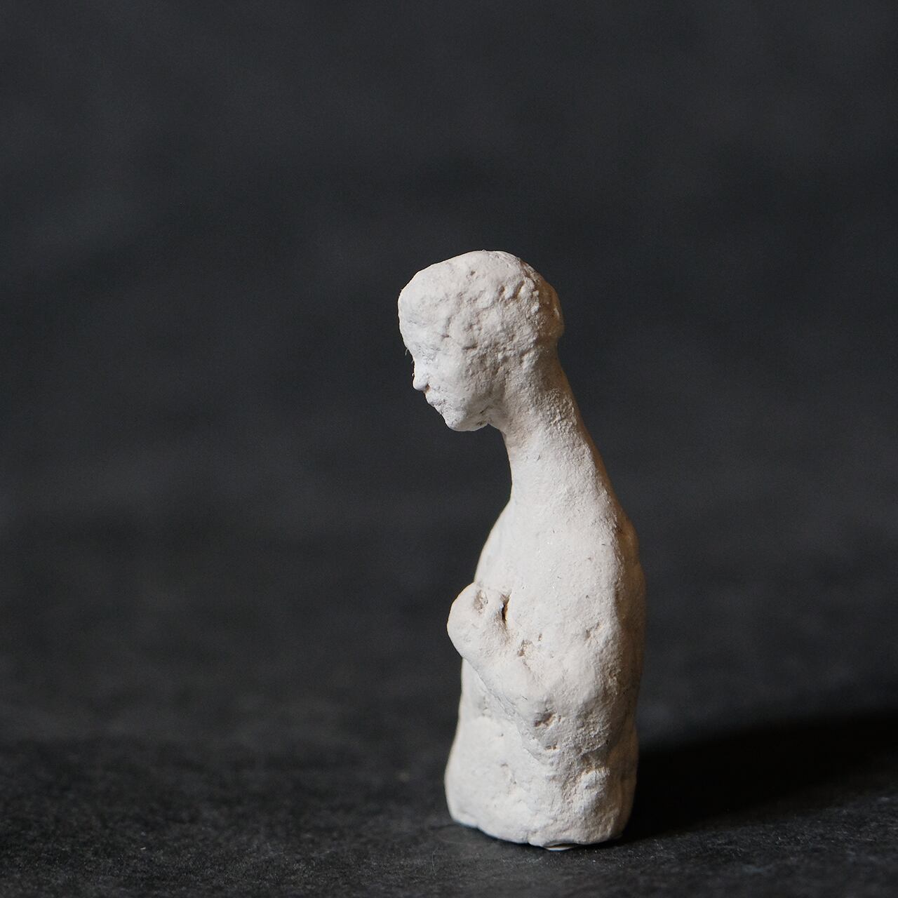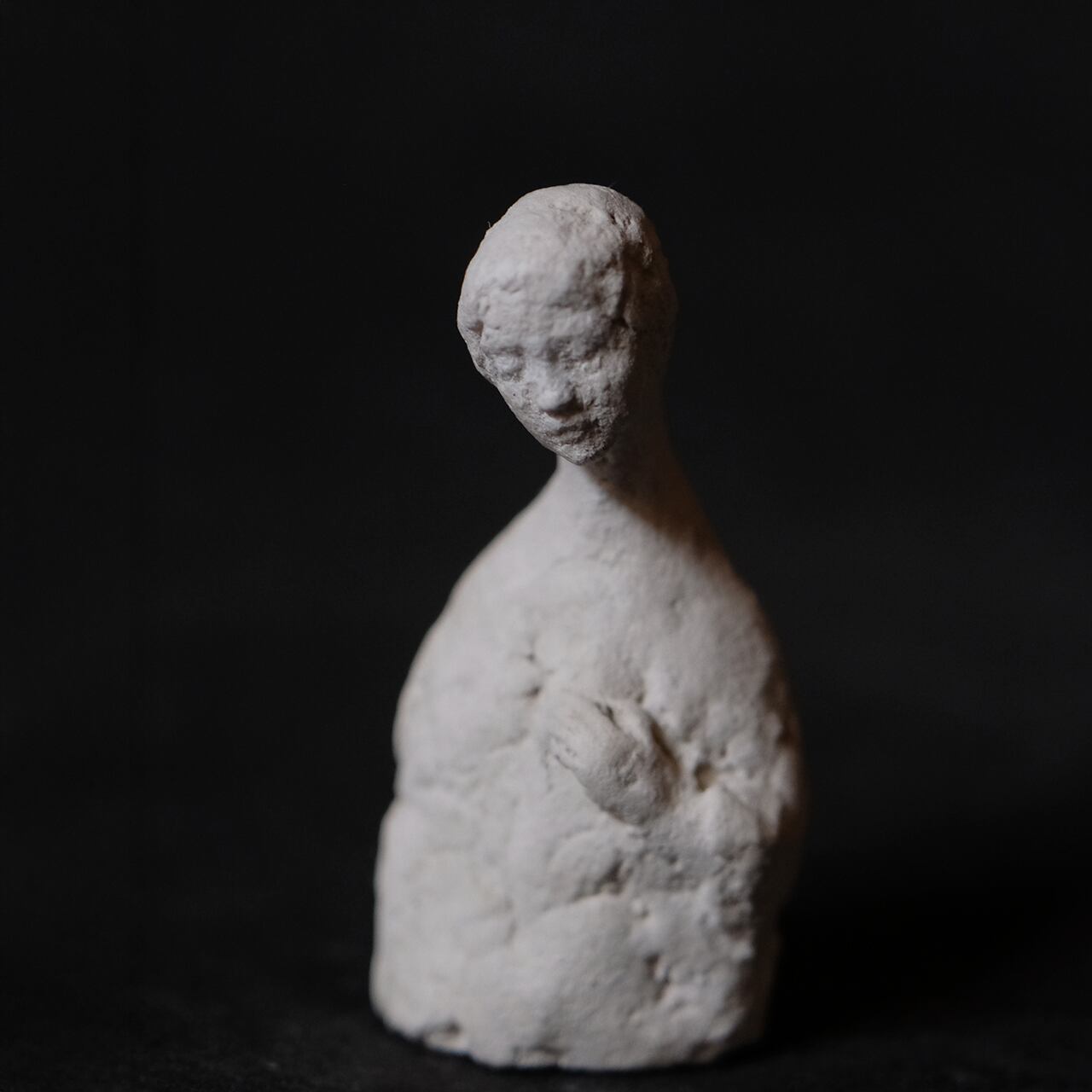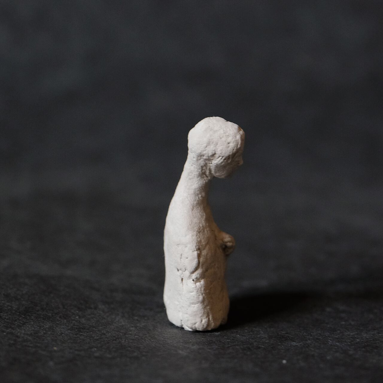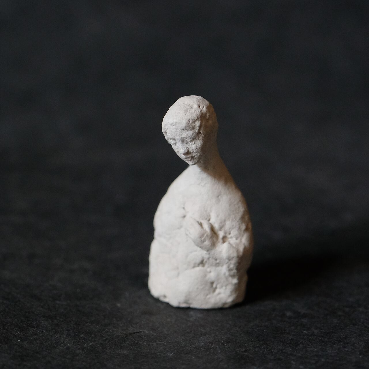 造形後に微量のアクリルと顔料粉末、メディウムを混ぜたペーストをひと塗り毎に配分を変えながら何度も重ねて質感を作っています。時を経た自然な風合いを表現しています。