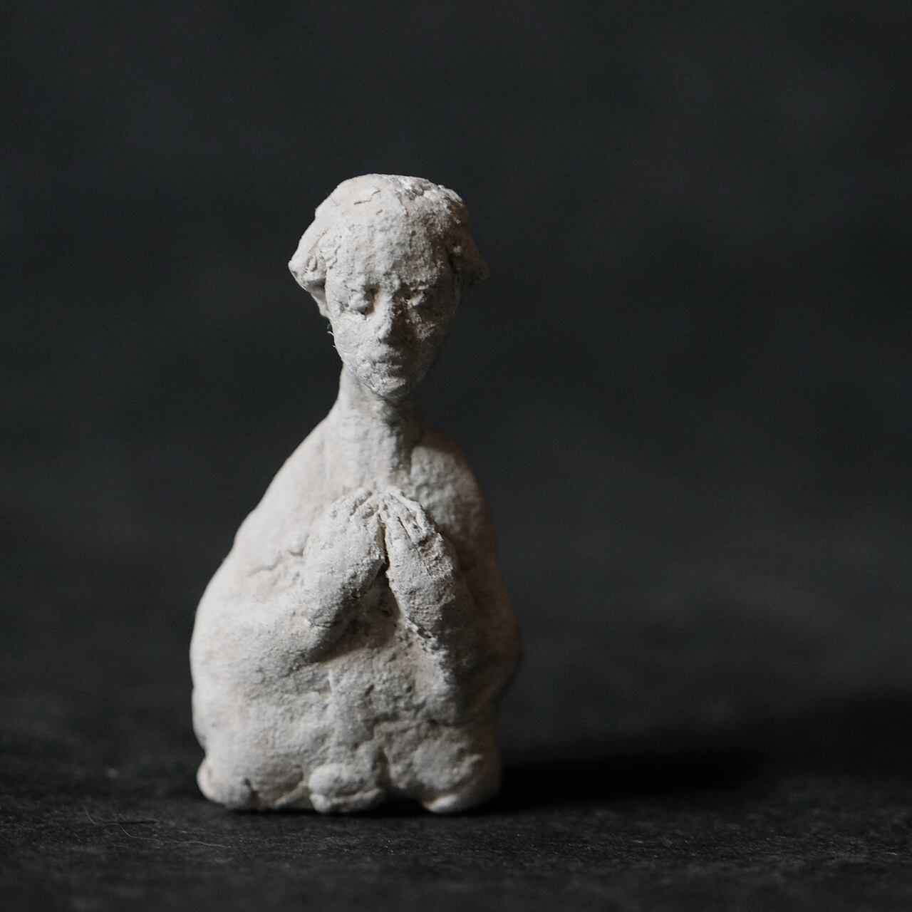 造形後に微量のアクリルと顔料粉末、メディウムを混ぜたペーストをひと塗り毎に配分を変えながら何度も重ねて質感を作っています。時を経た自然な風合いを表現しています。