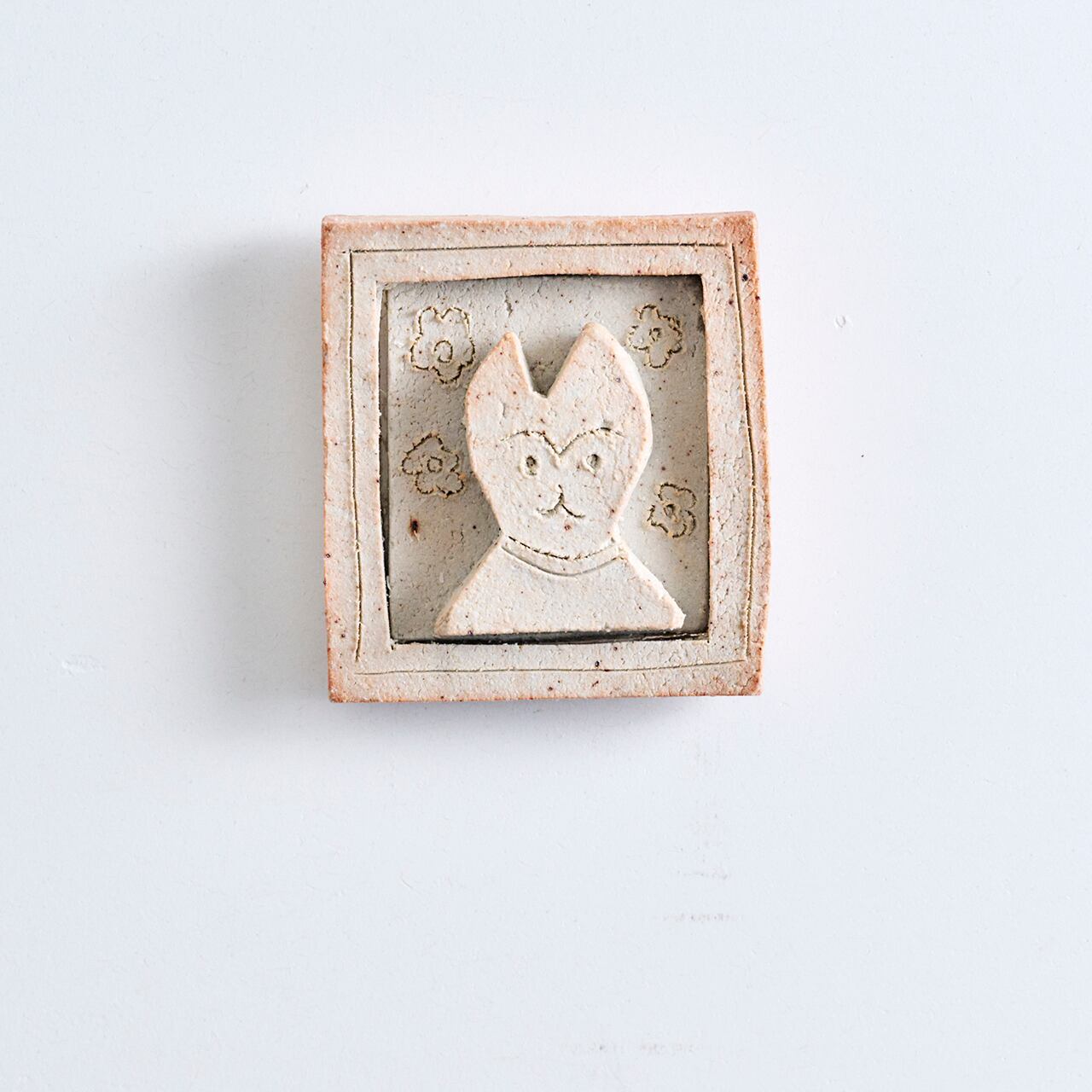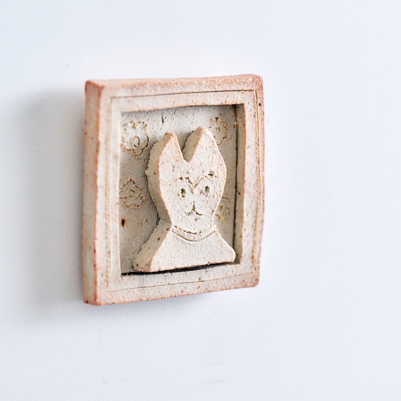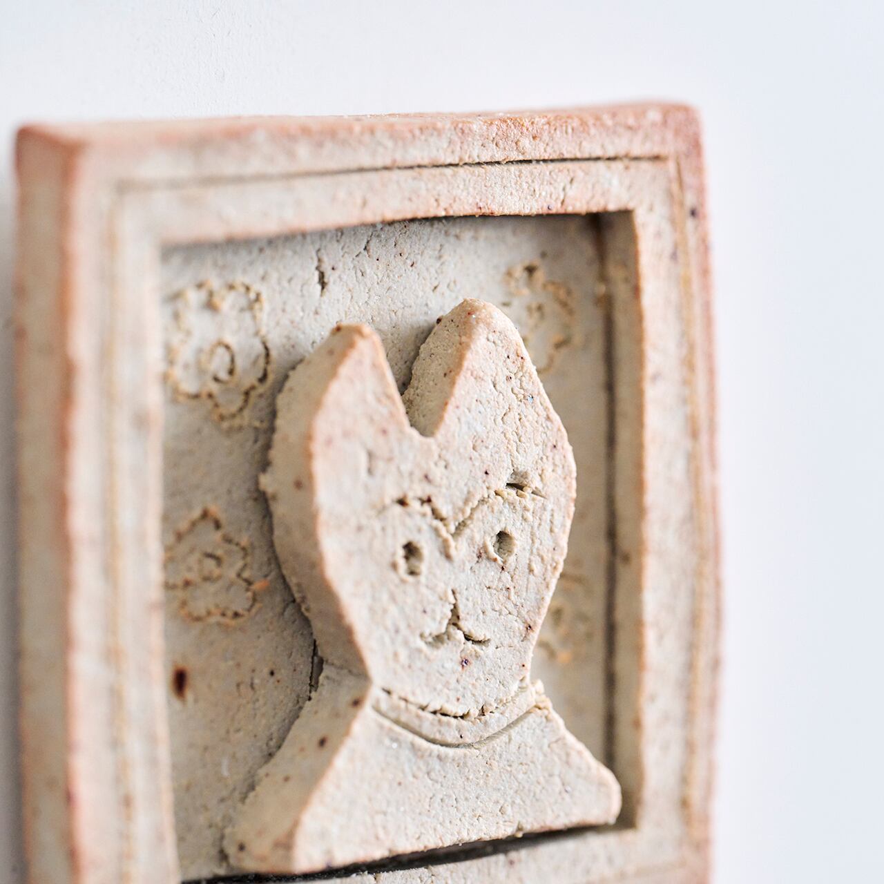 陶器の平面作品は壁に画鋲を打って、それを裏の凹みに引っ掛けてください