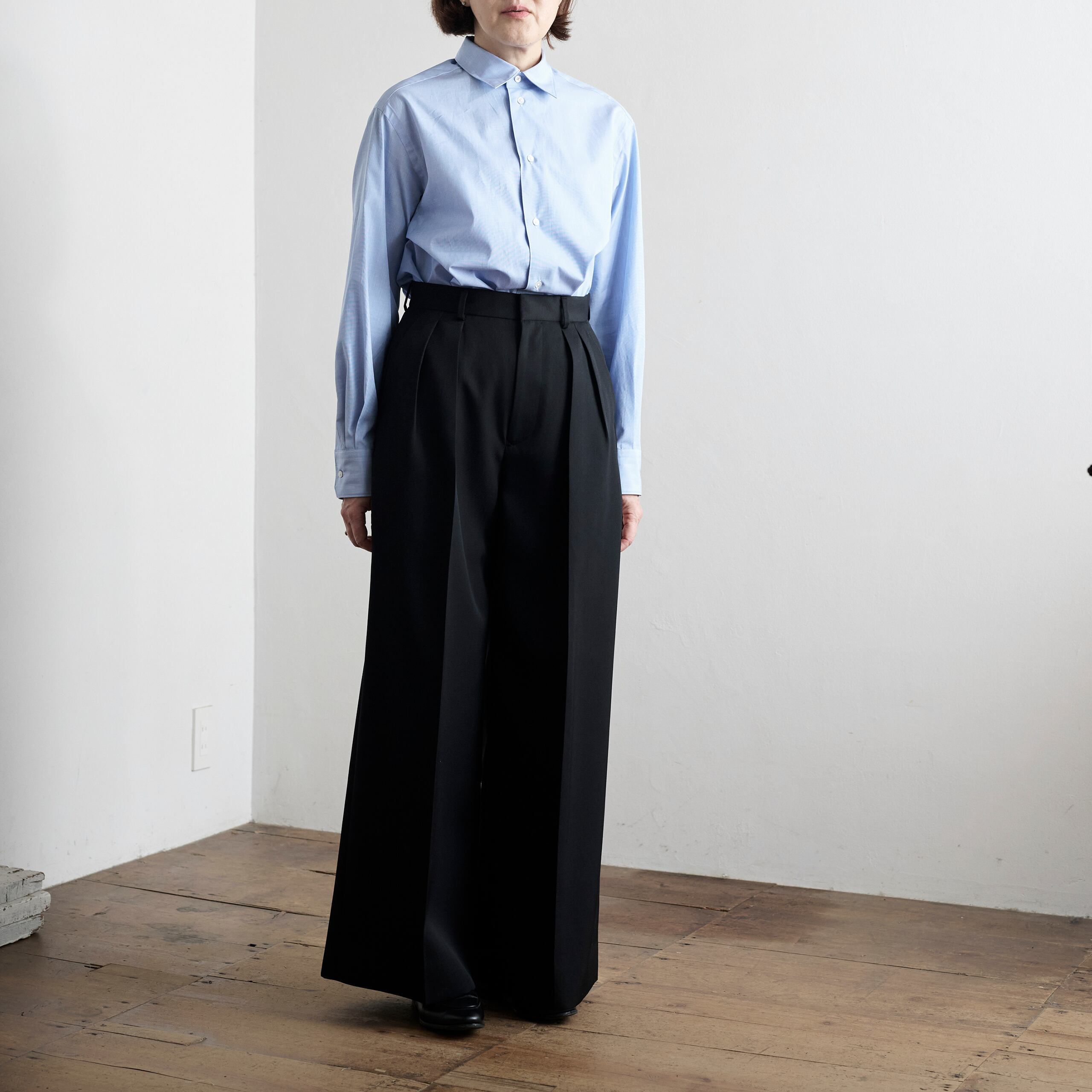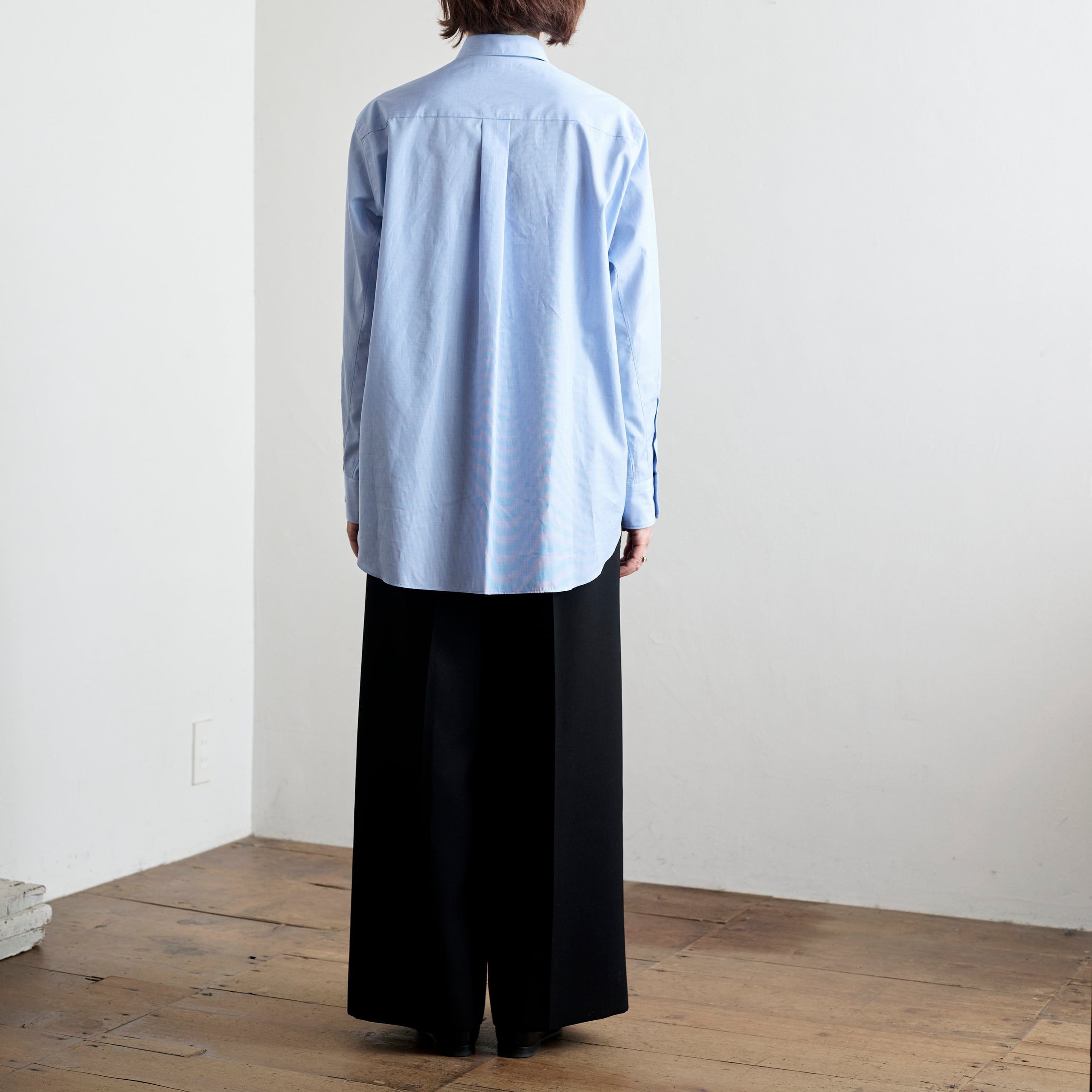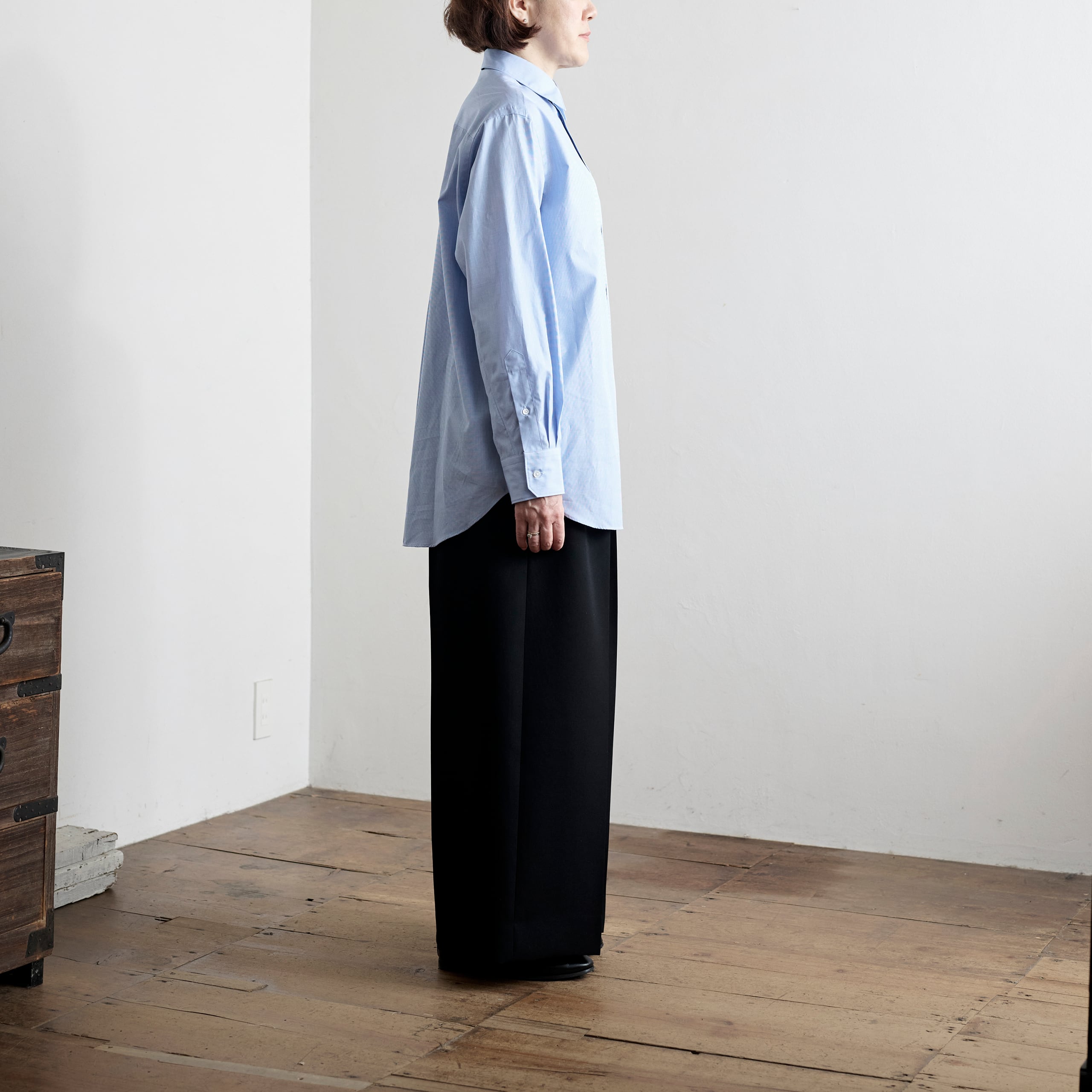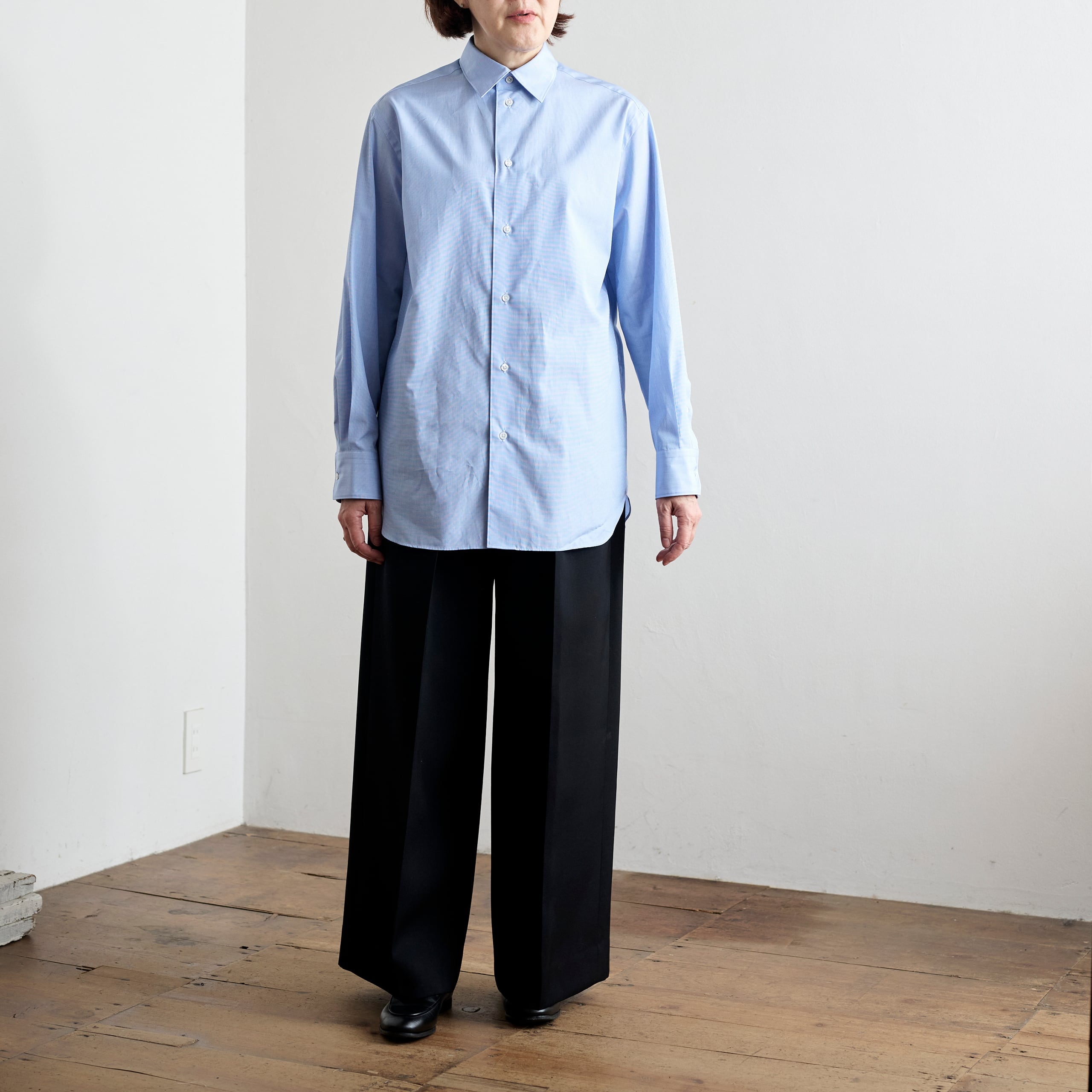 目の細かい高品質なコットンブロードはしなやかで、肌触りも抜群です。マニッシュなスタイルにおすすめです。