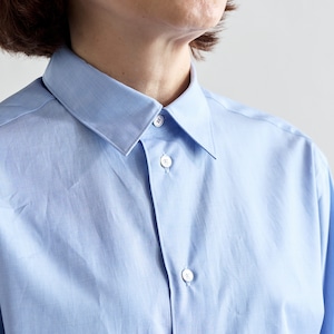 loef のアイコンアイテムのひとつでもある、スタンダードなシャツはすっきりとした印象のコンパクトなフィット感が魅力のレギュラーカラーシャツ。ワードローブの定番アイテムとして長く愛用いただけるアイテムです。