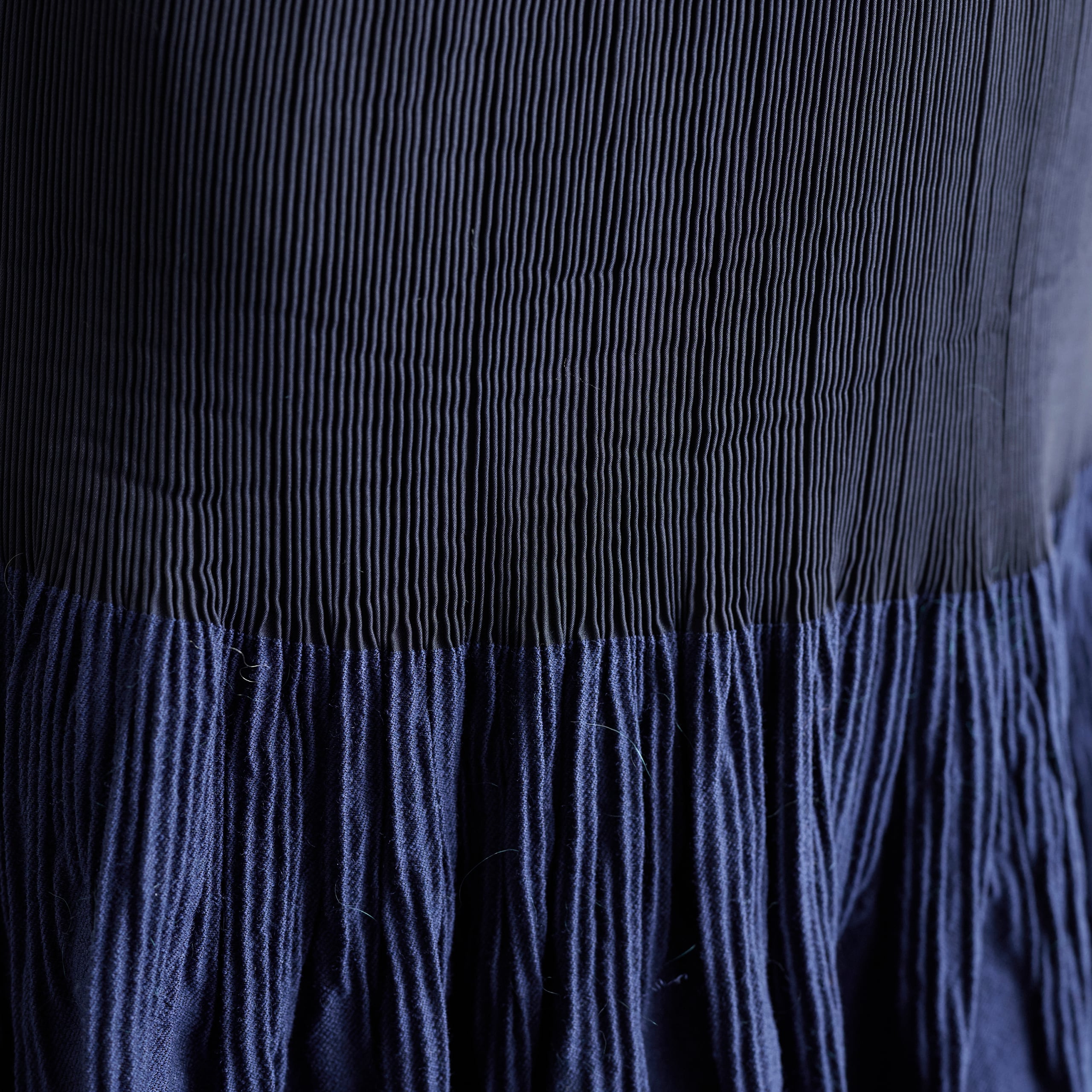 プリミティブさとモード感をミックスしたような雰囲気の不思議なルックスのスカートはウエストのプリーツが個性的でリラックスした穿き心地です。