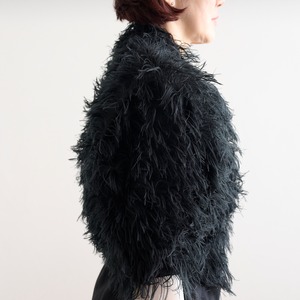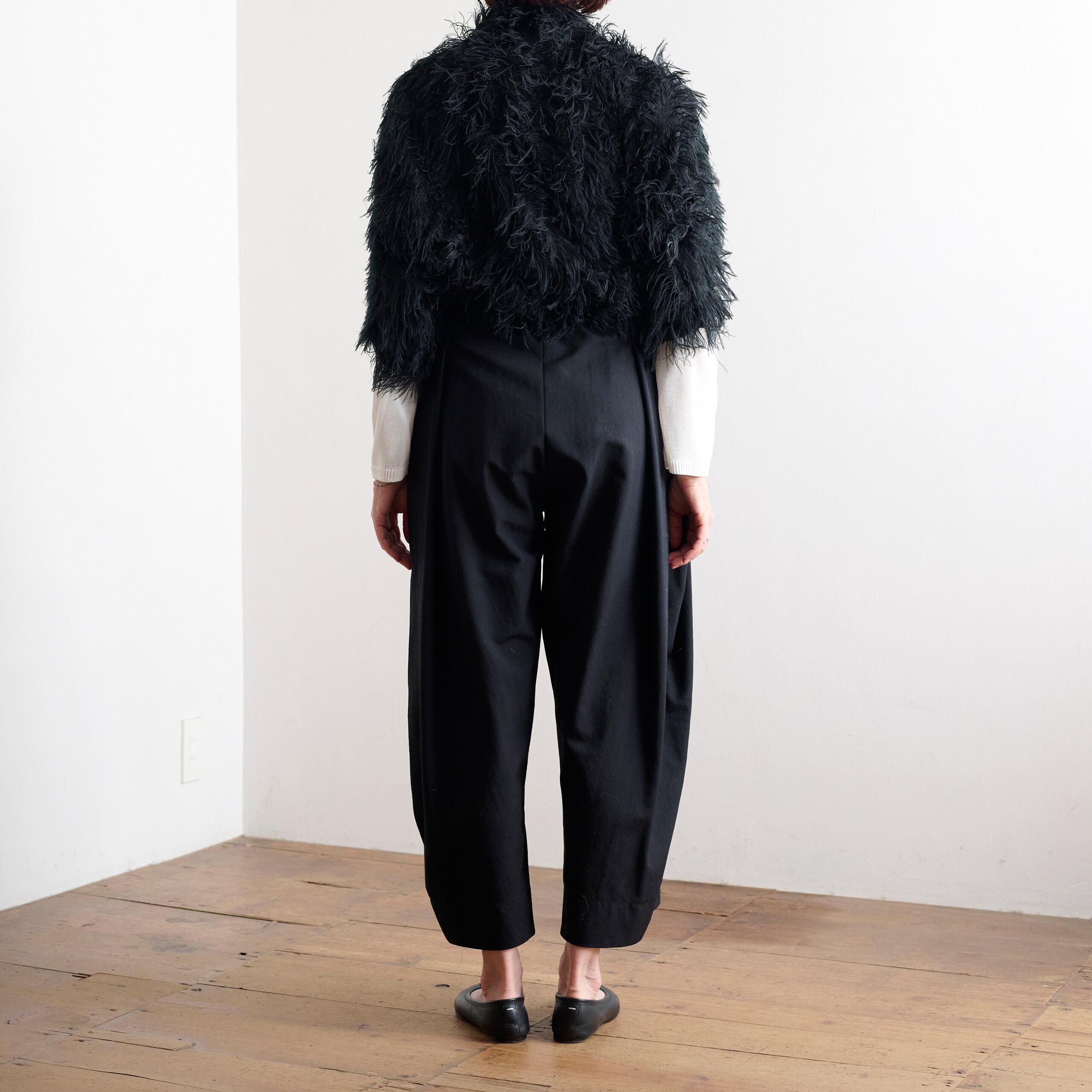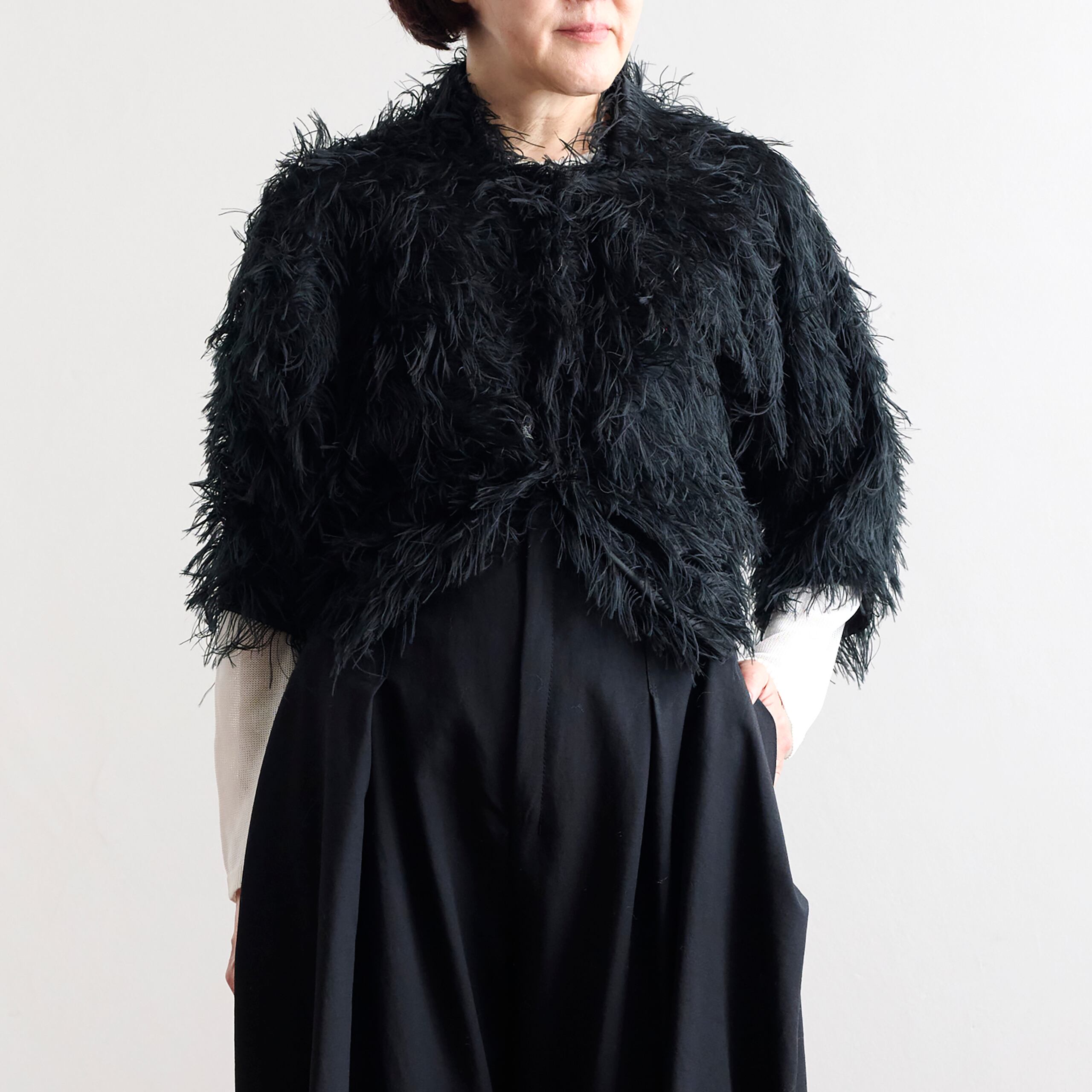 毛足の長いシャギーをあしらったトップスはカーディガンのようにもベストのようにもお使いいただけます