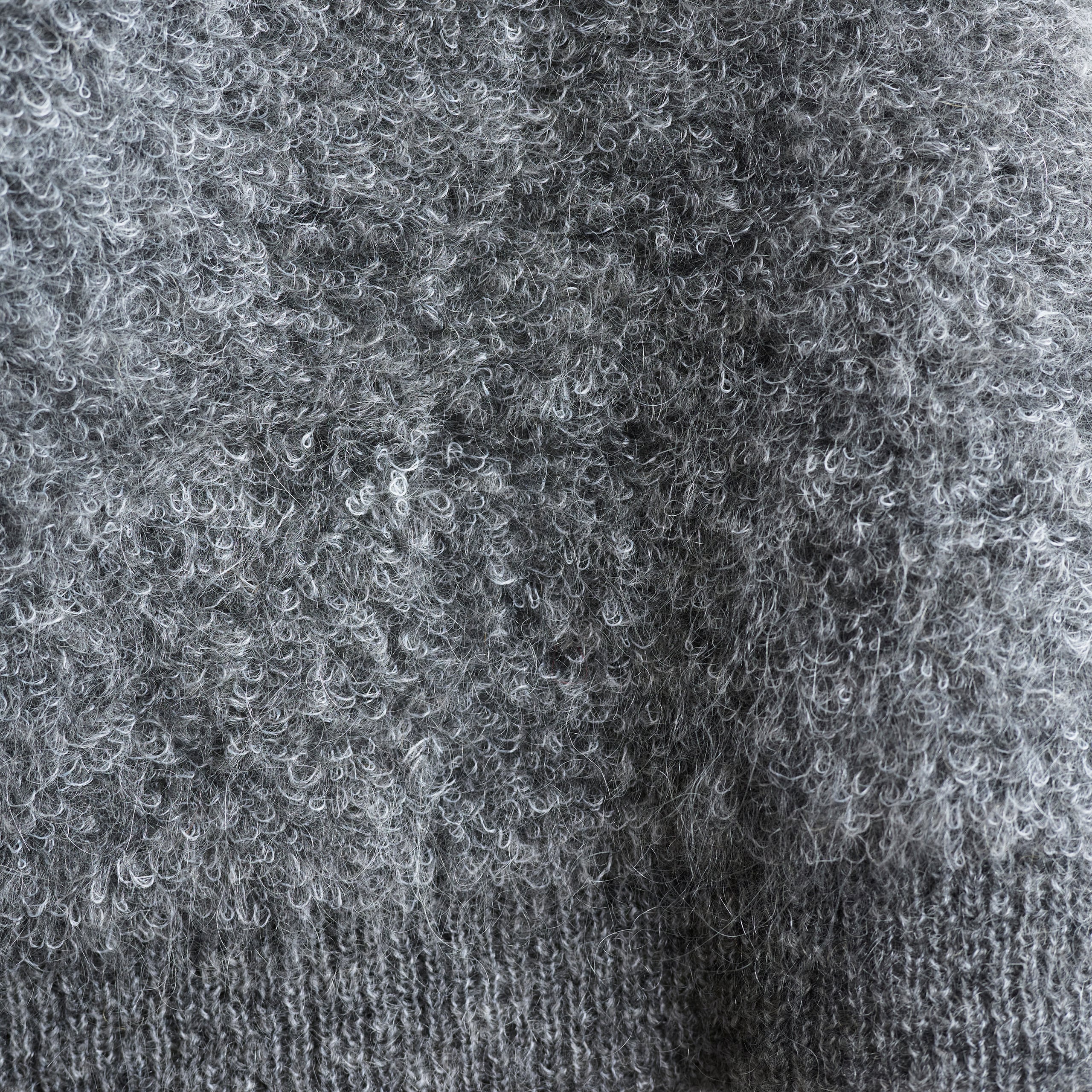 編地は膨らみと弾力性が生まれるループパイル編み。モヘアの毛足とループのふんわりとしたファンシー感のある外見を活かす裏使いで、ニット製品で最も良いとされる縫い代がゴロつかずすっきり仕上がるリンキングによる丁寧な縫製で仕上げています。