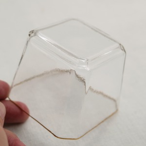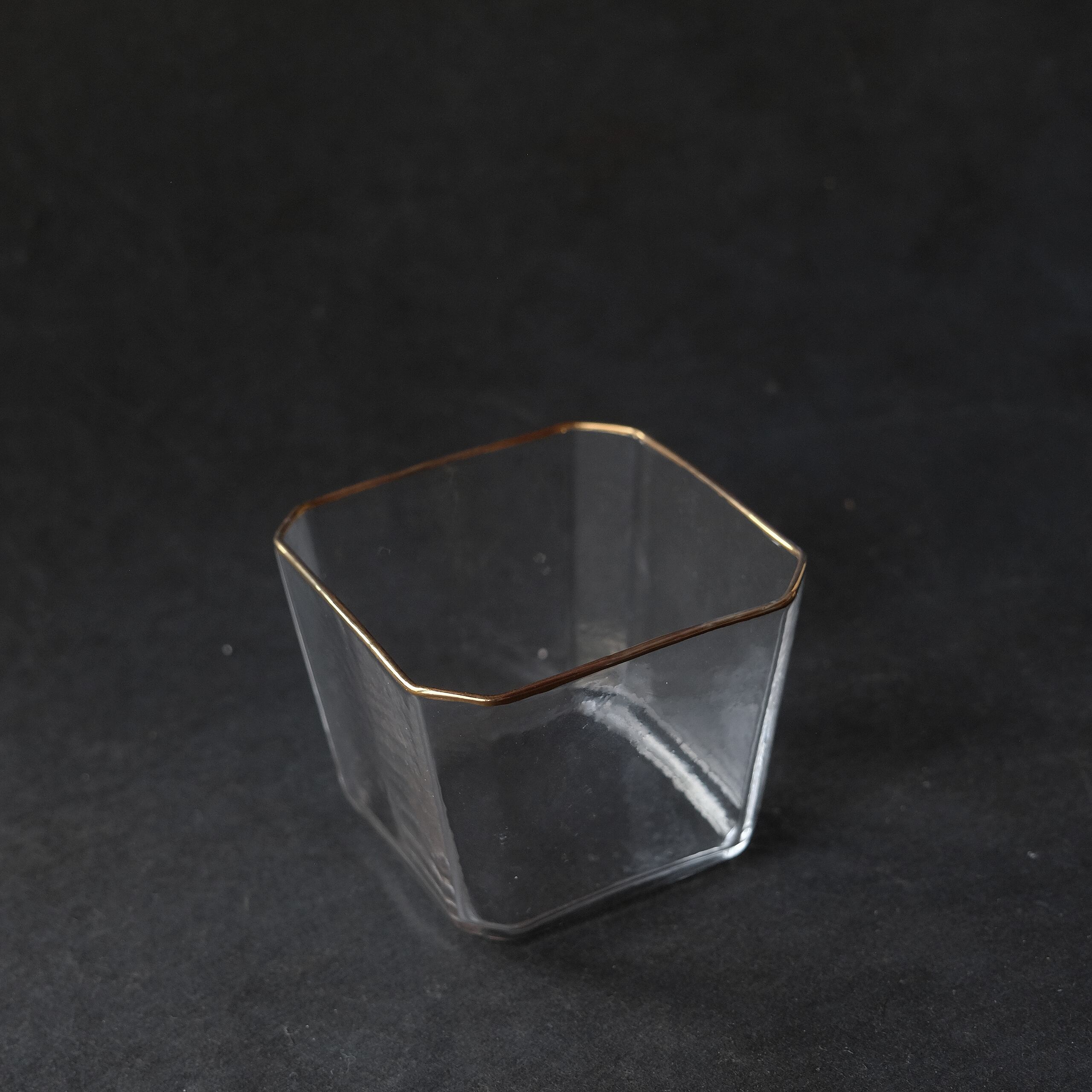 ガラスは軽くて繊細で儚いもの・・・それらを邪魔しないように素っ気ない作品を作られる谷口さんの隅切りの小付。無色透明な色の無いガラスを使用されています。それをなるべく均等な厚さに仕上げられています。