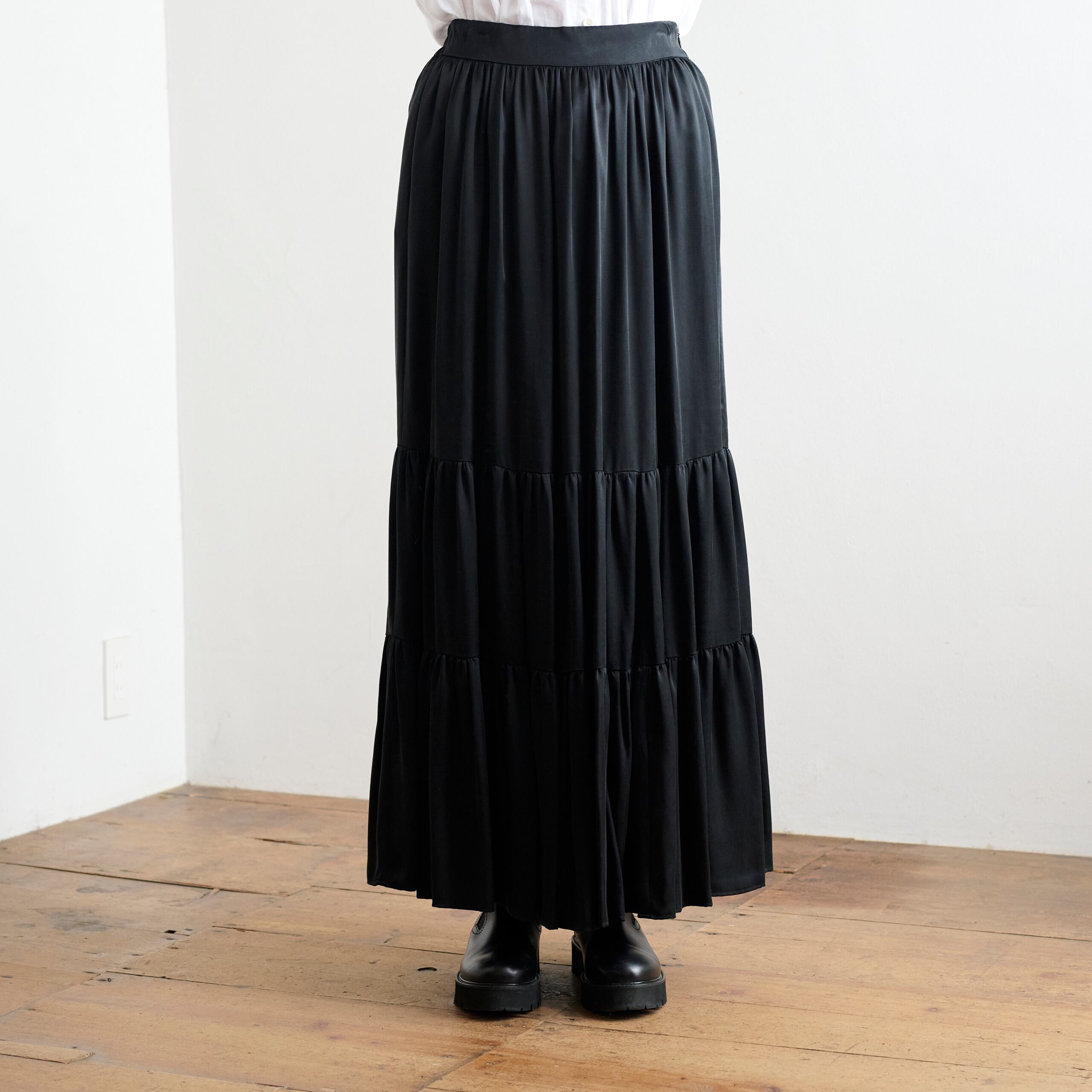 tous tous les deux ensemble トゥレドゥ アンサンブル サテン ティアードスカート ブラック