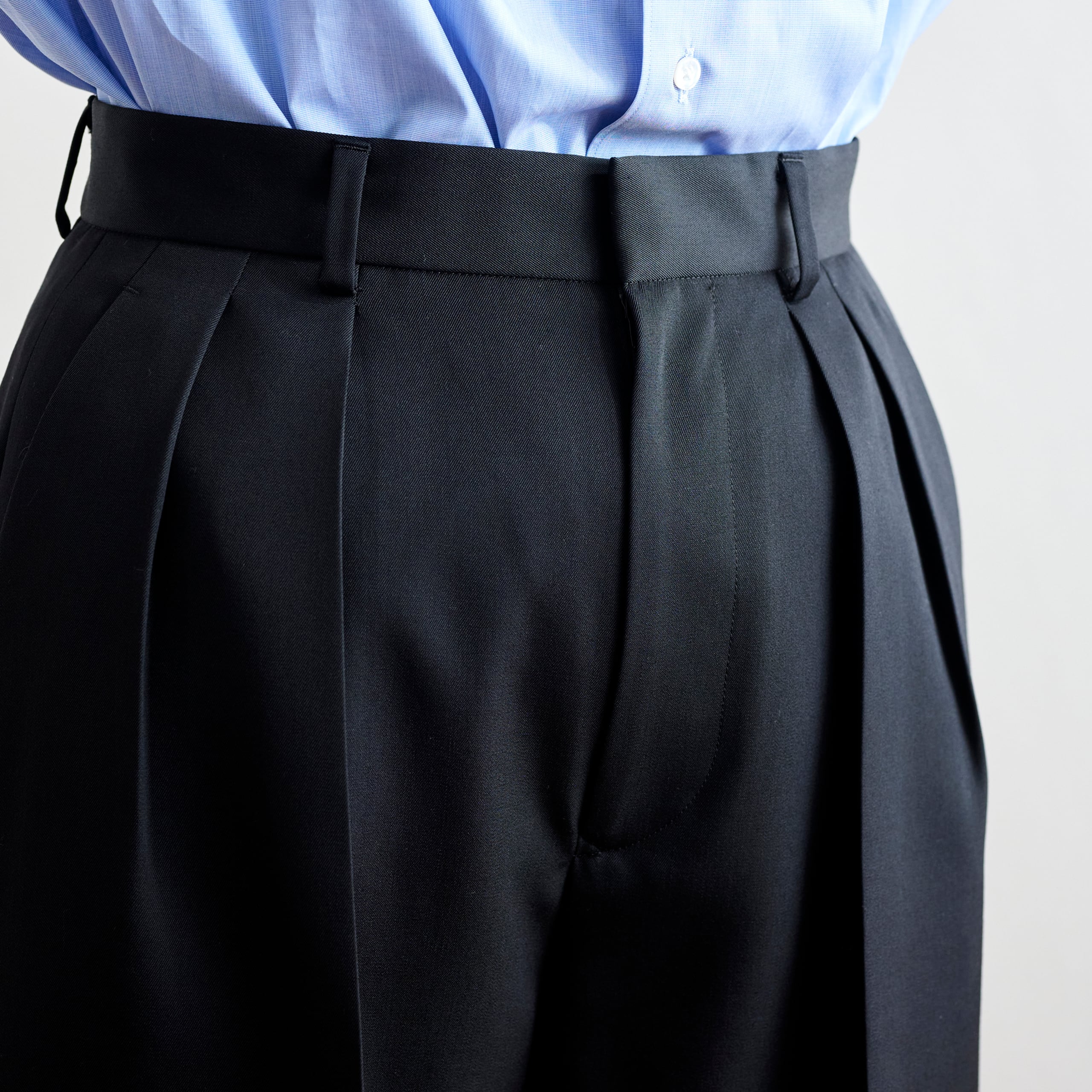 しっかりとした肉感と上品な艶感が魅力のギャバジン素材を使用。程よいハリ感もありつつ、しなやかさも兼ね備えた風合いです。