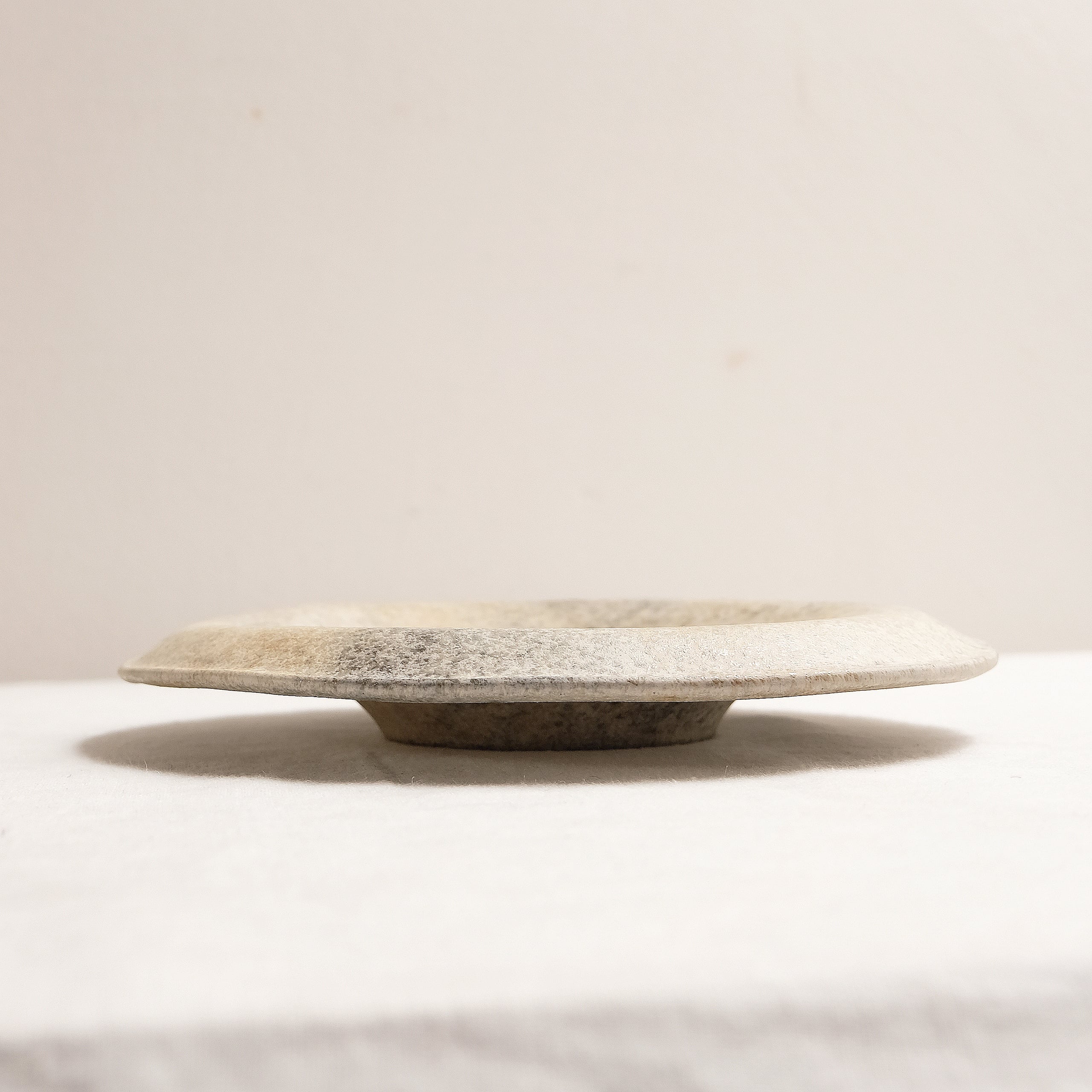 宙に浮いたような意匠のお皿はテーブルに乗せた時の陰影が美しく映えます。深さもあるのでソース料理にも使いやすくなっています。ひとり用のメイン、サラダやパン。カレーやパスタにもお使いいただけます。