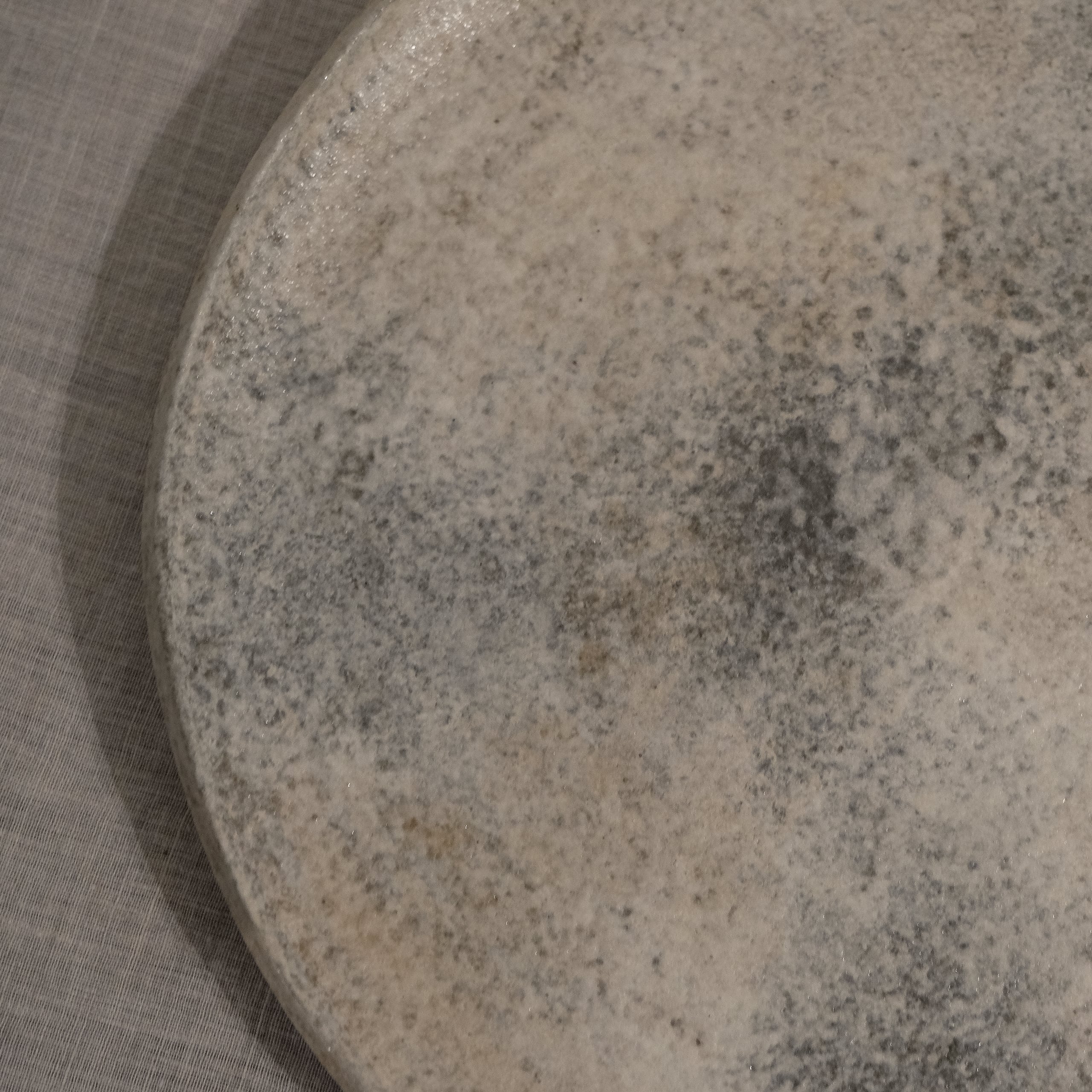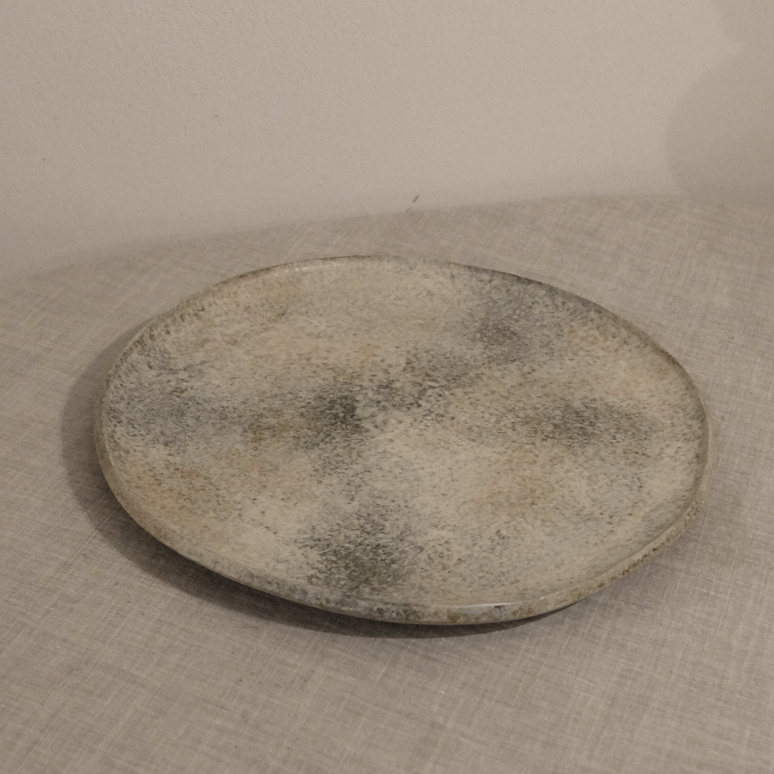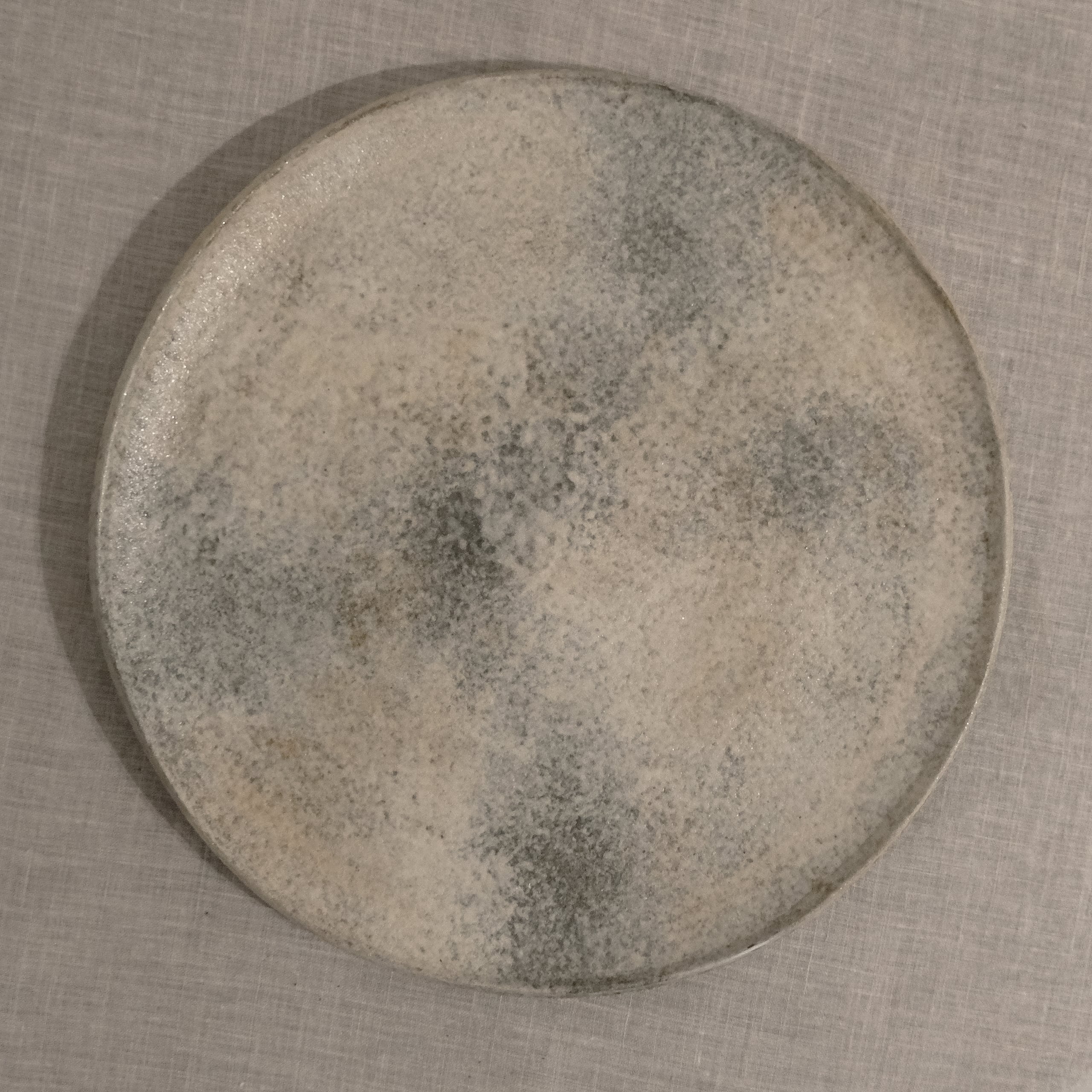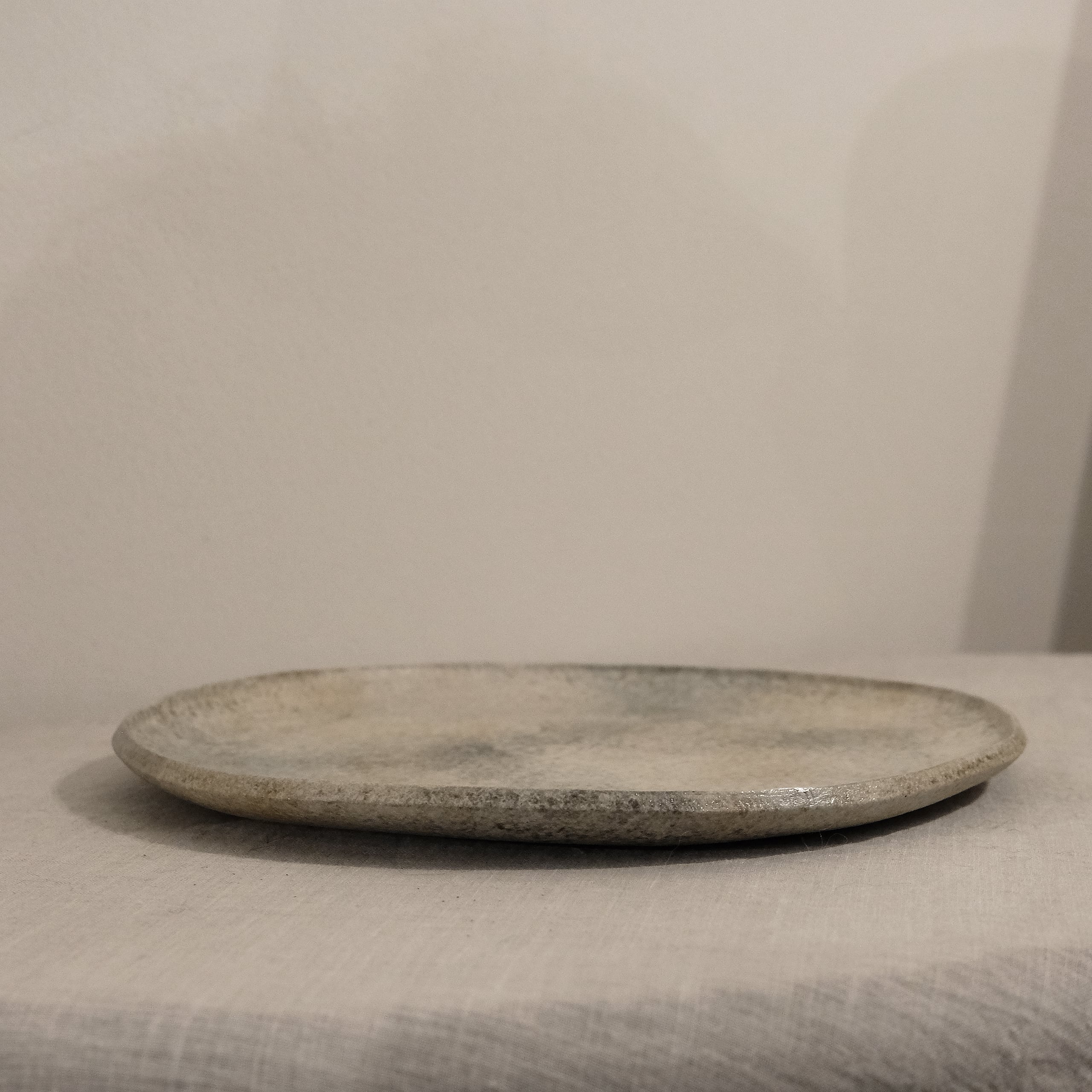 とてもシンプルな意匠の皿は大きめサイズなのでお料理を載せて絵になる器です。余白を残してオードブルを置いても、もちろんメインのお肉屋お魚でも余裕なサイズです。