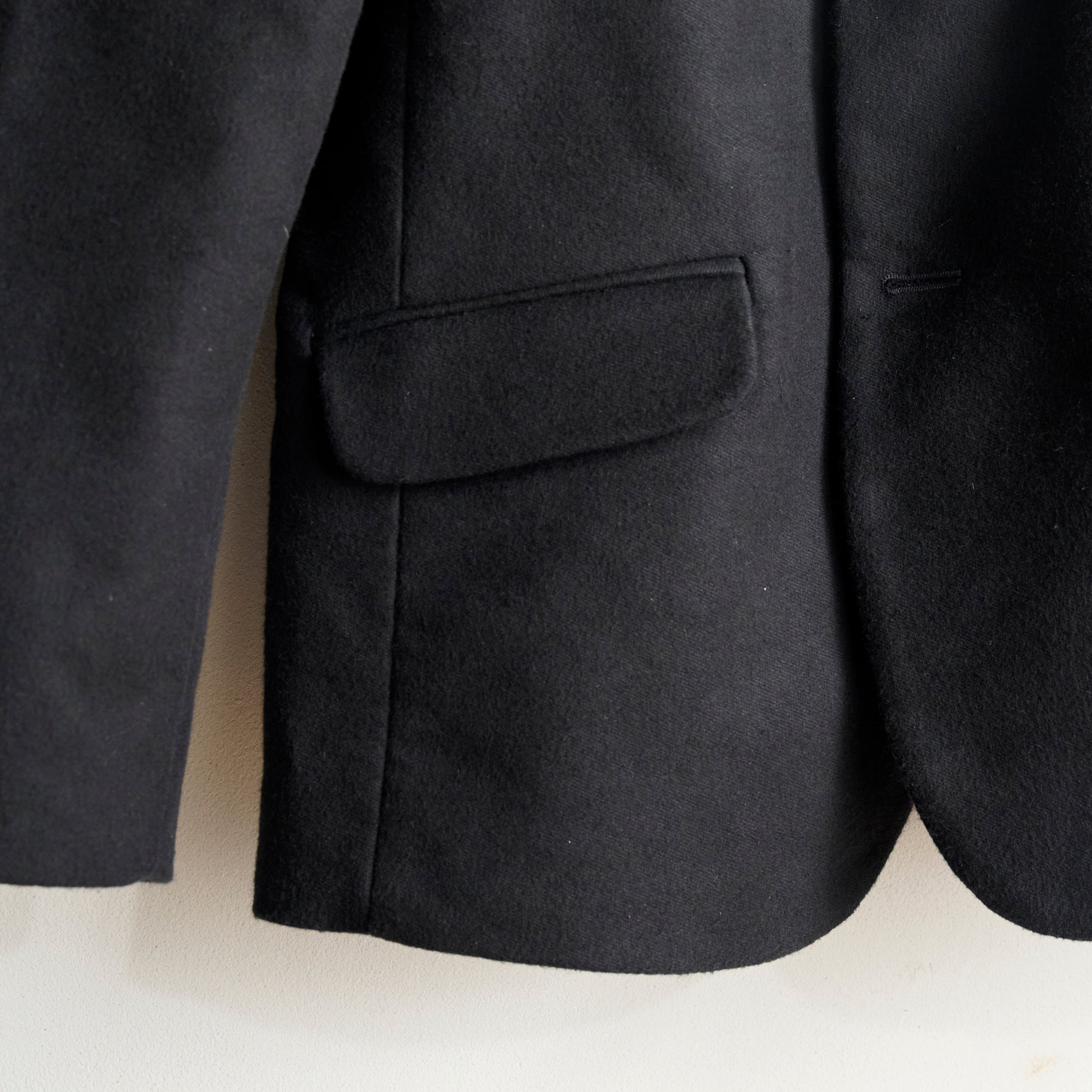 とてもオーセンティックなテーラードジャケットは素材の分厚さと張り感がラペルのシャープさを生み出し収まりも良く、カジュアルなジャケットでも少しエレガンスさも垣間見せる着こなしの幅広いアイテムです