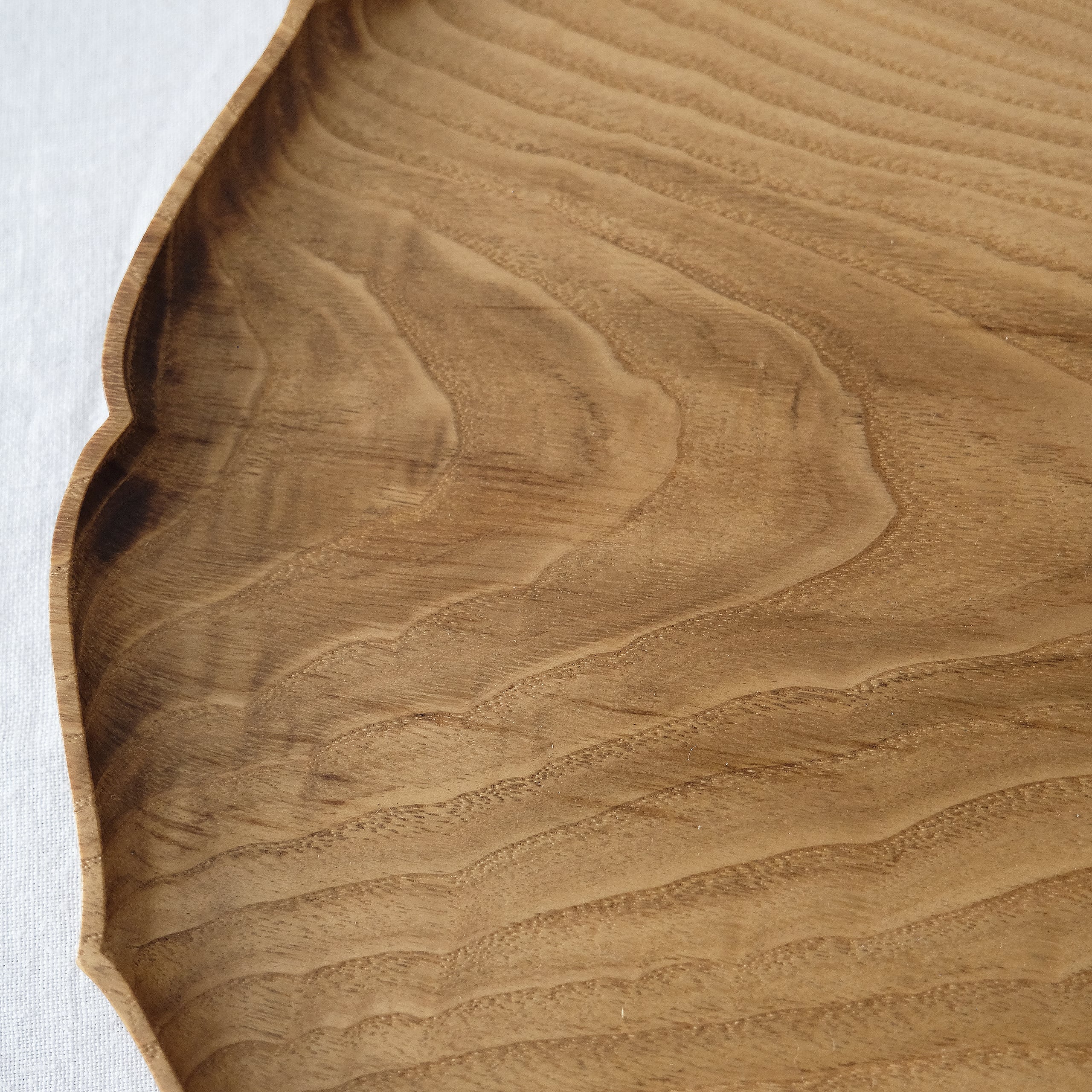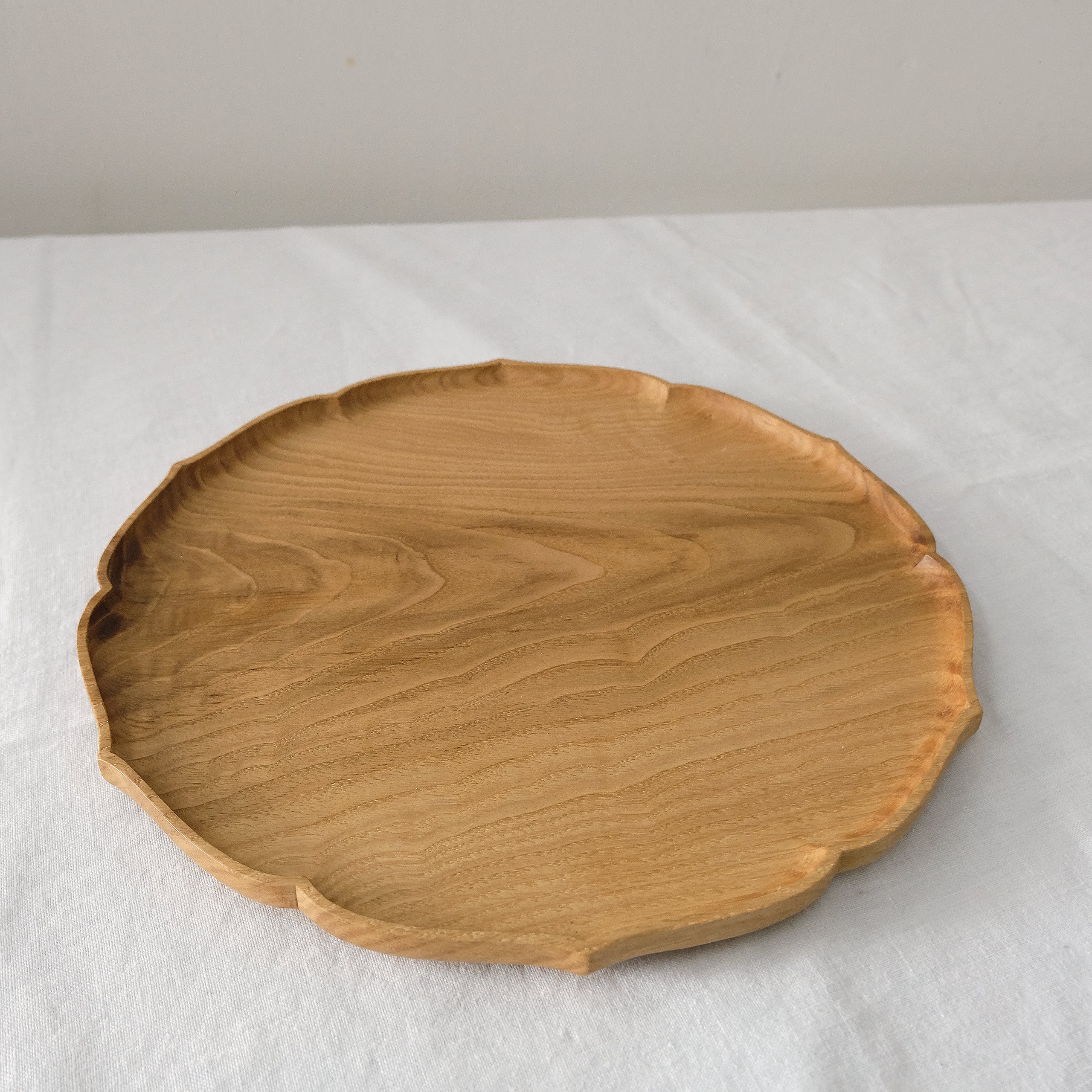 こちらは板目にに縮み杢が多数現れたとても希少な材料を使ったお盆です。