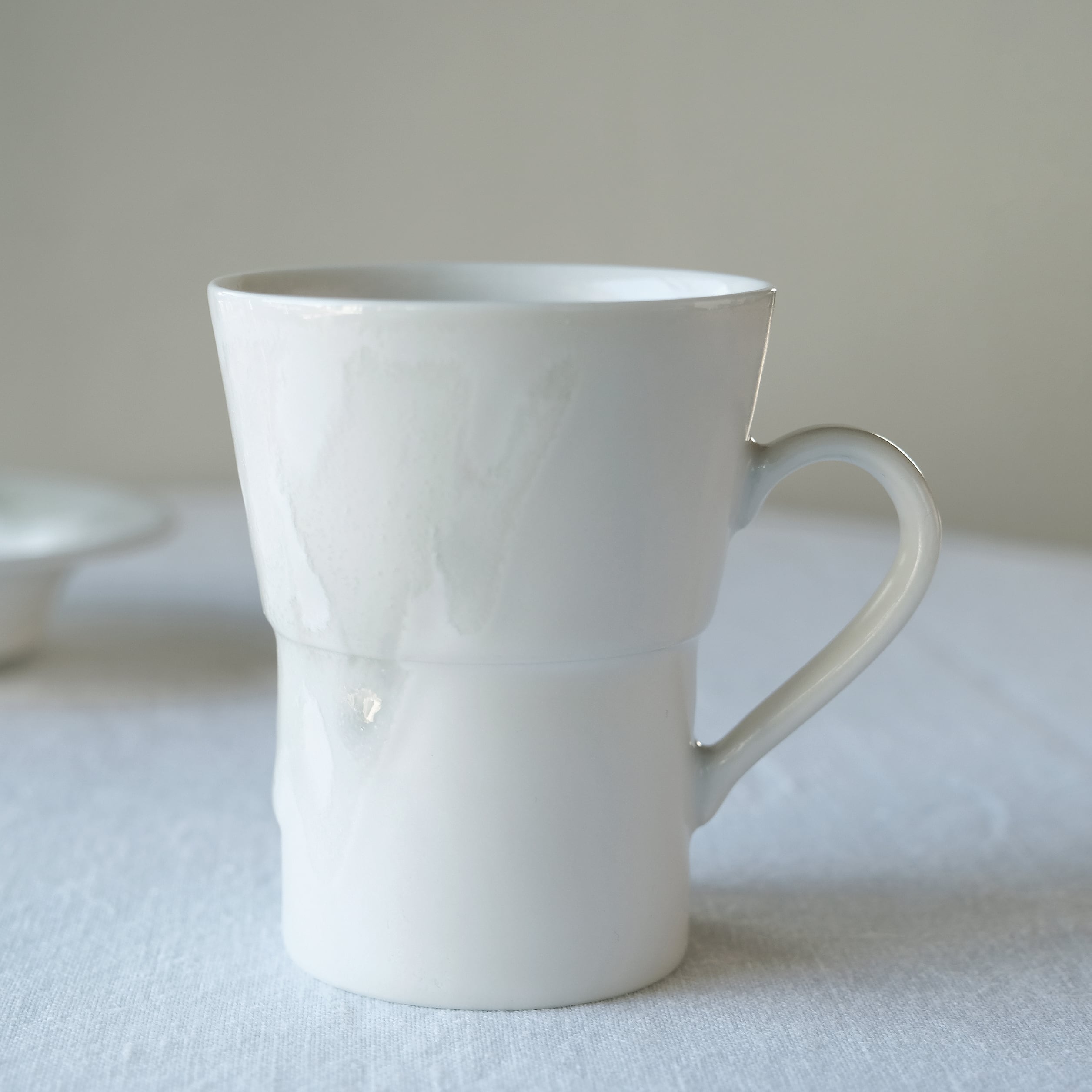 背の高いユニークな意匠のカップと底が深いソーサーの面白いバランスのカップアンドソーサーです。別々にお使いいただけます。