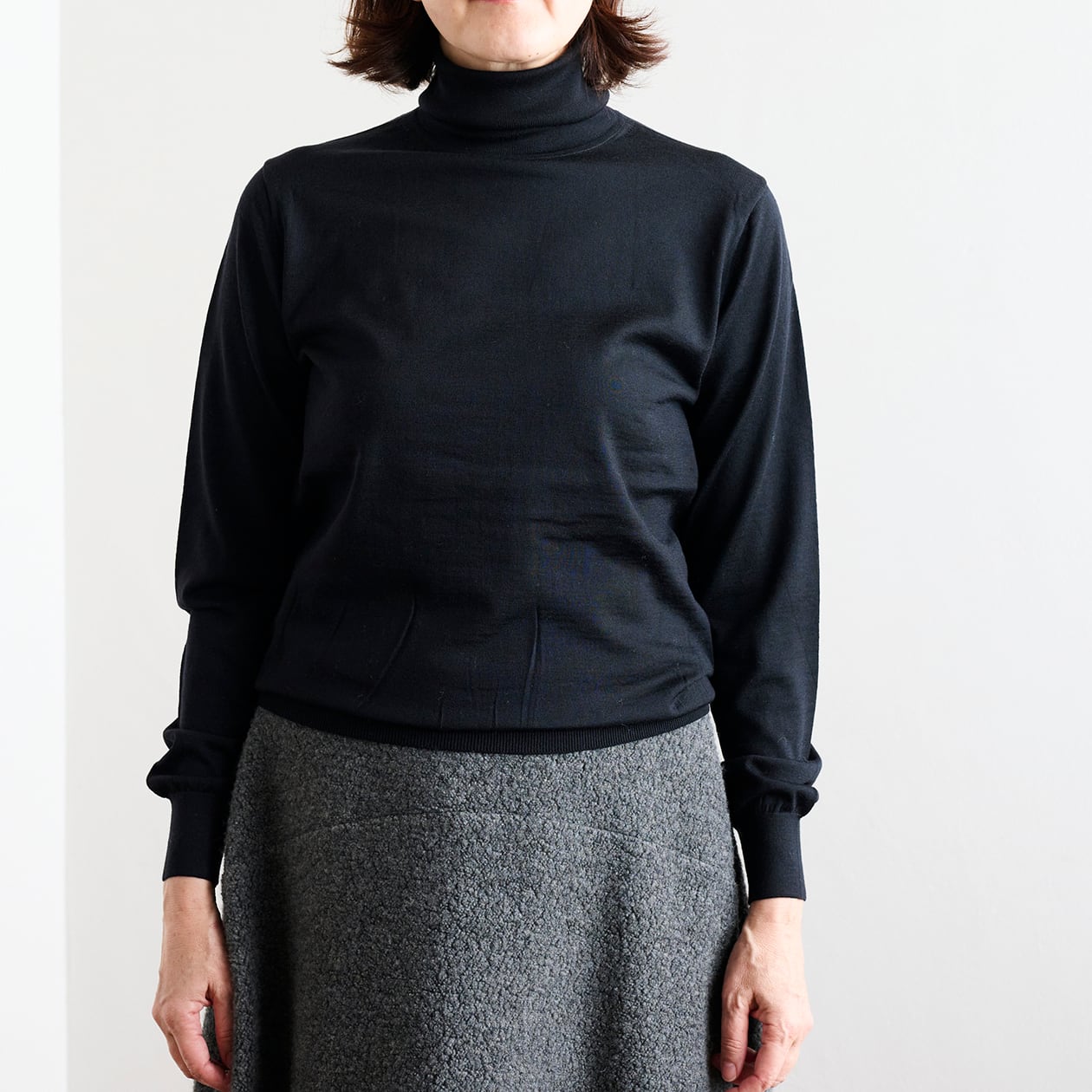 SLOANE スローン 30G天竺 エクストラファインメリノウール スーパーハイゲージ タートルネック SL9W-778-W10 ブラック