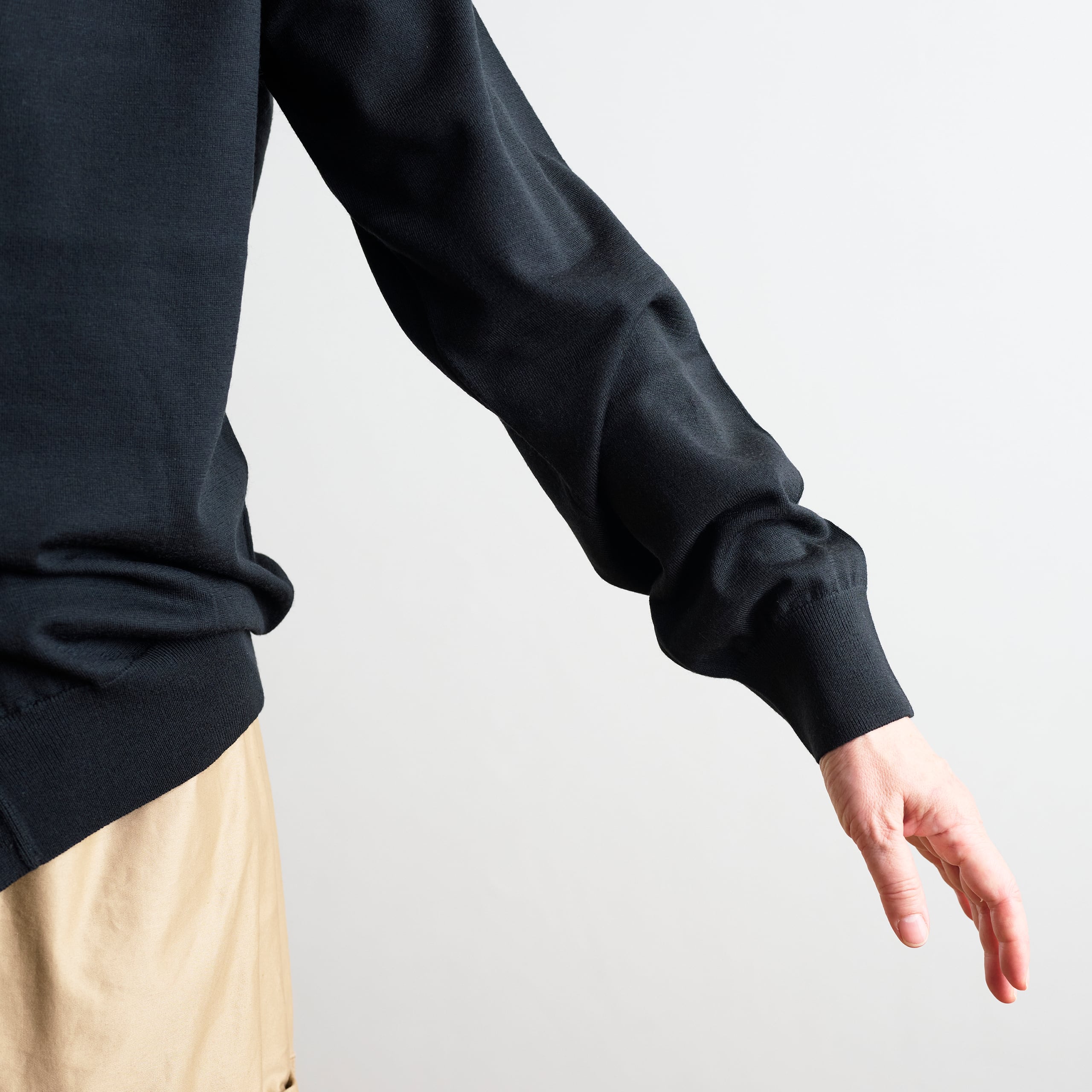厳選された繊維長の長い羊毛を使用した、最高級のエクストラファインメリノウールを用い、30ゲージ 天竺をフルファッション*で丁寧に編み立てたVネックカーディガン。スーパーハイゲージ(30ゲージ)がもたらす独特なハリとサラリとした素材感。上品な光沢が魅力の定番モデル。