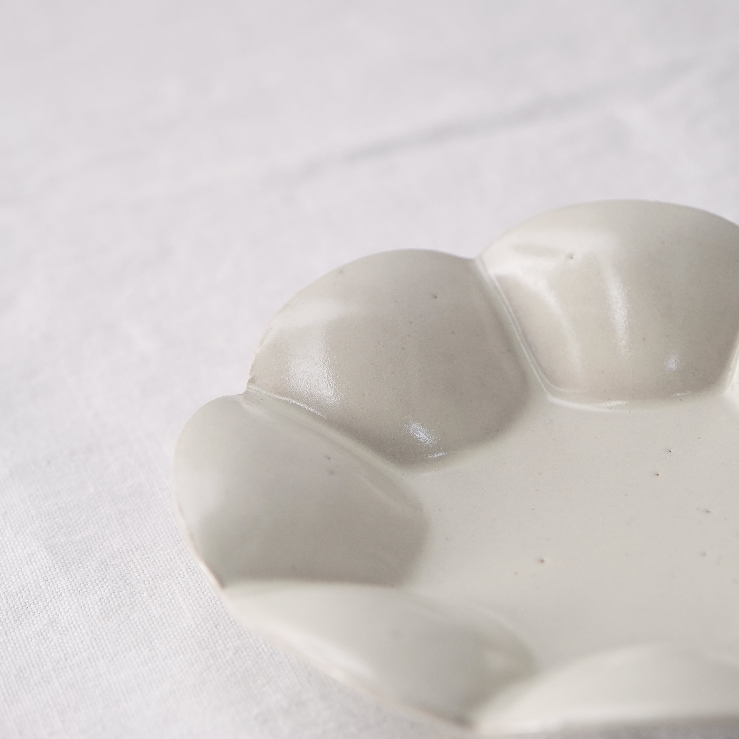 とても立体的な造形が印象的な輪花皿です。花弁部分がふっくらしていて陰影が美しい仕上がりとなっています。