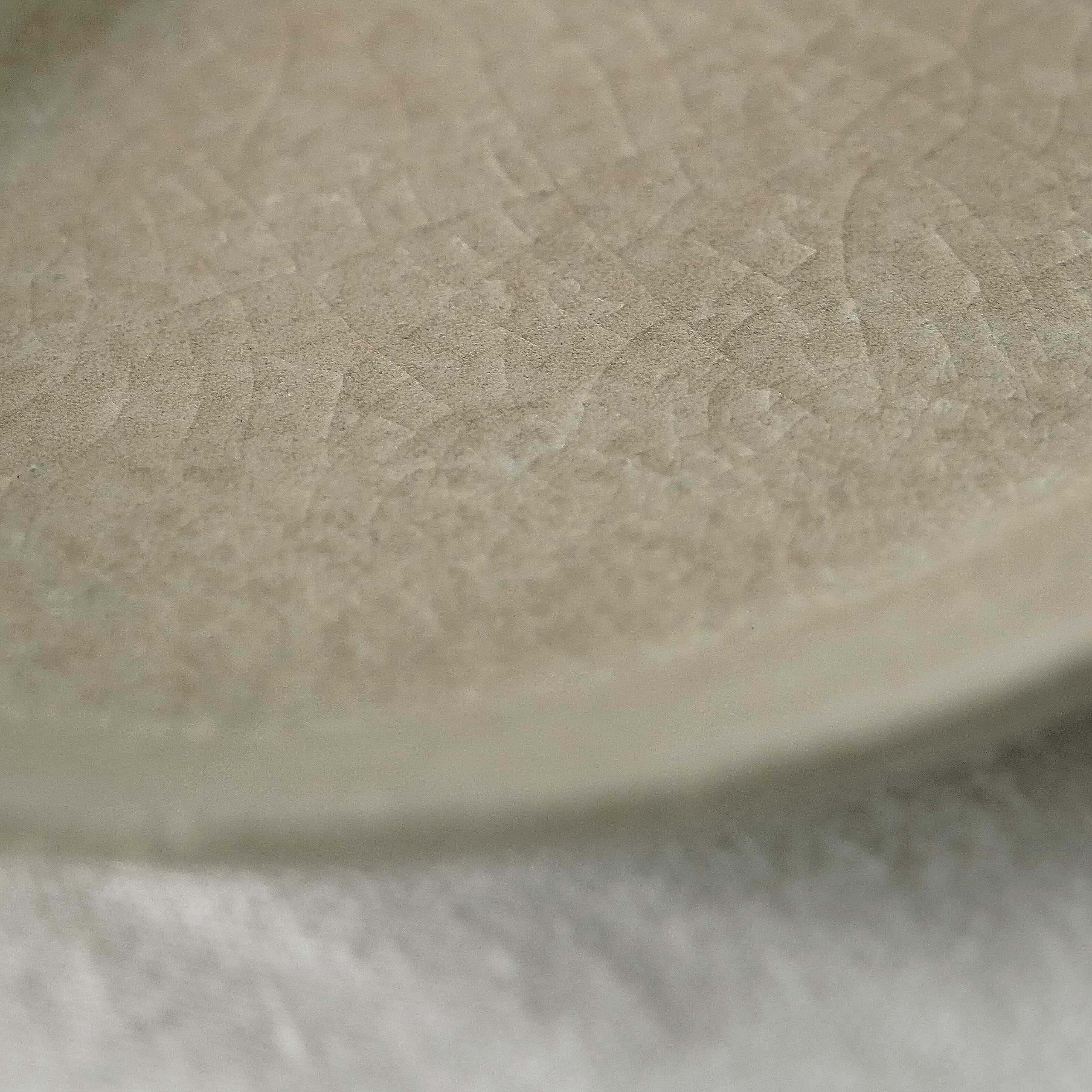 西洋アンティークのような意匠を造形するのに日本器に使われる土を使用した味わい深い器です。貫入が育つのも楽しみなこちらは和洋折衷にお使いいただけます。