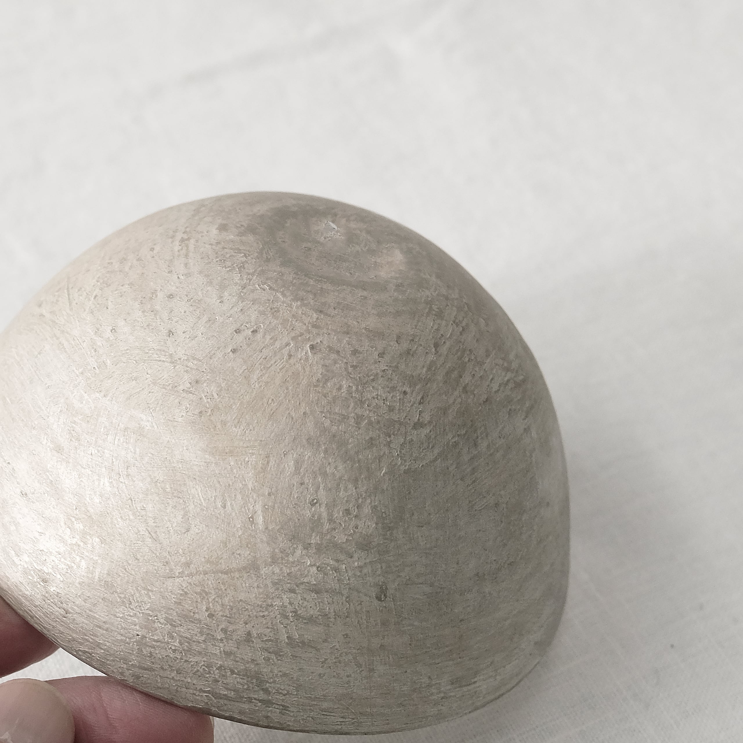 コロリとしたユニークなフォルムのボウルはは経年変化を感じさせる銀彩で仕上げられています。