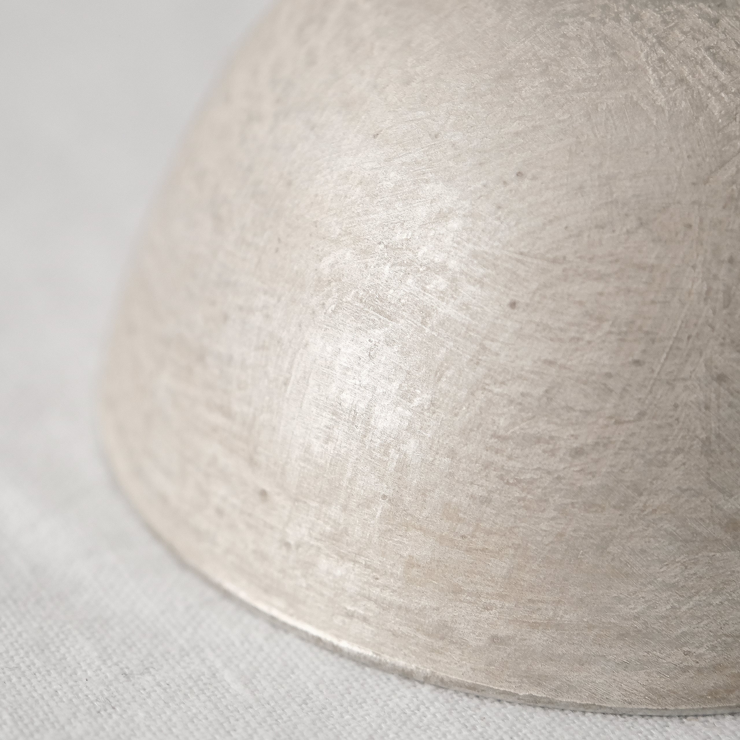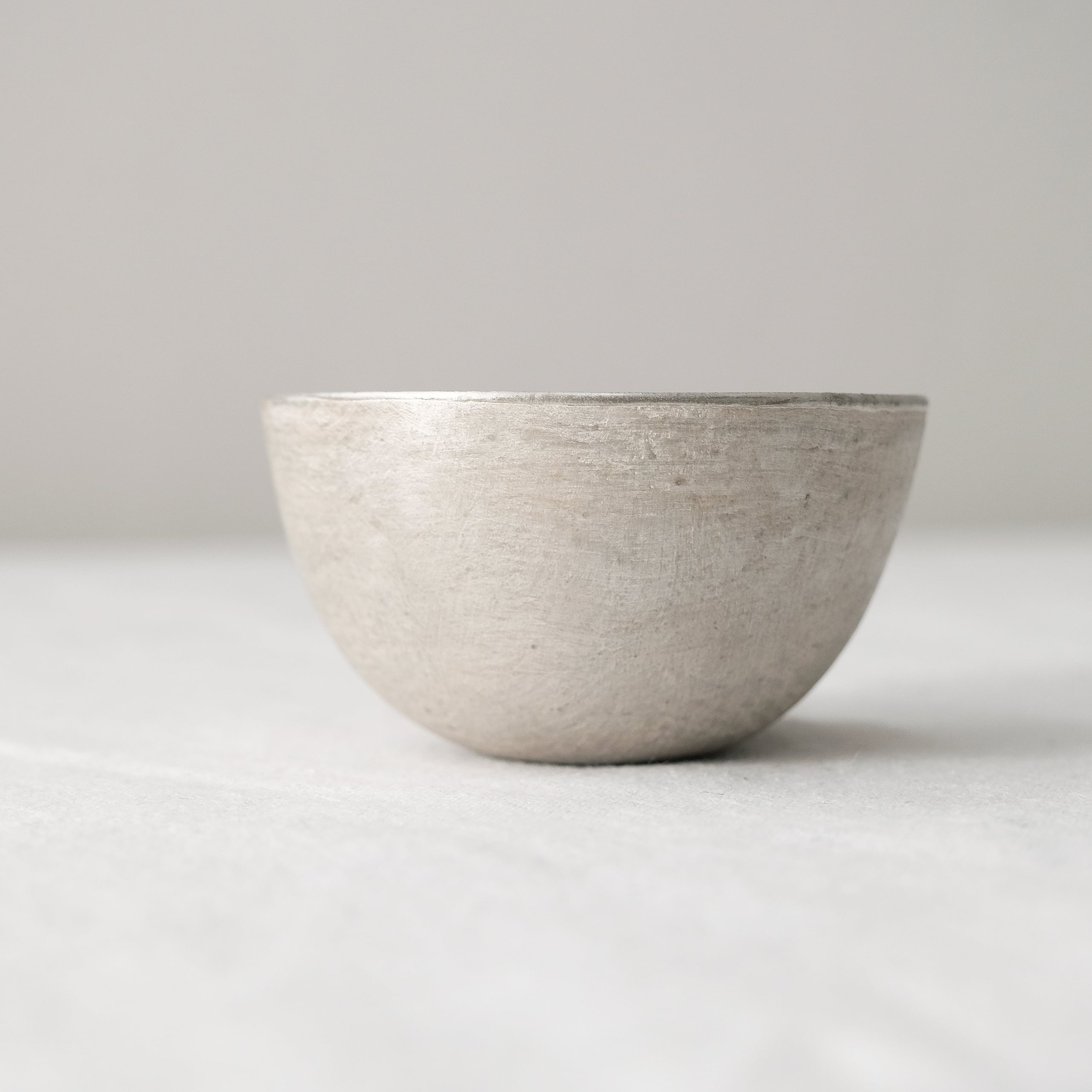 コロリとしたユニークなフォルムのボウルはは経年変化を感じさせる銀彩で仕上げられています。