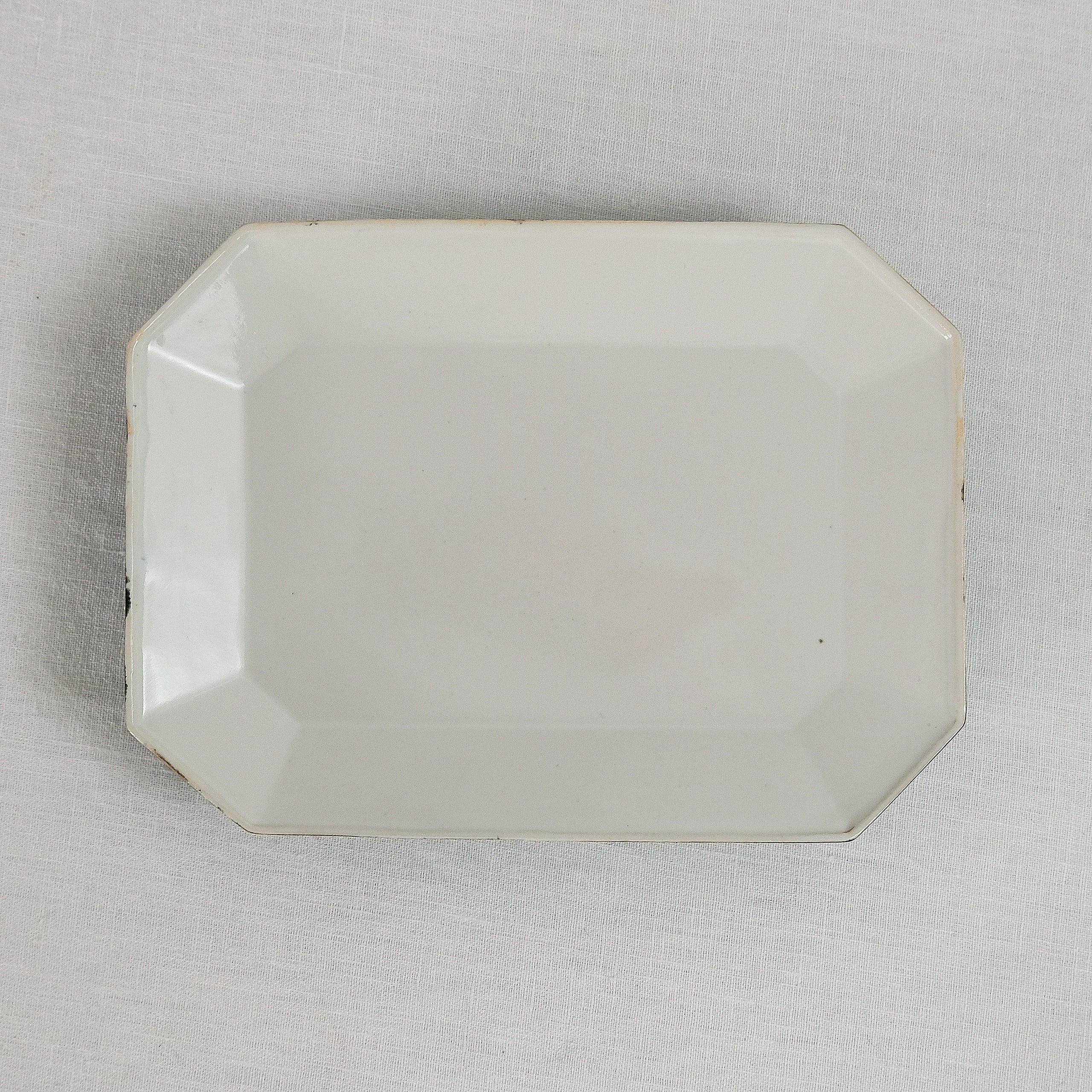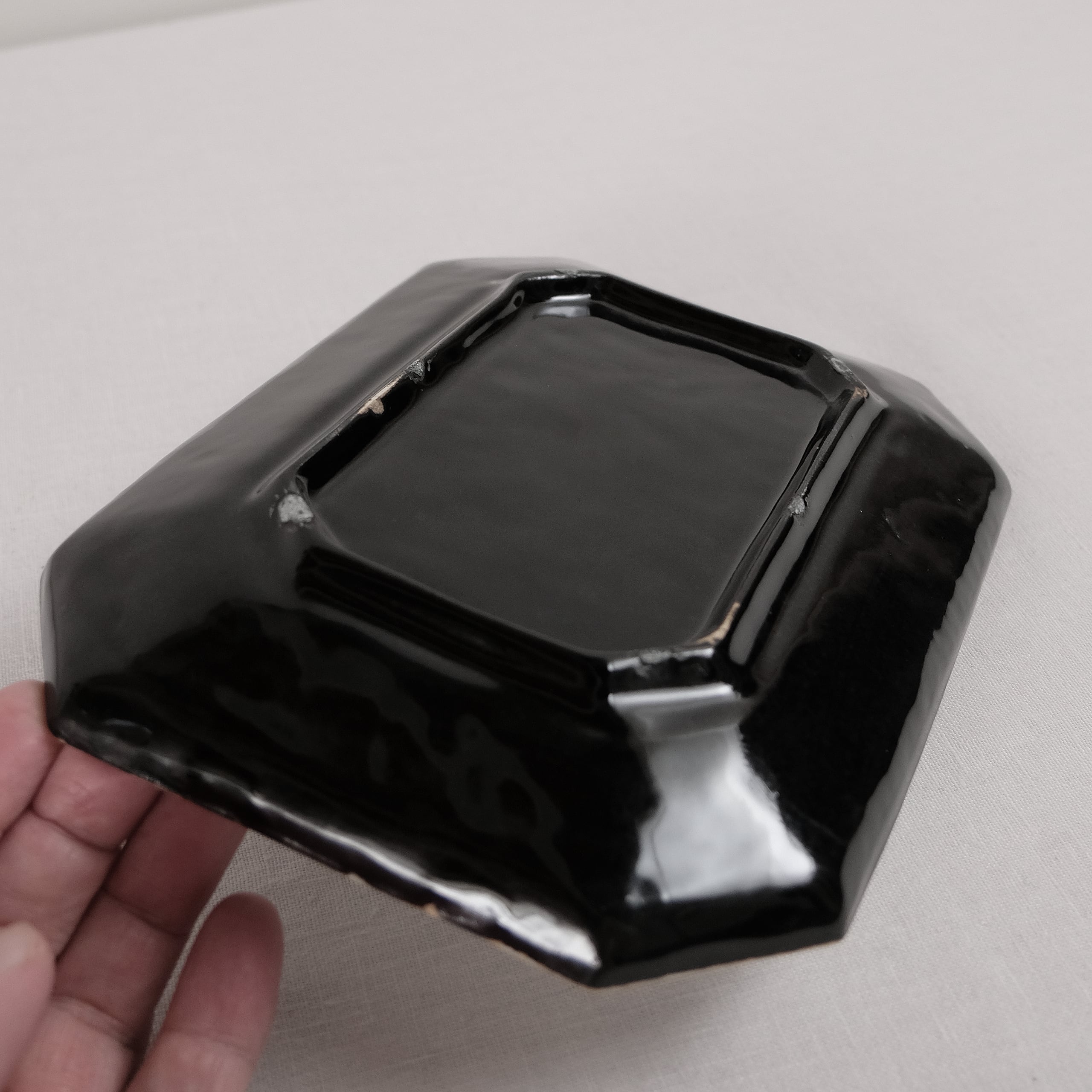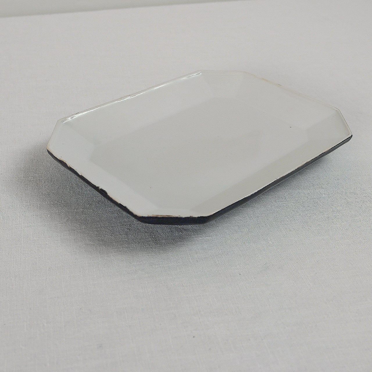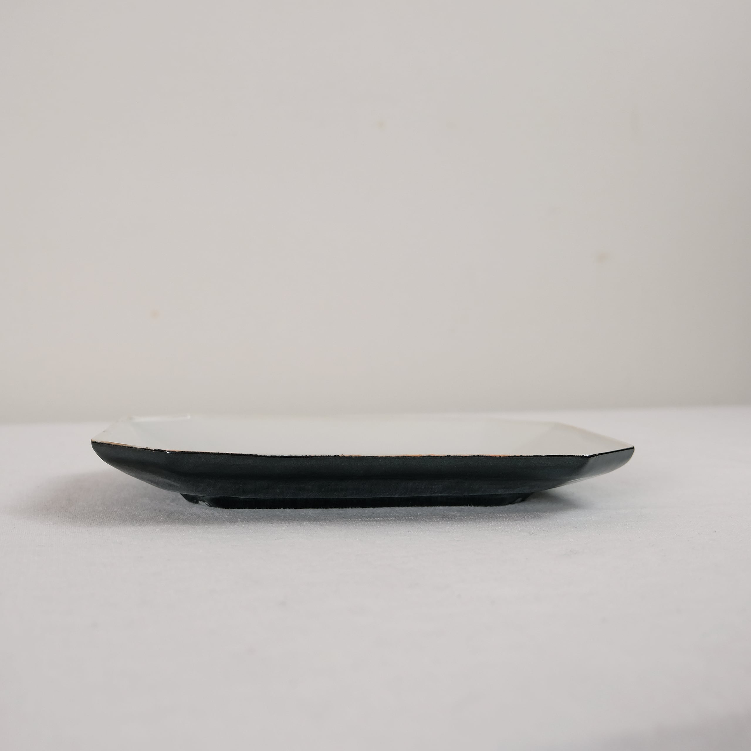 とても使いやすい隅切りの意匠のお皿。掛け分けの黒と白の色合いがとっても似合います。
