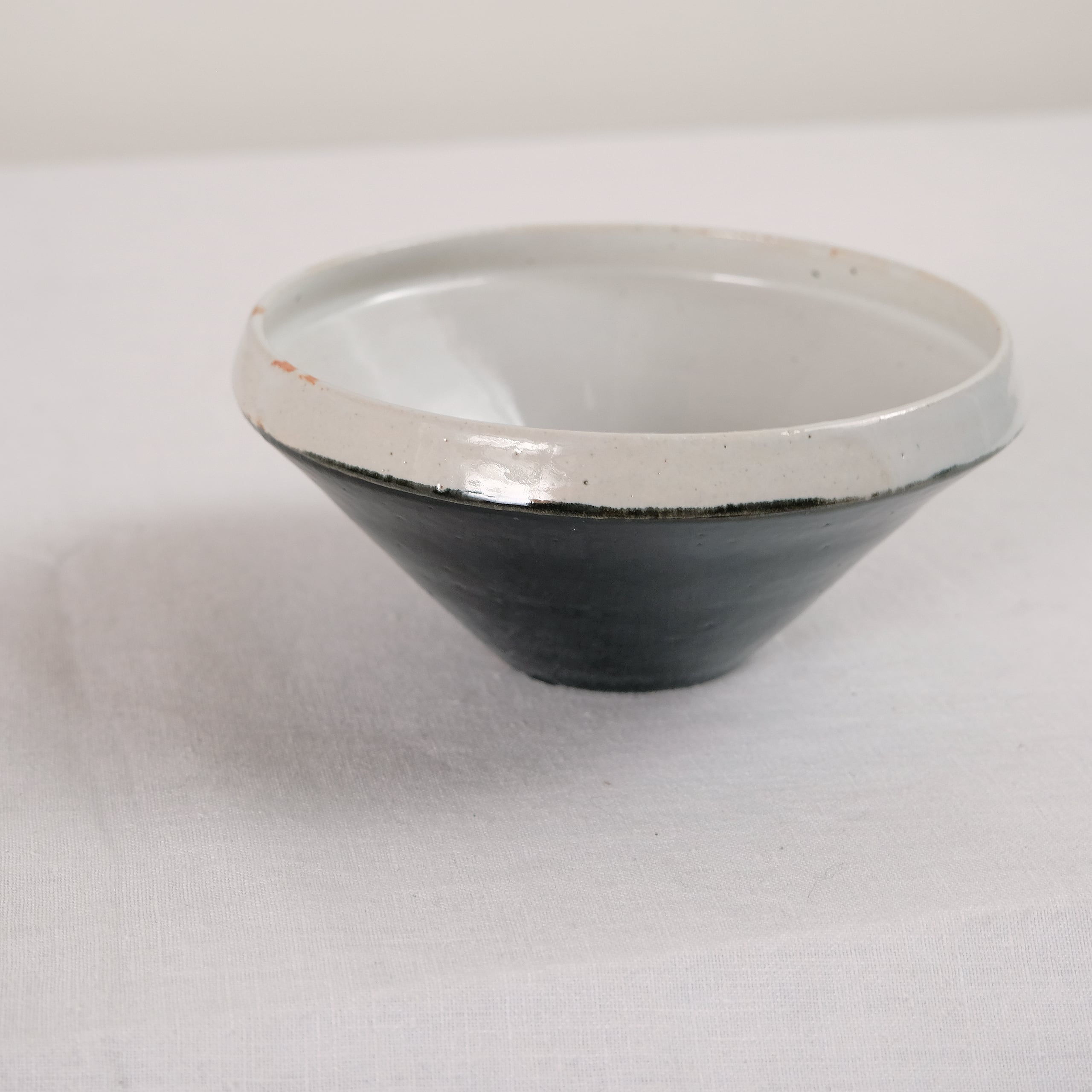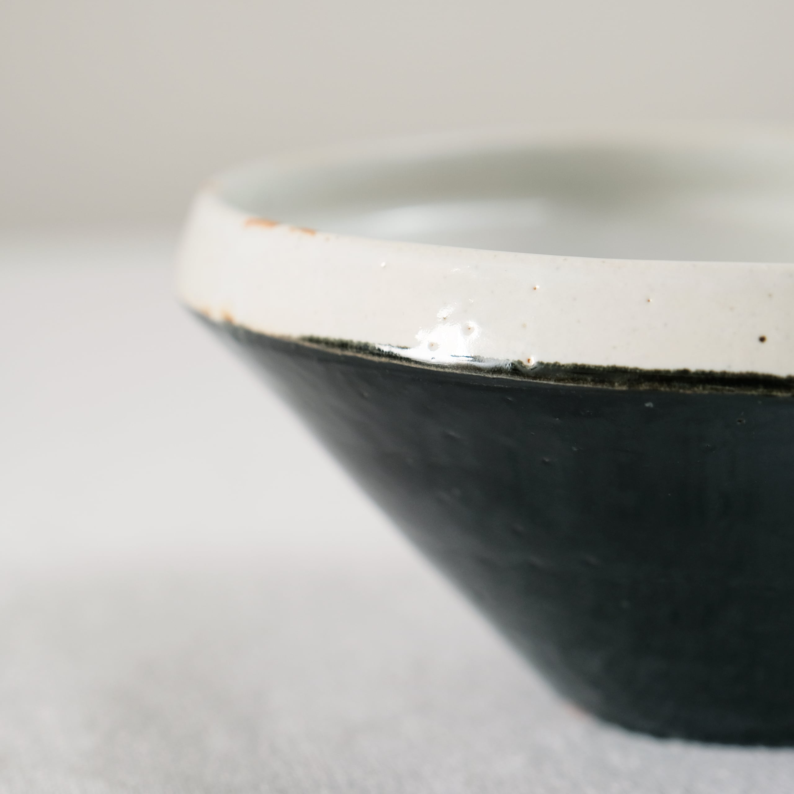 スッと立ち上がった円錐の鉢。口部分が掛け分けてあるので印象的な意匠となっています。