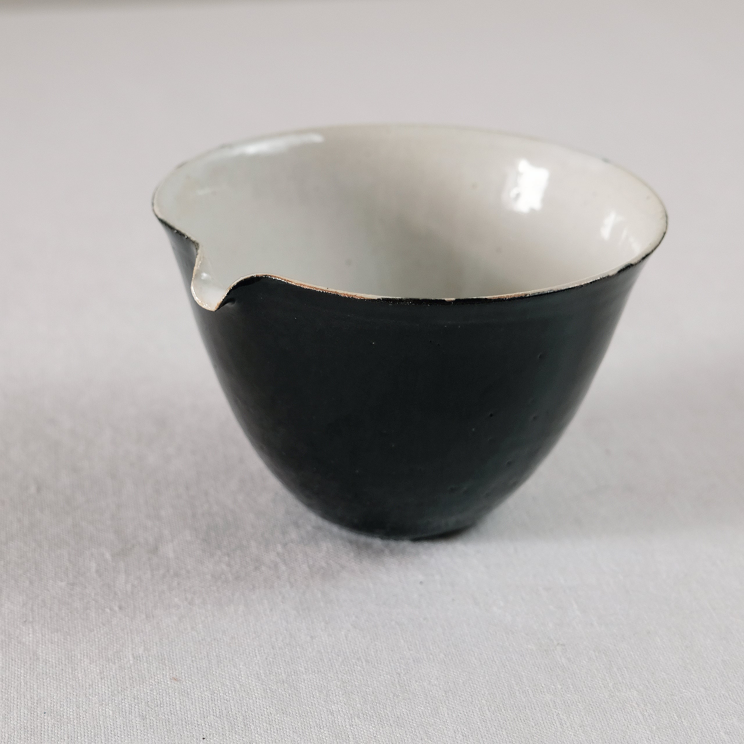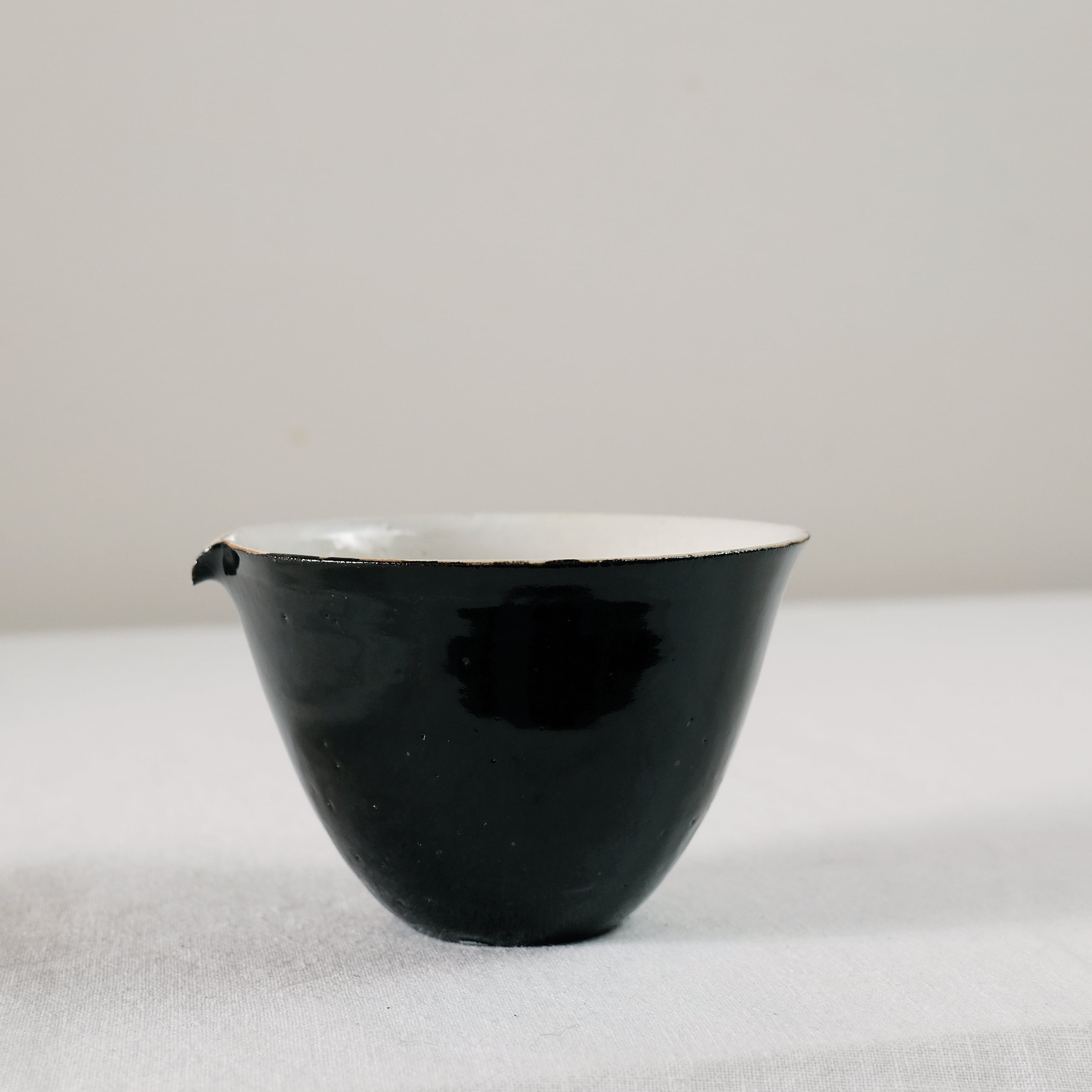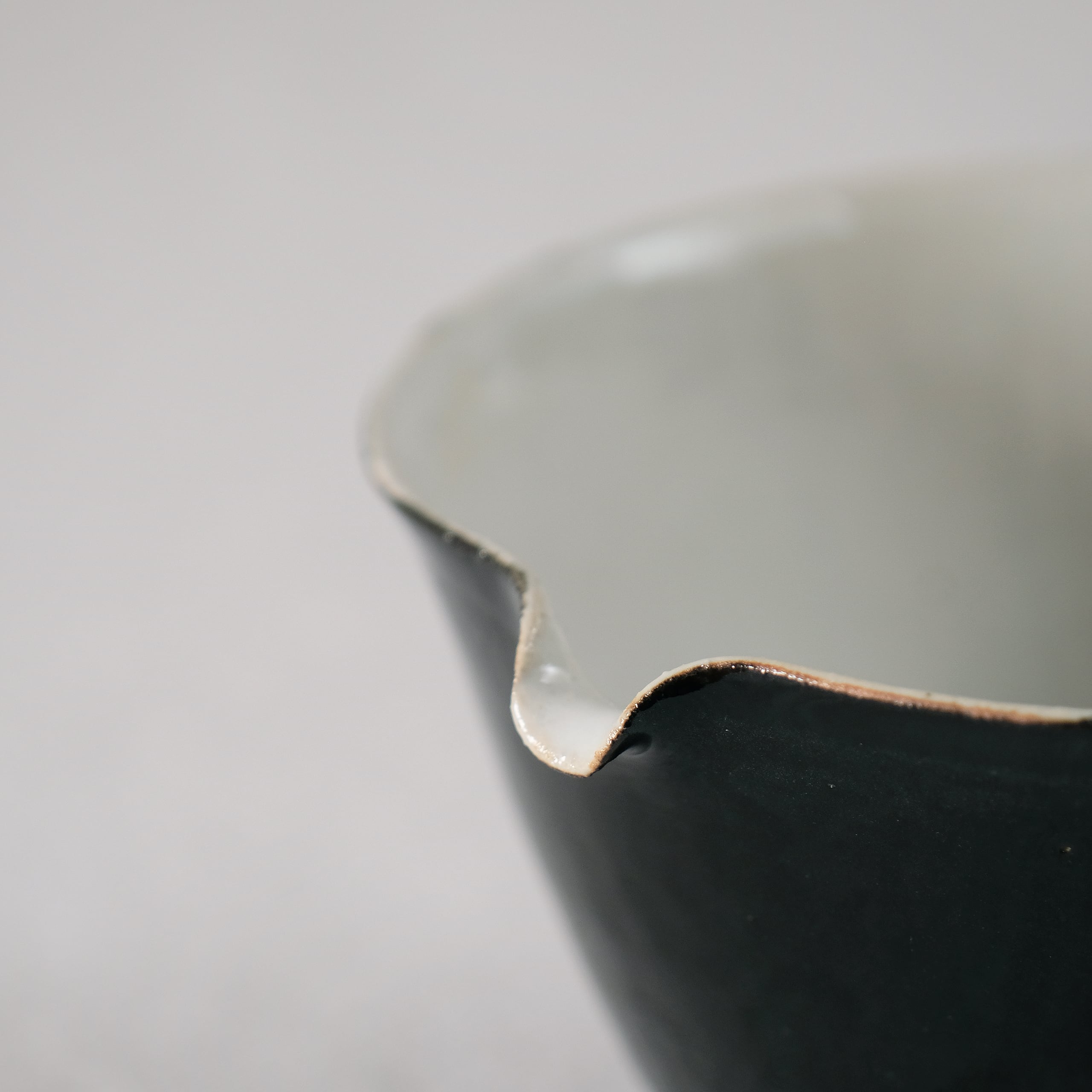 白磁をメインに活動されてきた三浦さんが、最近とても力をいれてらっしゃる黒。特に漆黒で光沢のある表情を目指すために多くの金属をを混ぜて表現しています。コバルトも含まれているので光や見る角度で青味を感じることもある複雑な表情の器です。
