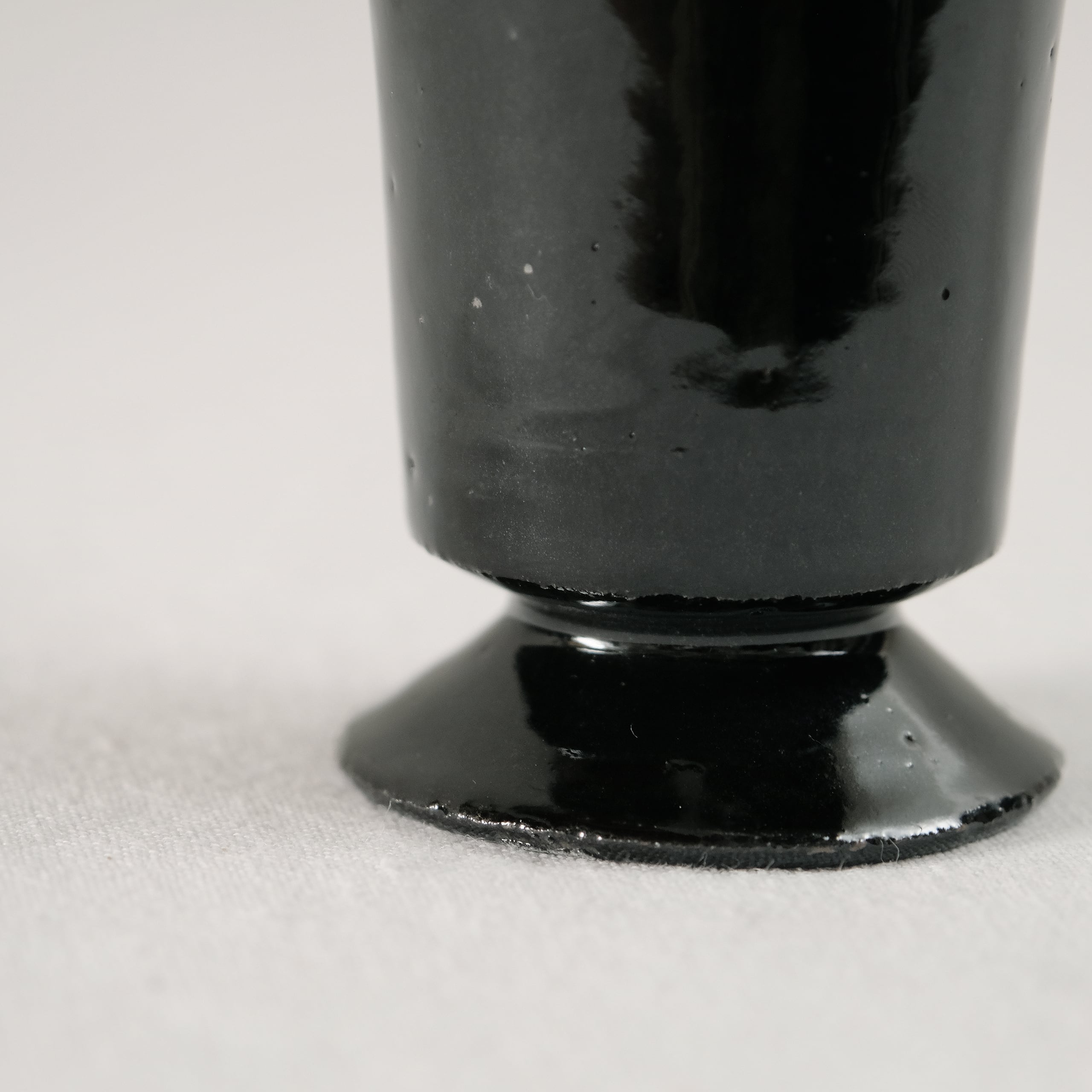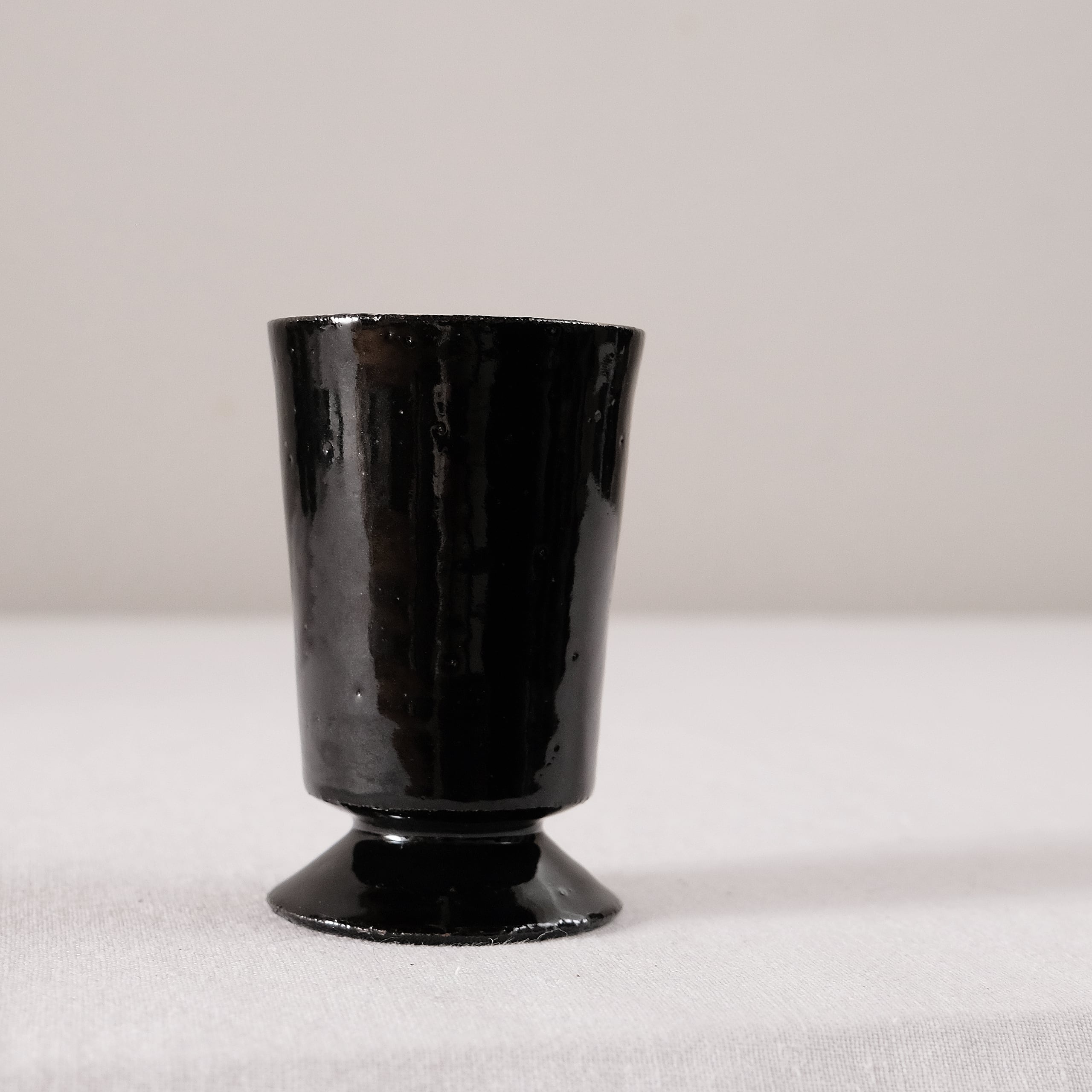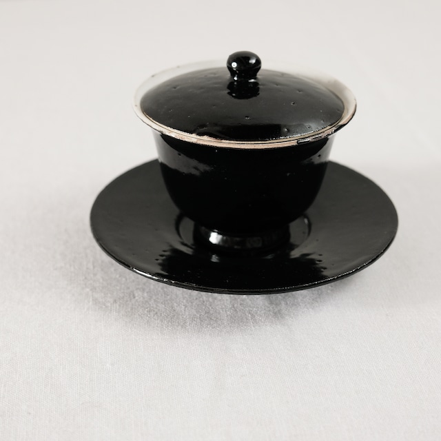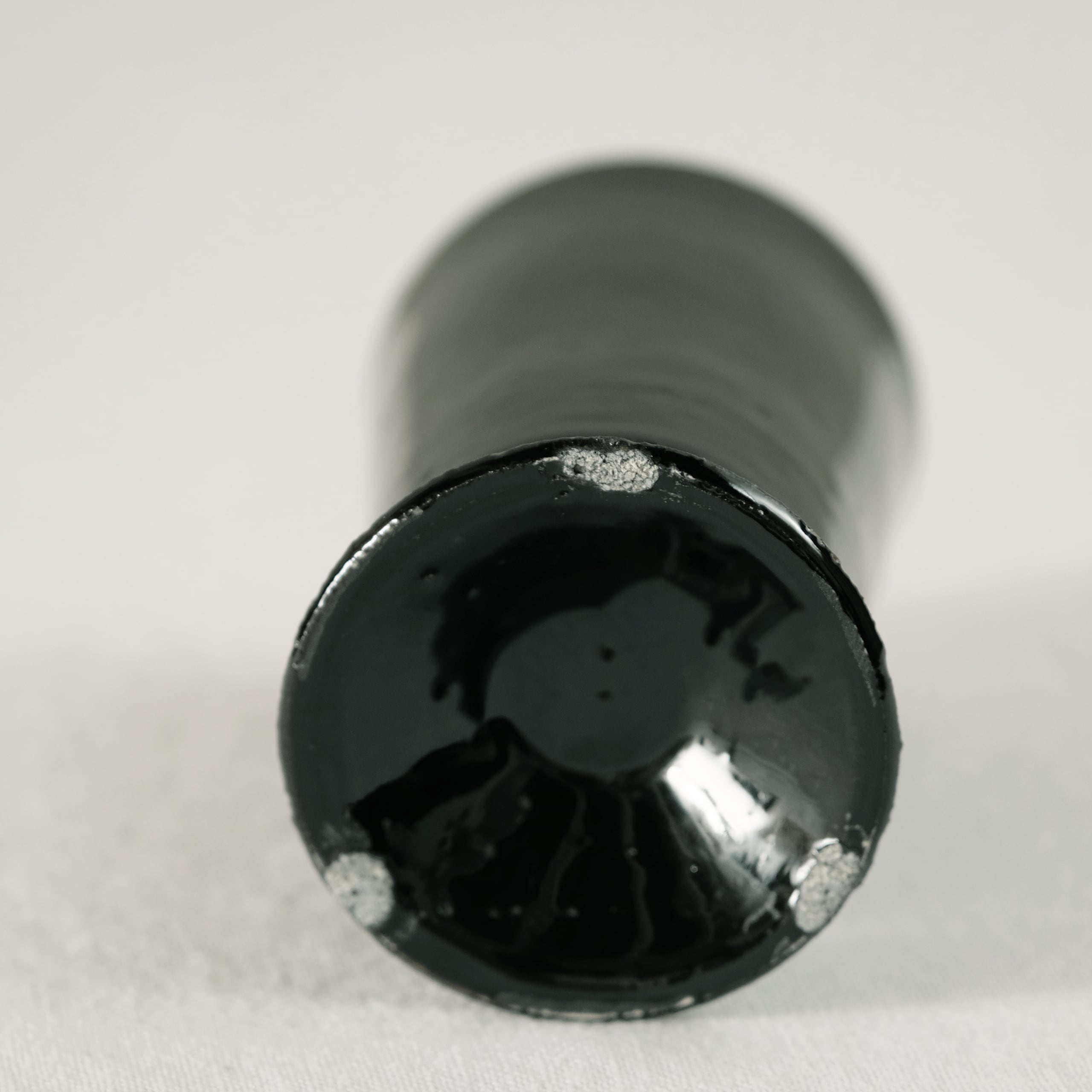 白磁をメインに活動されてきた三浦さんが、最近とても力をいれてらっしゃる黒。特に漆黒で光沢のある表情を目指すために多くの金属をを混ぜて表現しています。コバルトも含まれているので光や見る角度で青味を感じることもある複雑な表情の器です。