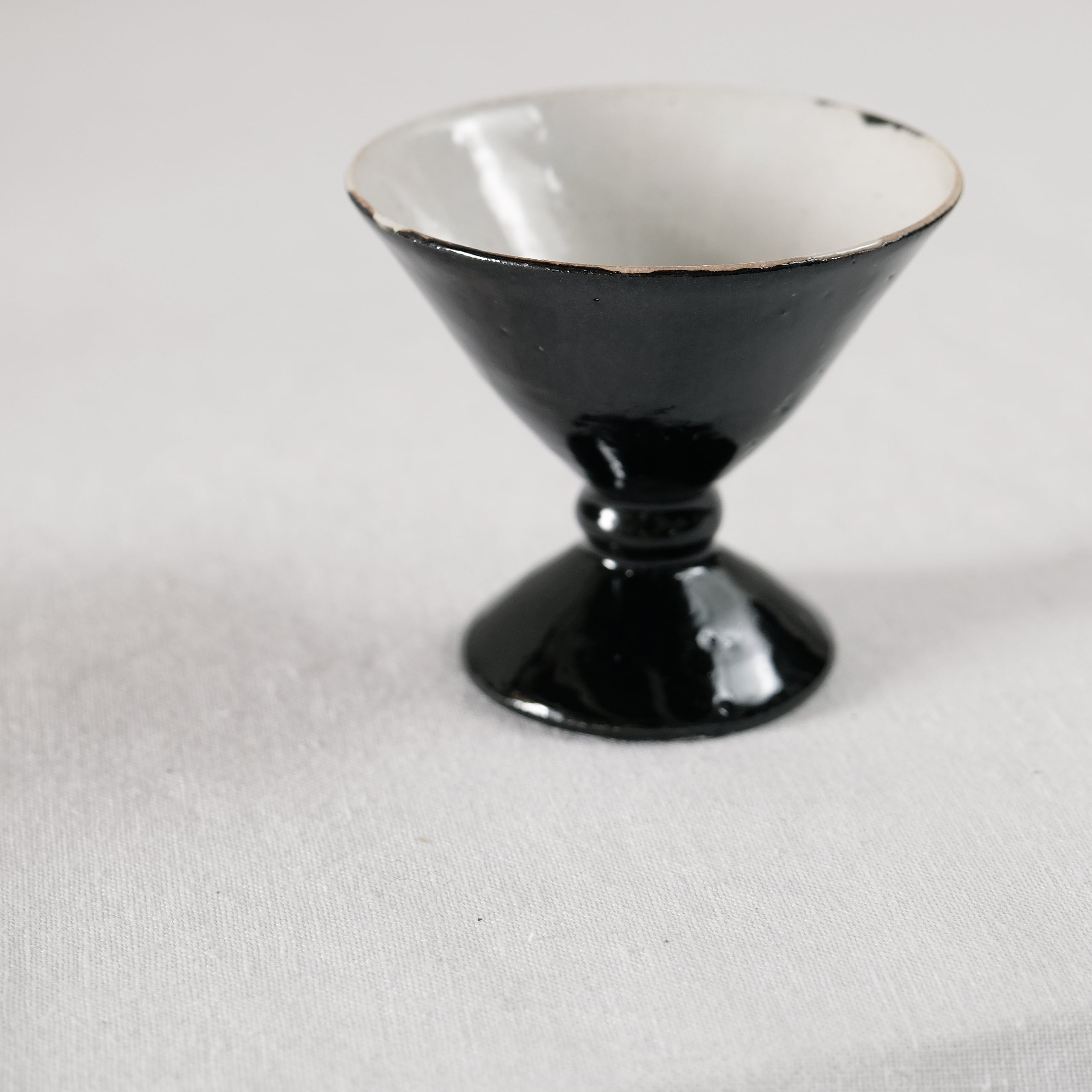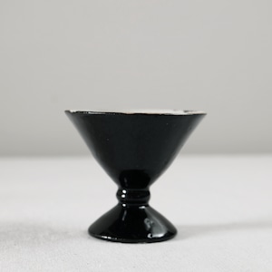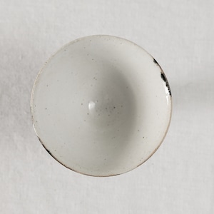 白磁をメインに活動されてきた三浦さんが、最近とても力をいれてらっしゃる黒。特に漆黒で光沢のある表情を目指すために多くの金属をを混ぜて表現しています。コバルトも含まれているので光や見る角度で青味を感じることもある複雑な表情の器です。