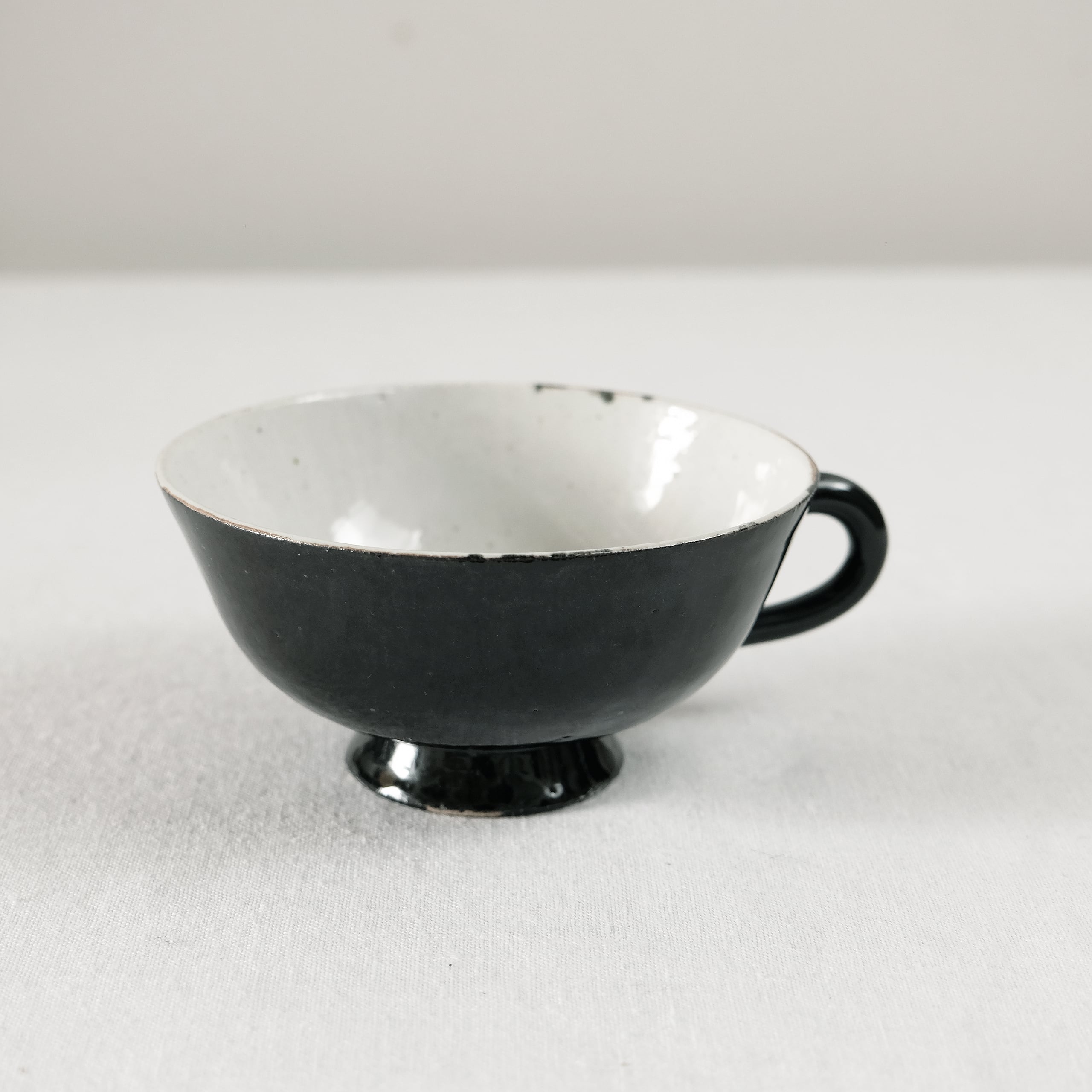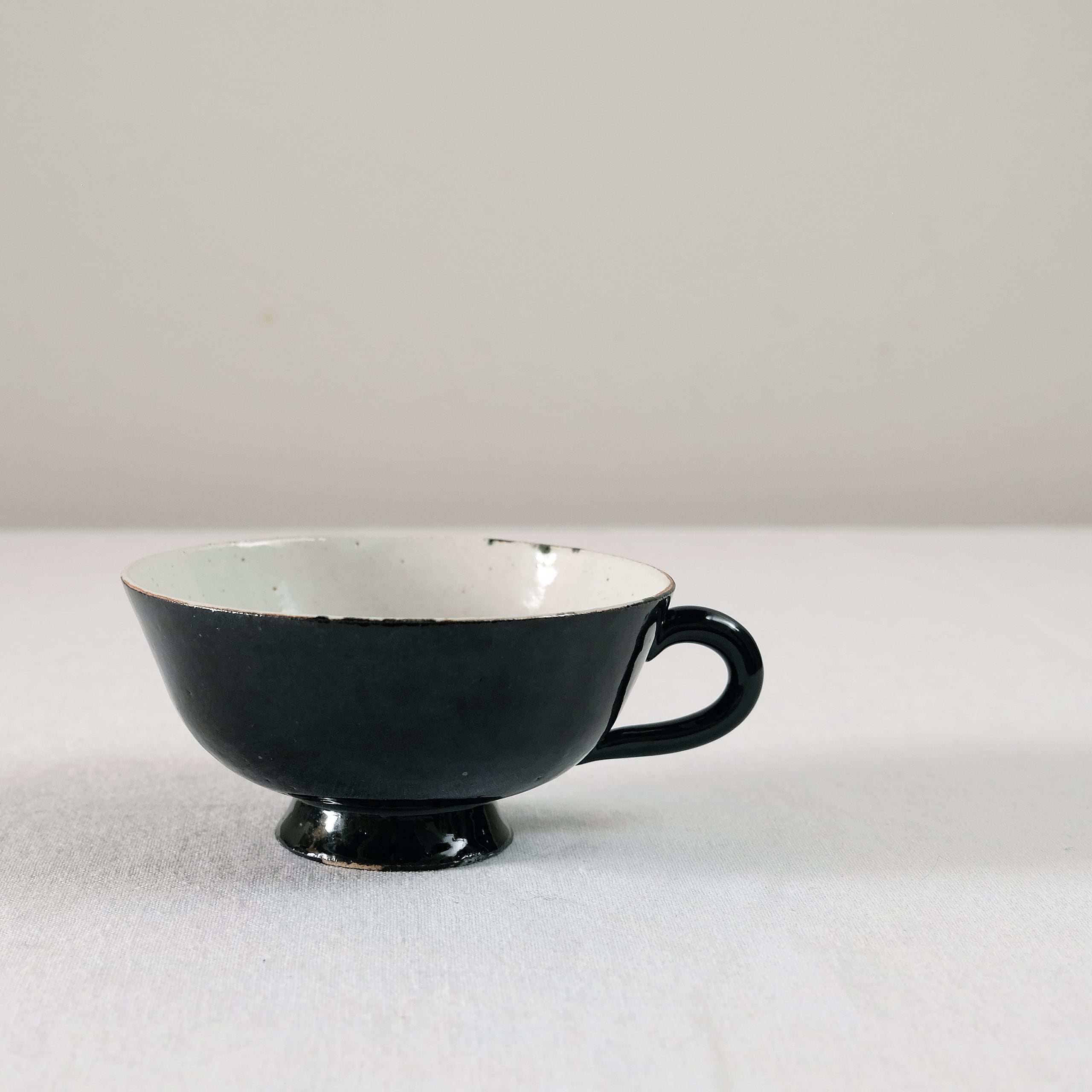 白磁をメインに活動されてきた三浦さんが、最近とても力をいれてらっしゃる黒。特に漆黒で光沢のある表情を目指すために多くの金属をを混ぜて表現しています。コバルトも含まれているので光や見る角度で青味を感じることもある複雑な表情の器です。