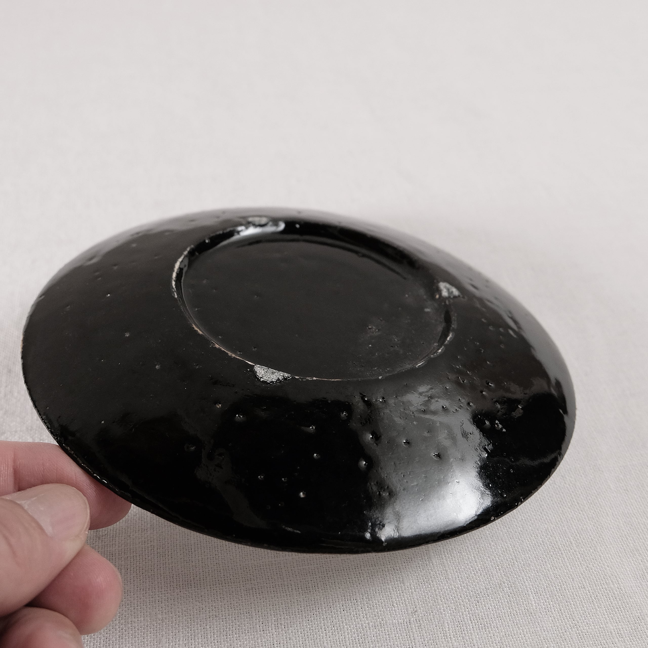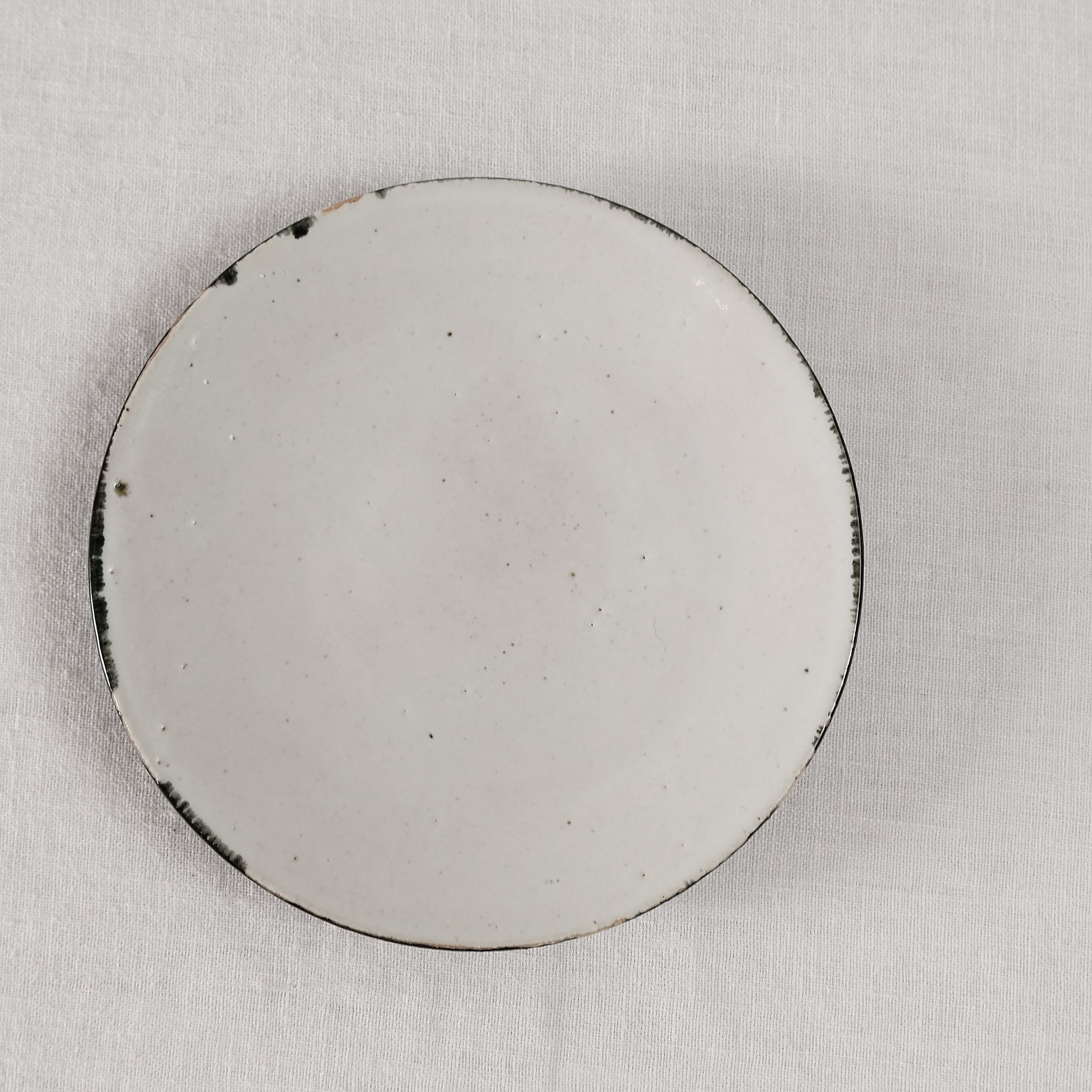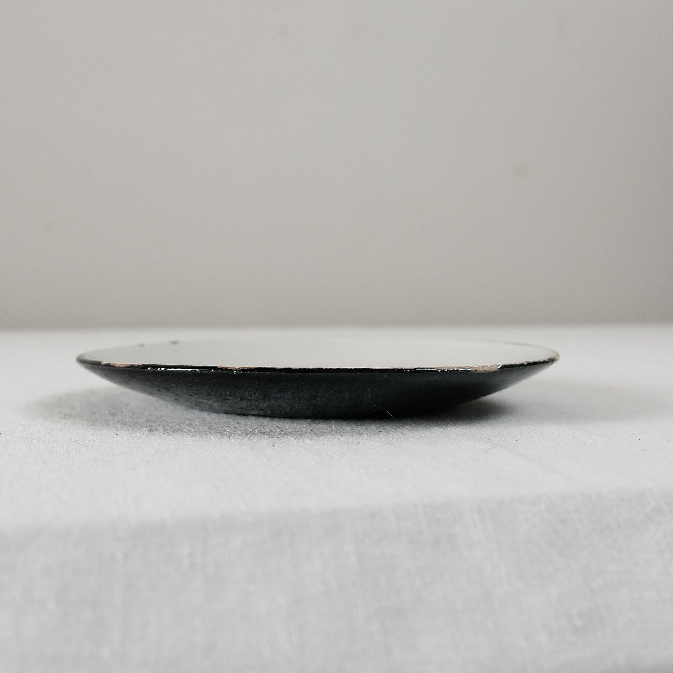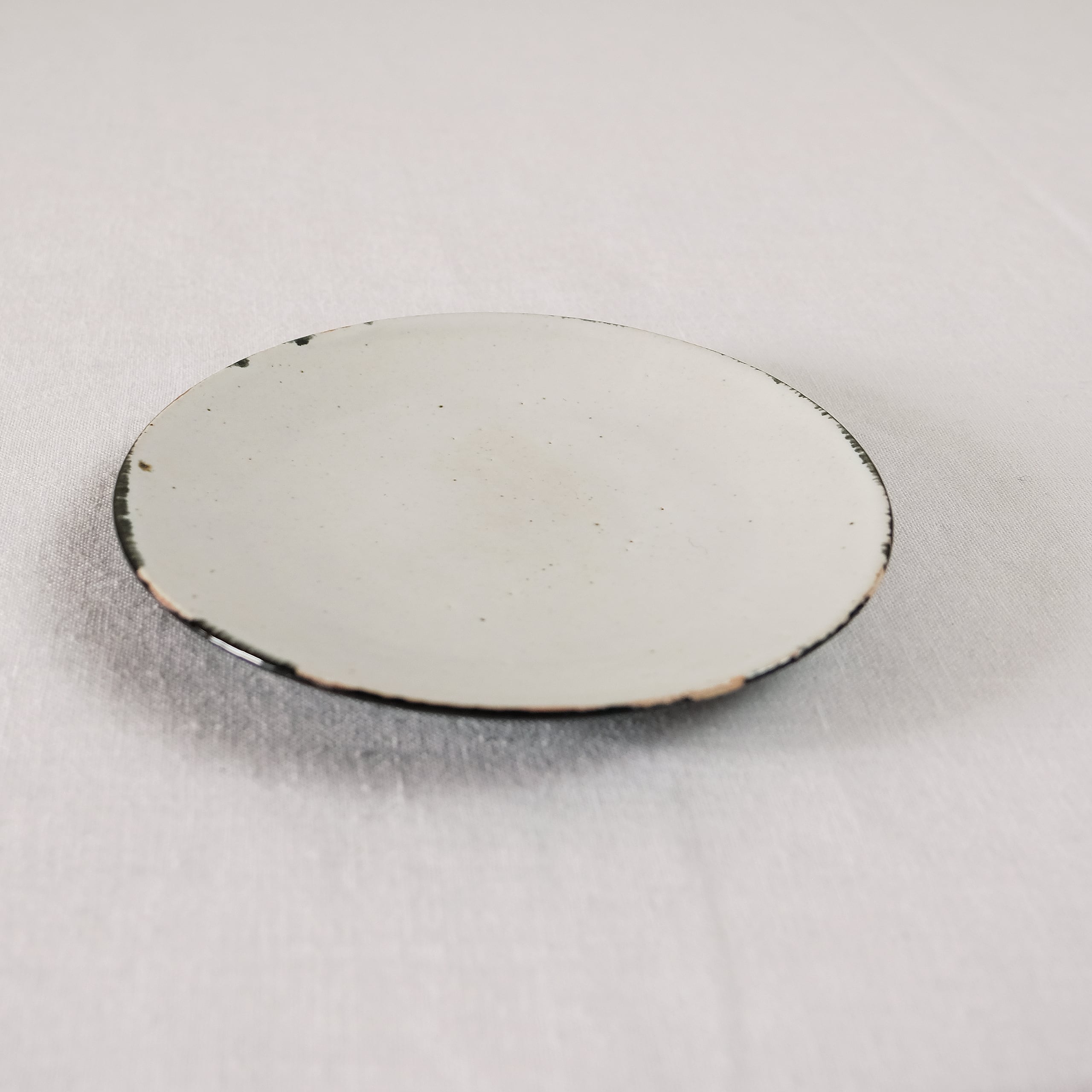 とても使いやすい丸い小皿。口縁に敢えてあしらわれた黒が味わいある仕上がりに。
