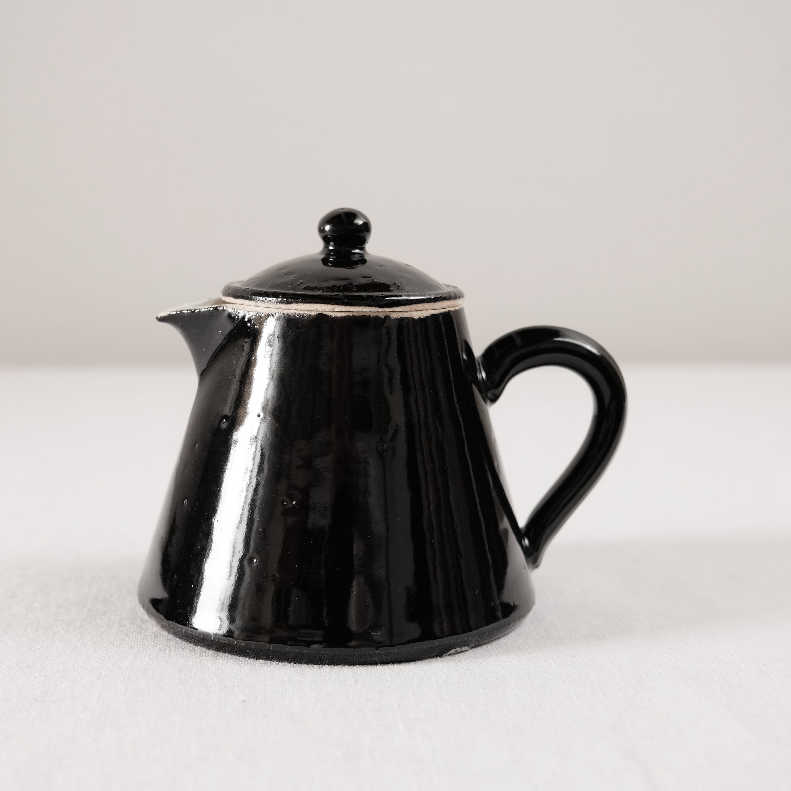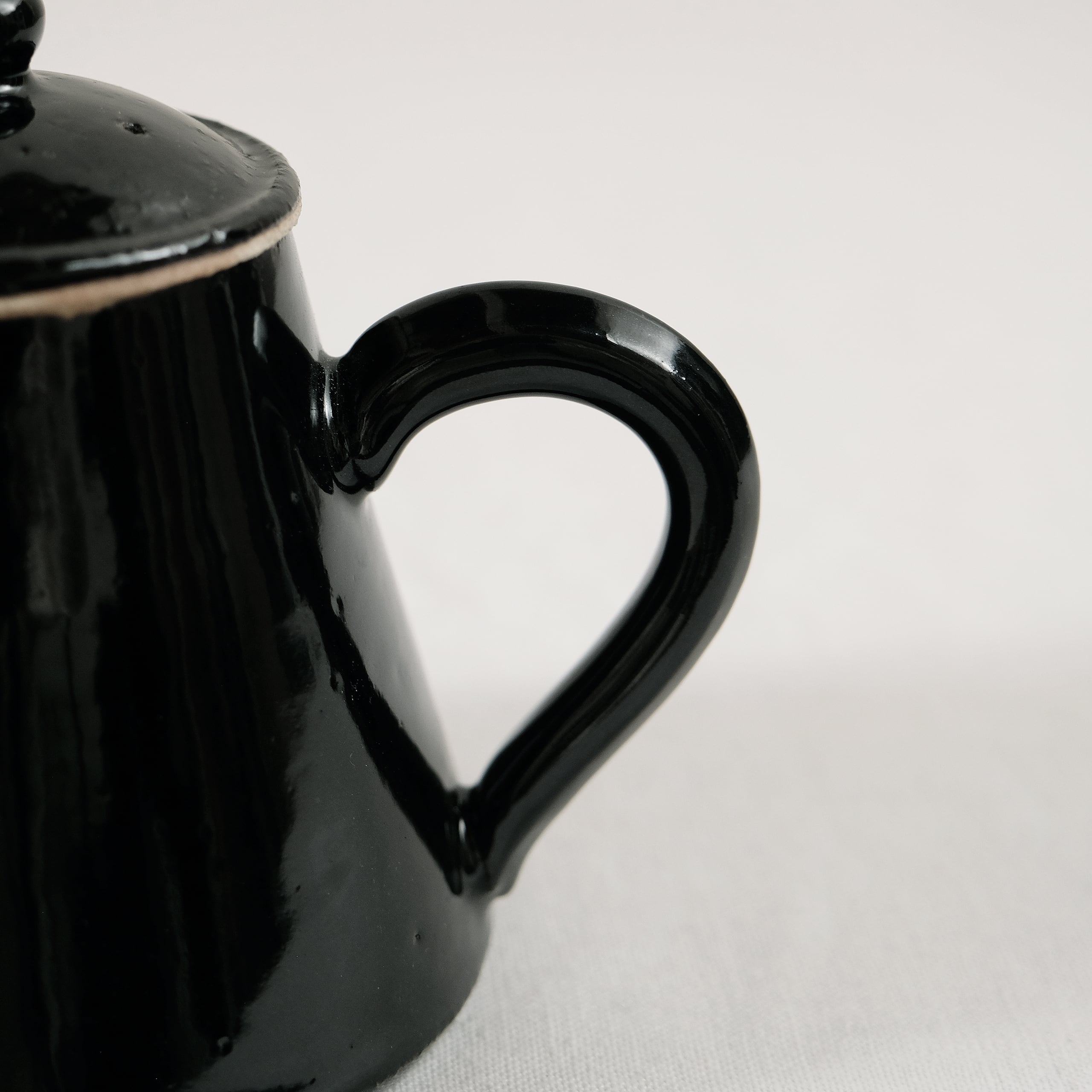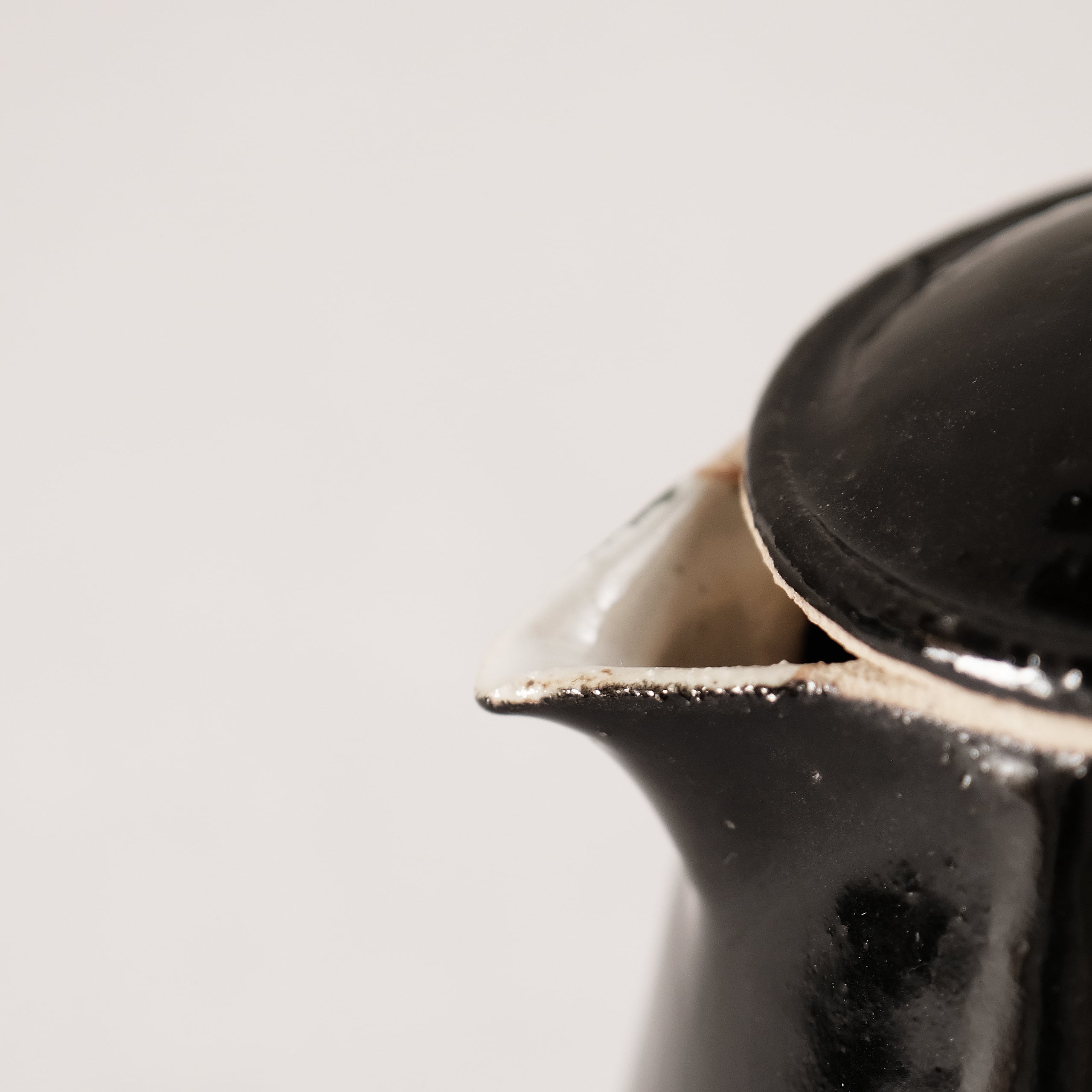 黒がとても似合うポットです。三角を基調にした意匠と丸みのあるディティールがとても具合よくマッチしています。
