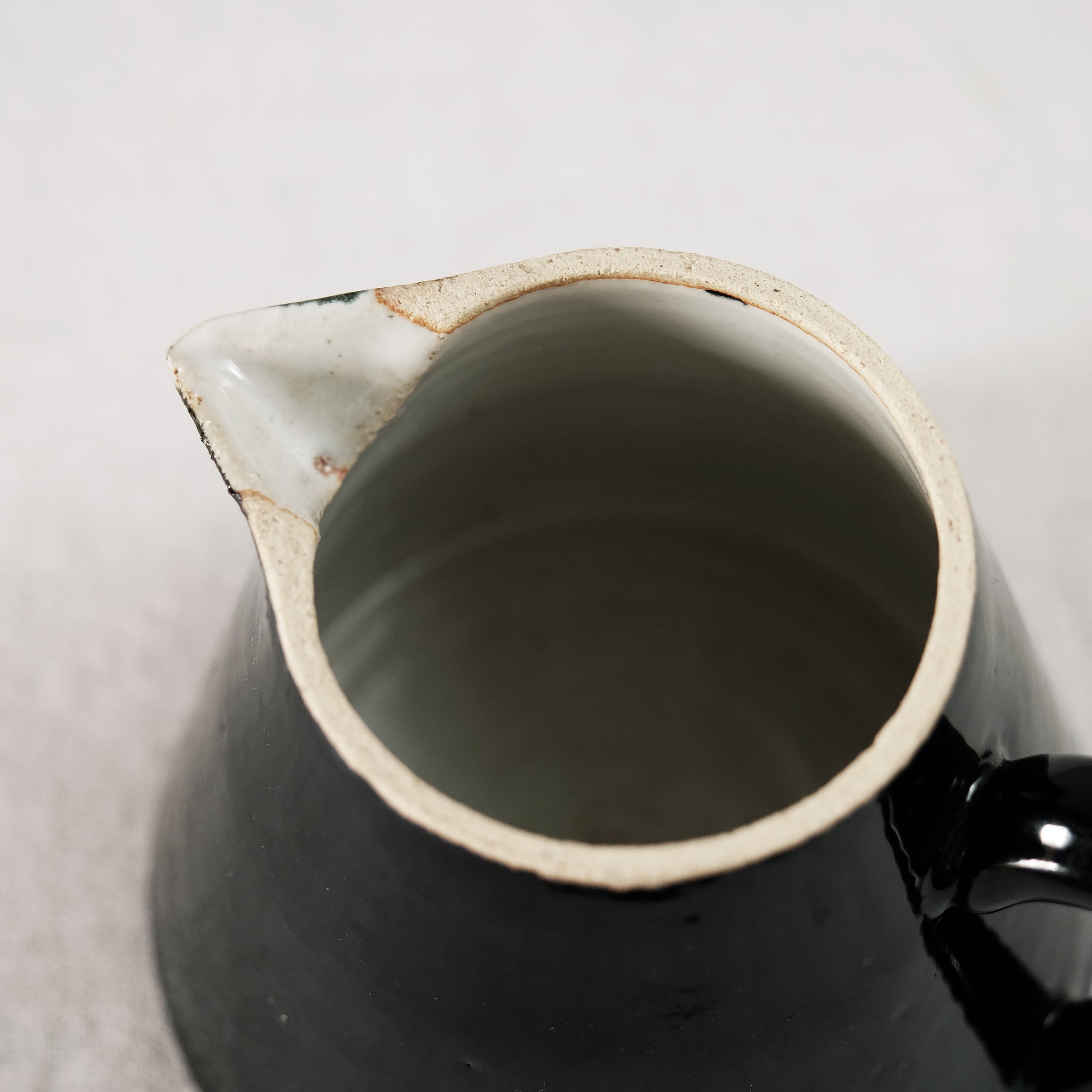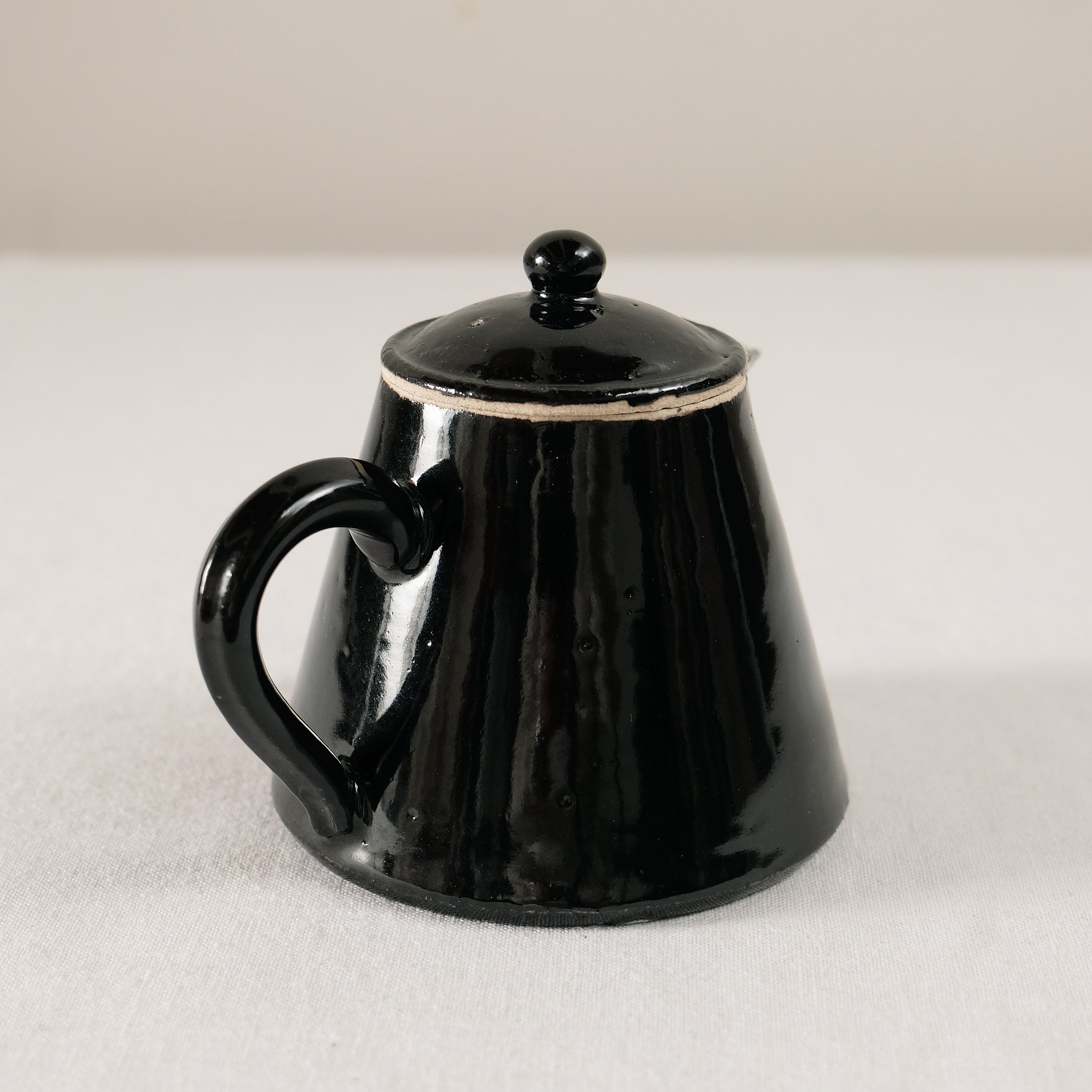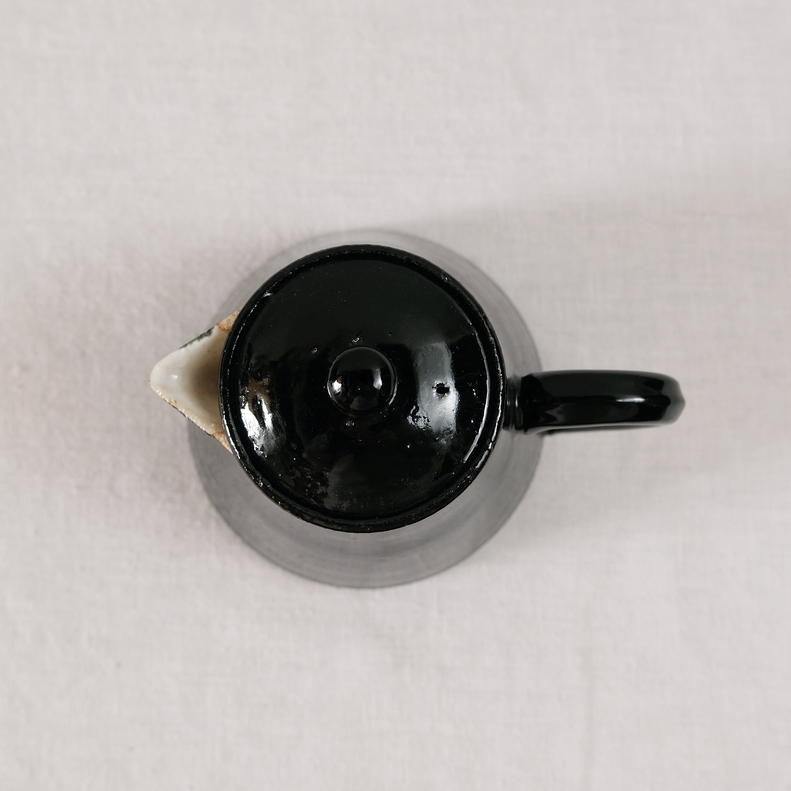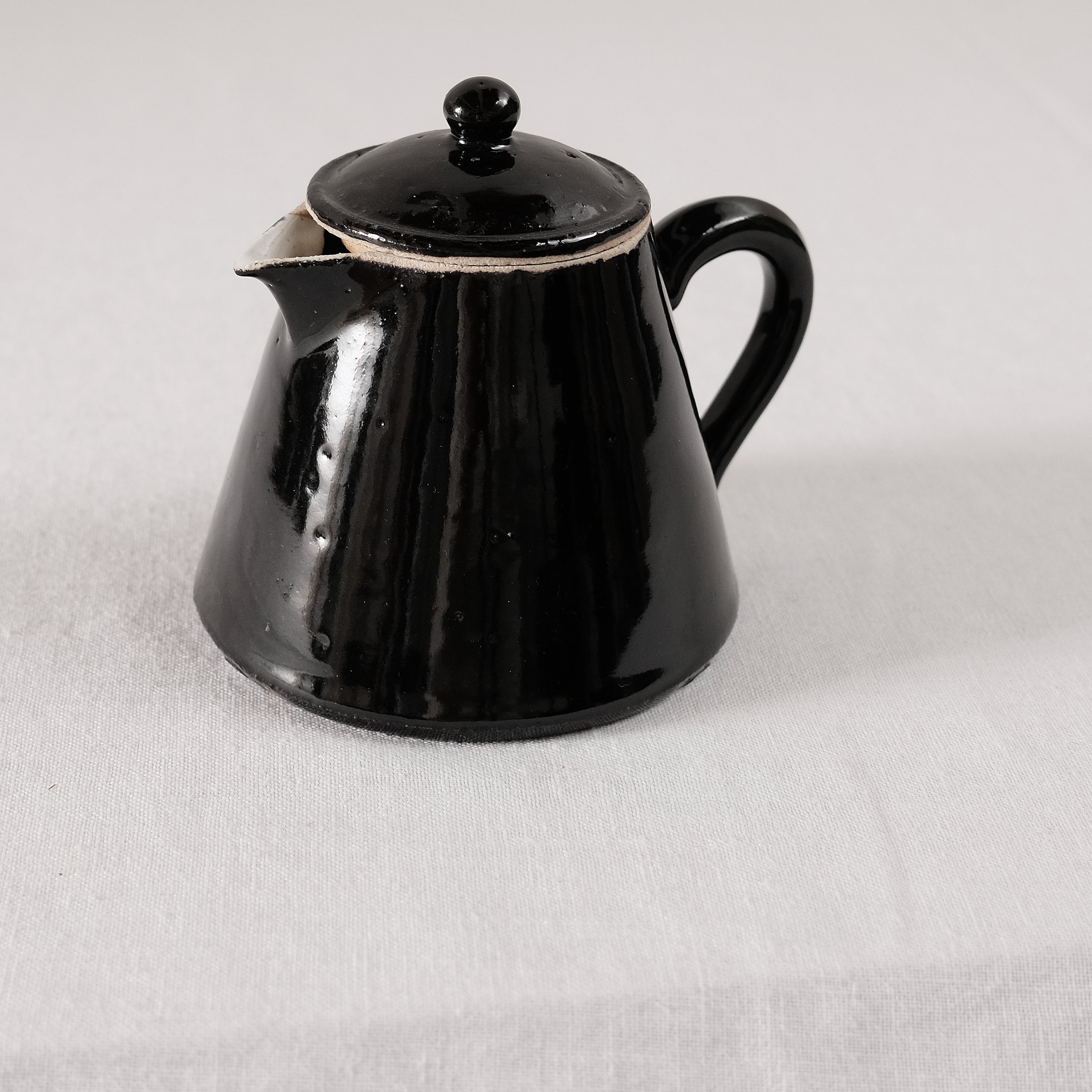 黒がとても似合うポットです。三角を基調にした意匠と丸みのあるディティールがとても具合よくマッチしています。