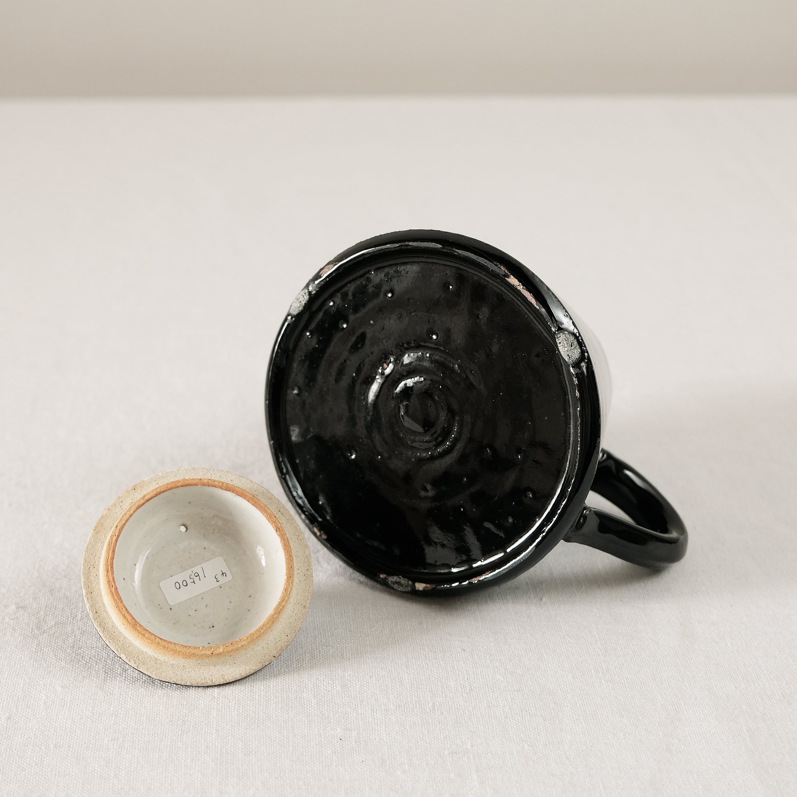 サイズ 口径6.5㎝ 注ぎ口までの幅8.2㎝ 取っ手までの幅14㎝ 底径11㎝ 高さ(蓋を含む)11㎝