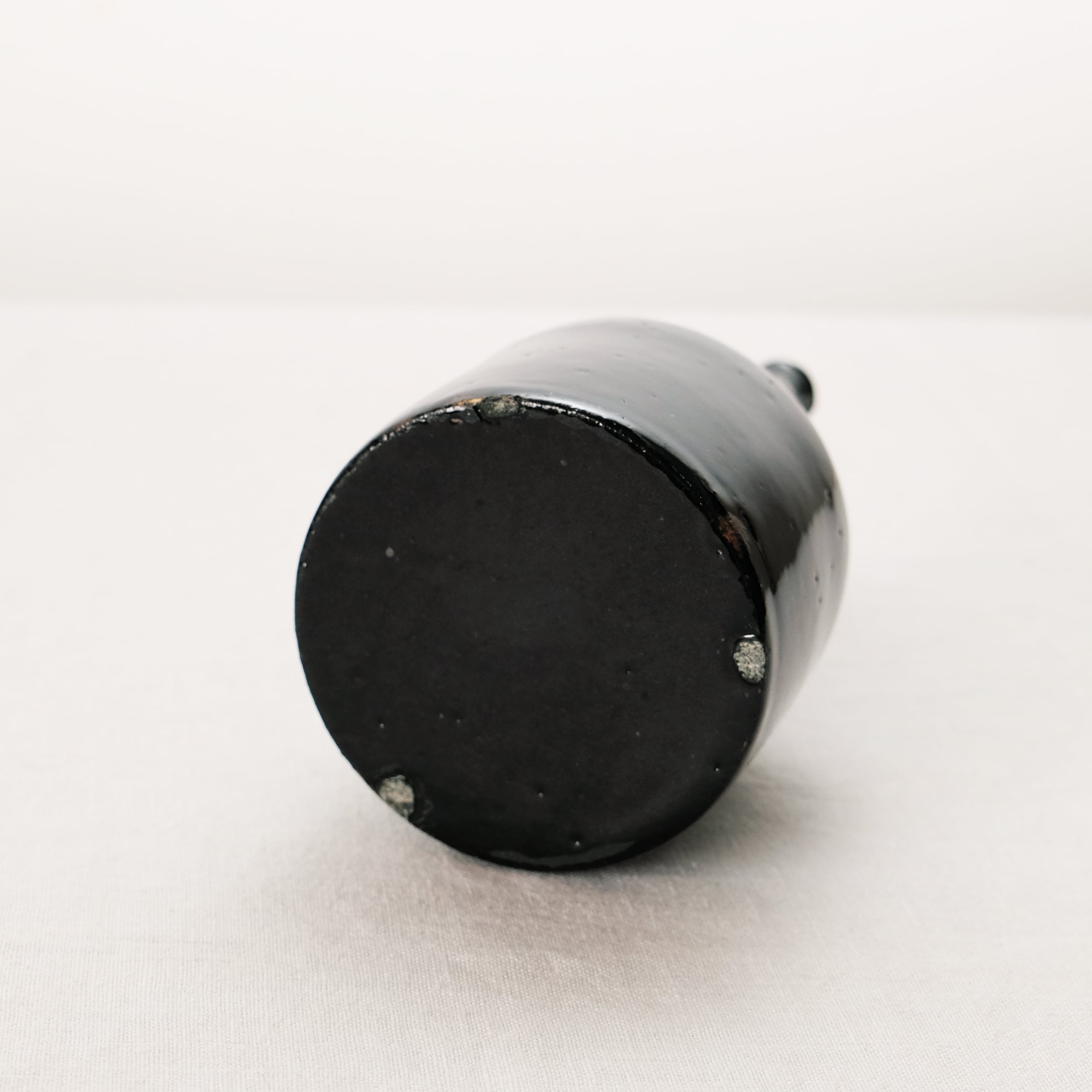 白磁をメインに活動されてきた三浦さんが、最近とても力をいれてらっしゃる黒。特に漆黒で光沢のある表情を目指すために多くの金属をを混ぜて表現しています。コバルトも含まれているので光や見る角度で青味を感じることもある複雑な表情の器です。