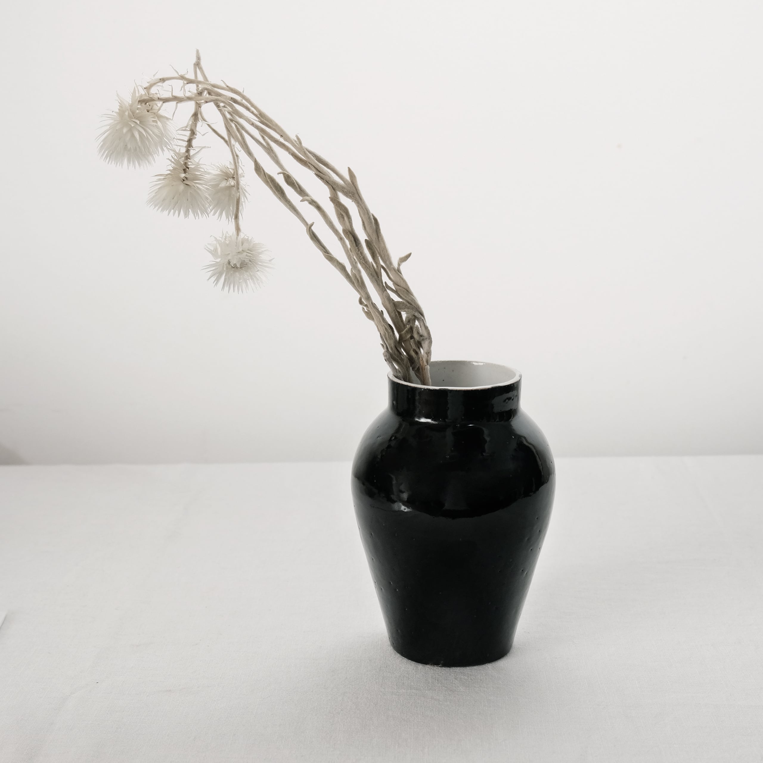 無国籍な意匠の壺(花器)は和洋中どんなしつらえにも溶け込んでくれそうな存在感です。