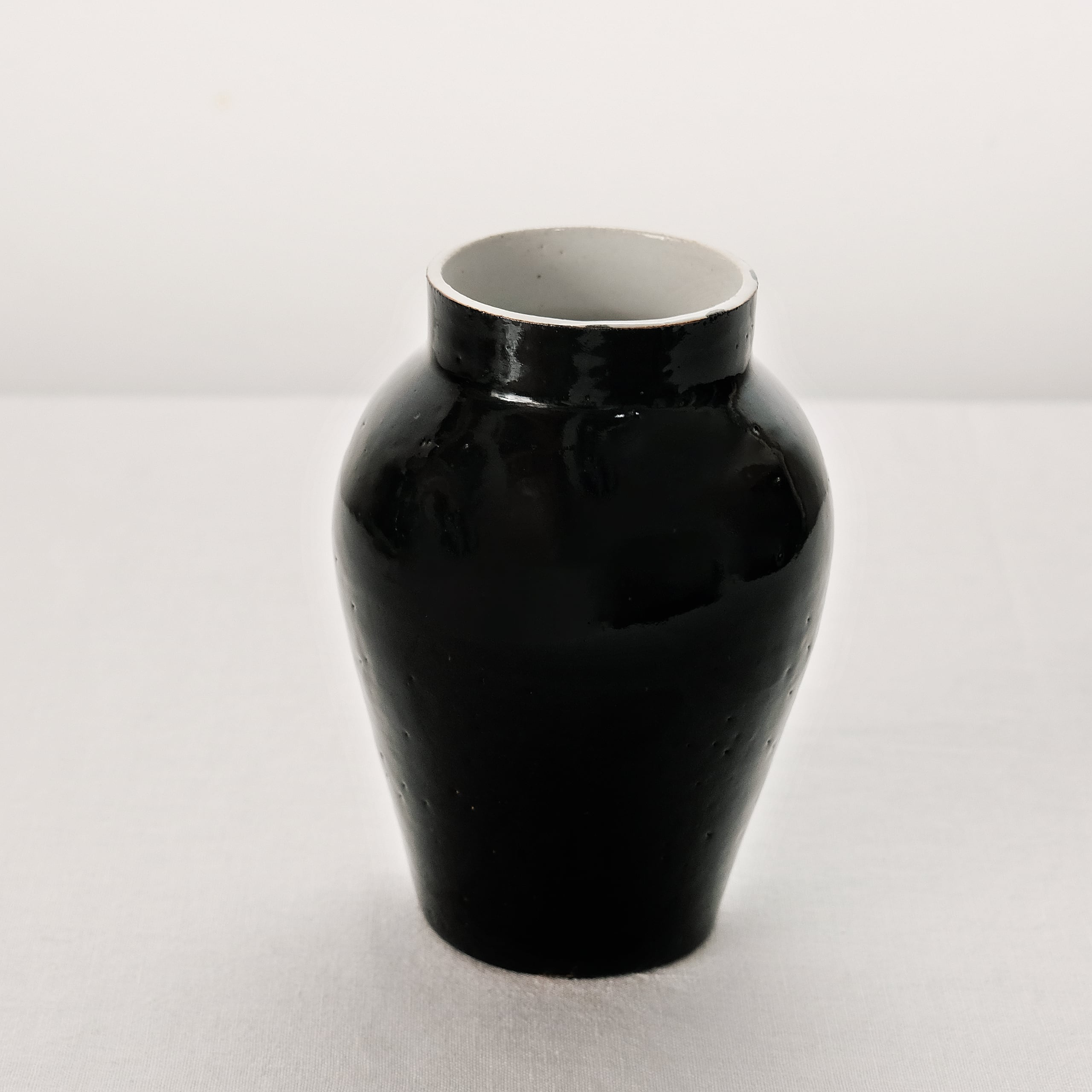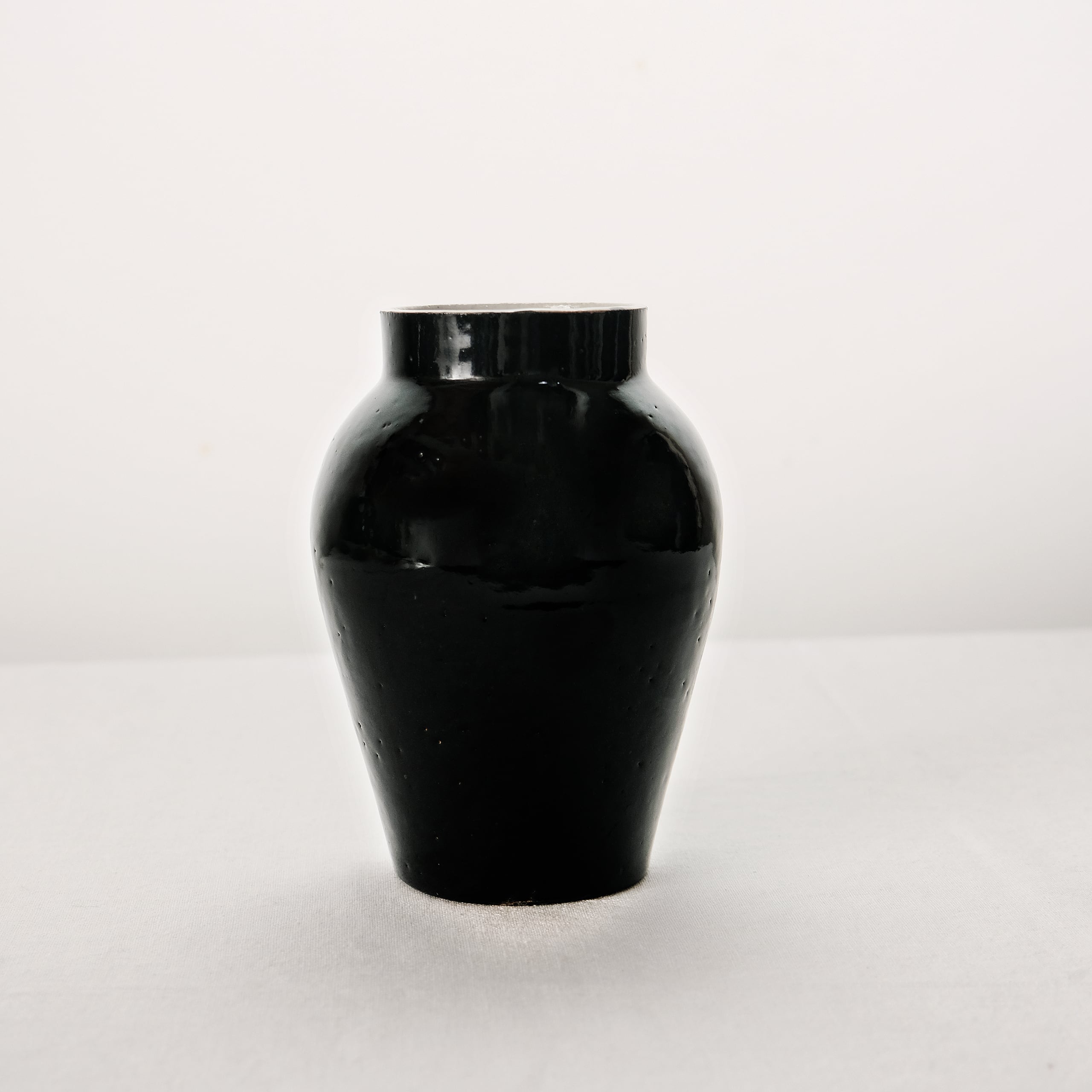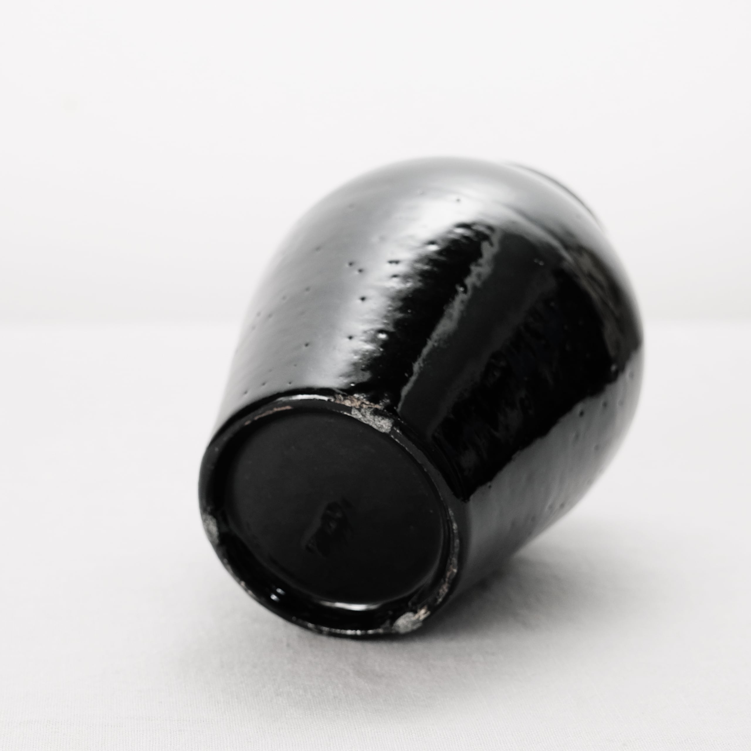 白磁をメインに活動されてきた三浦さんが、最近とても力をいれてらっしゃる黒。特に漆黒で光沢のある表情を目指すために多くの金属をを混ぜて表現しています。コバルトも含まれているので光や見る角度で青味を感じることもある複雑な表情の器です。