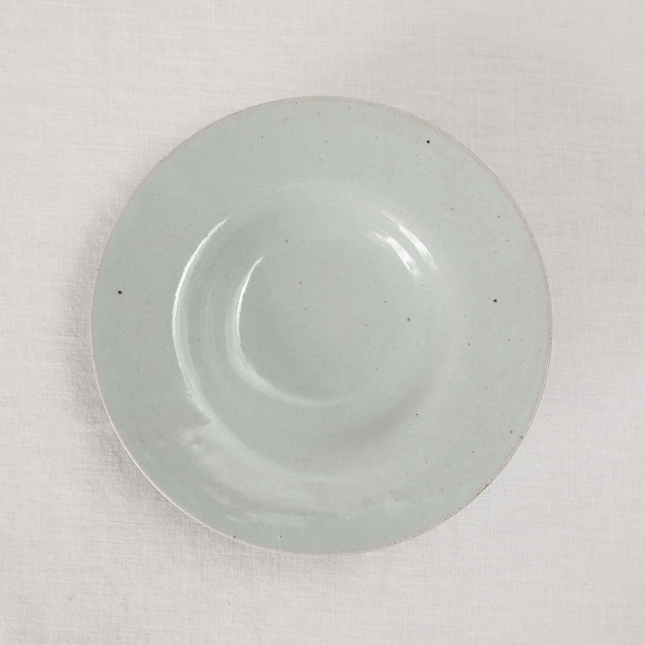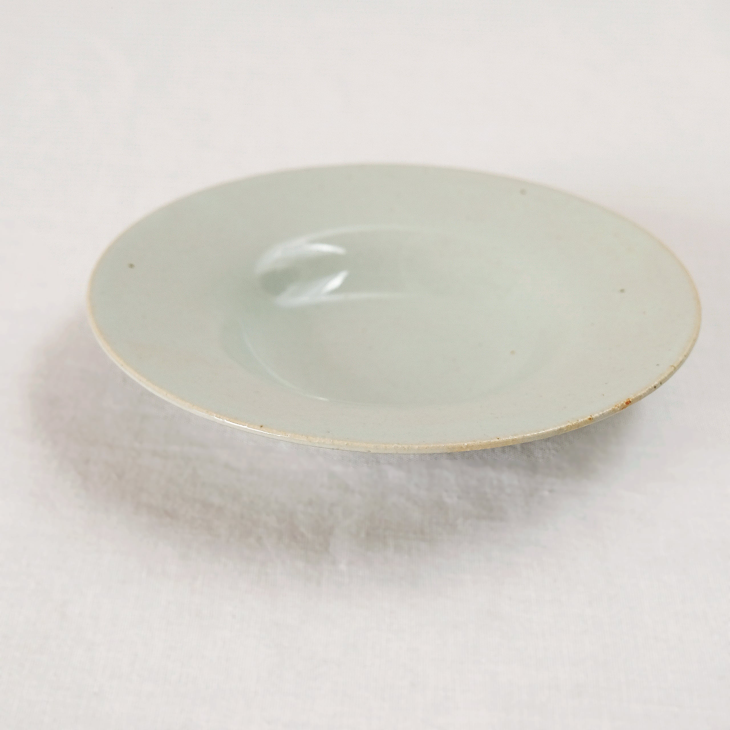 とてもシンプルなリム皿は、厚みやピンホールなどの表情がとても古物のような雰囲気のあるお皿です。
