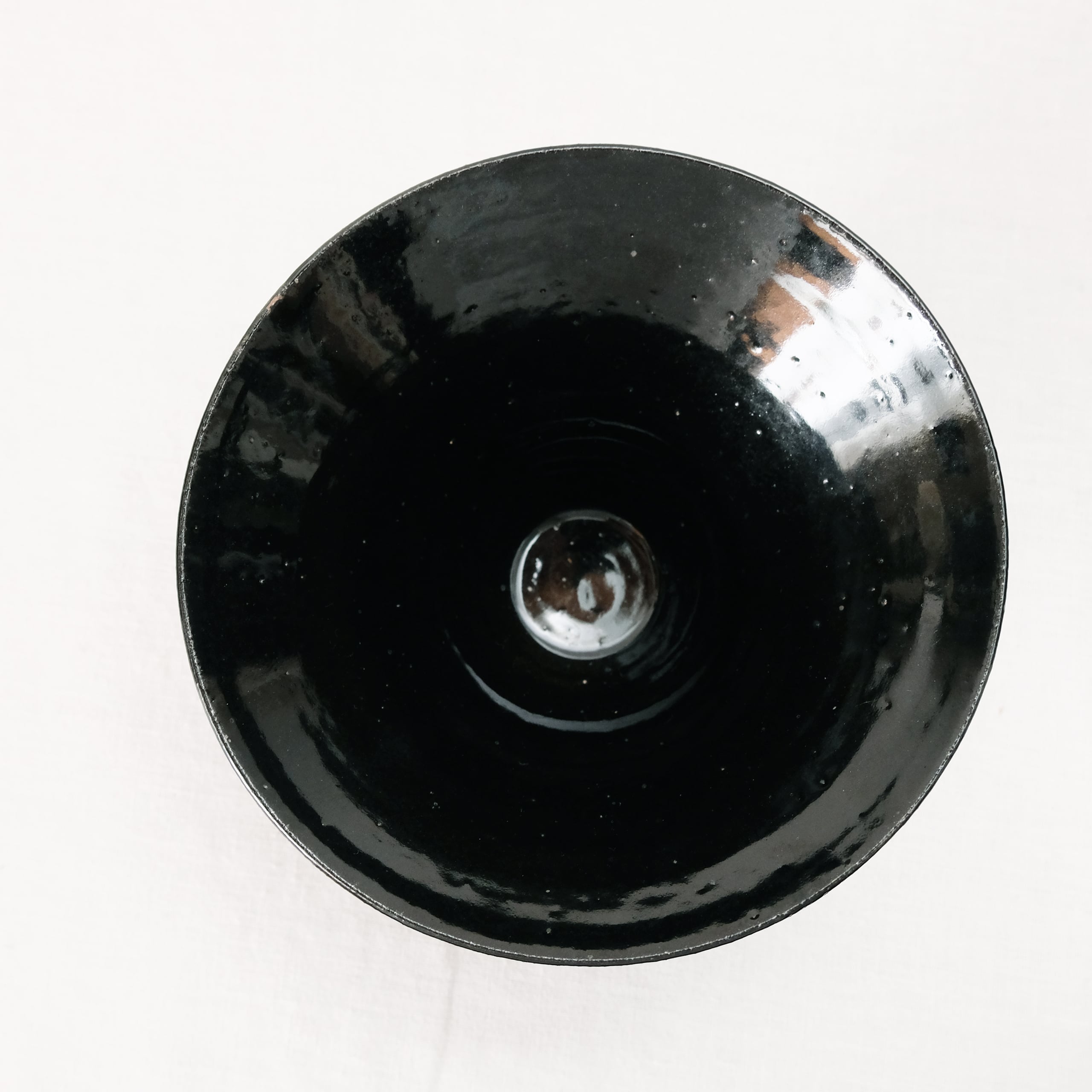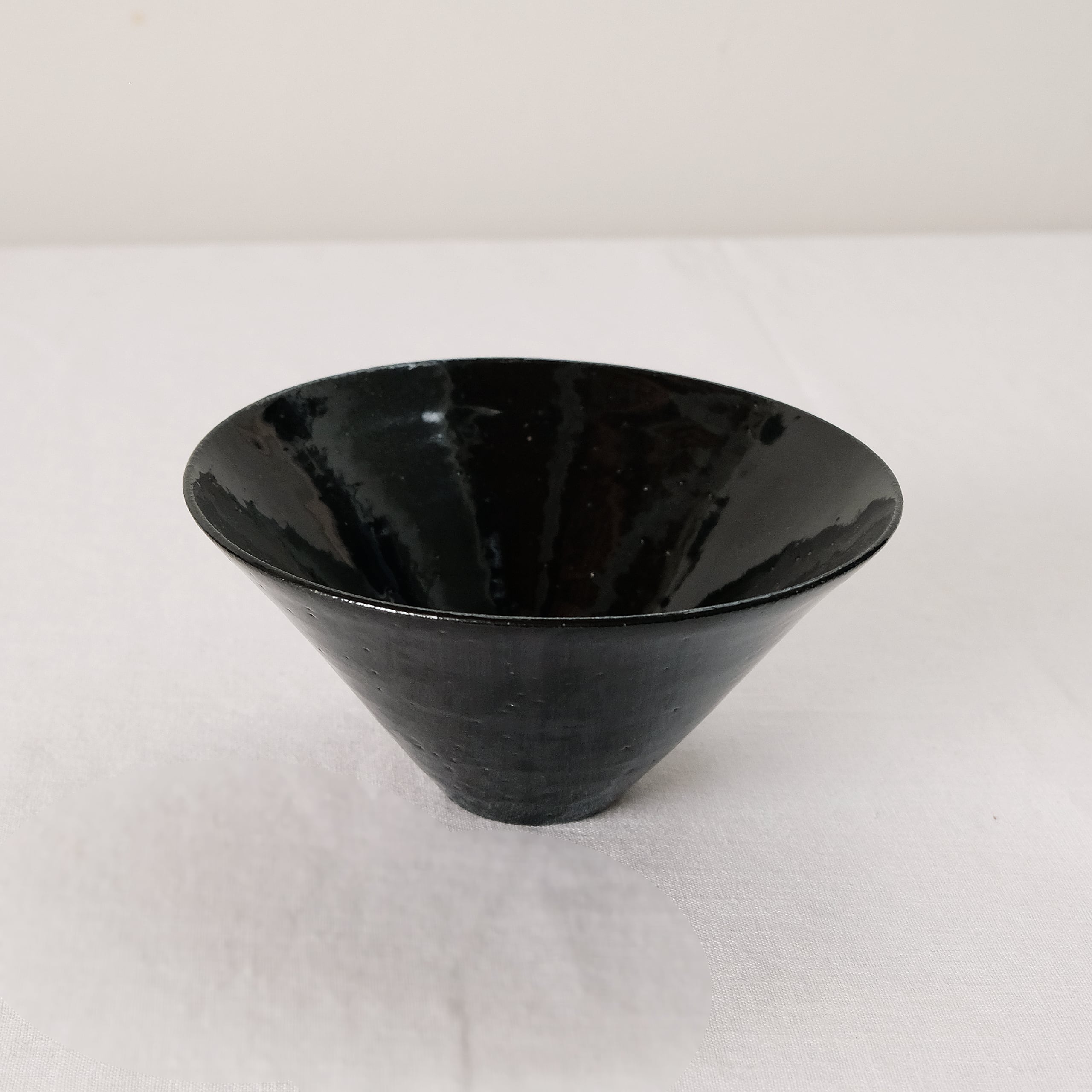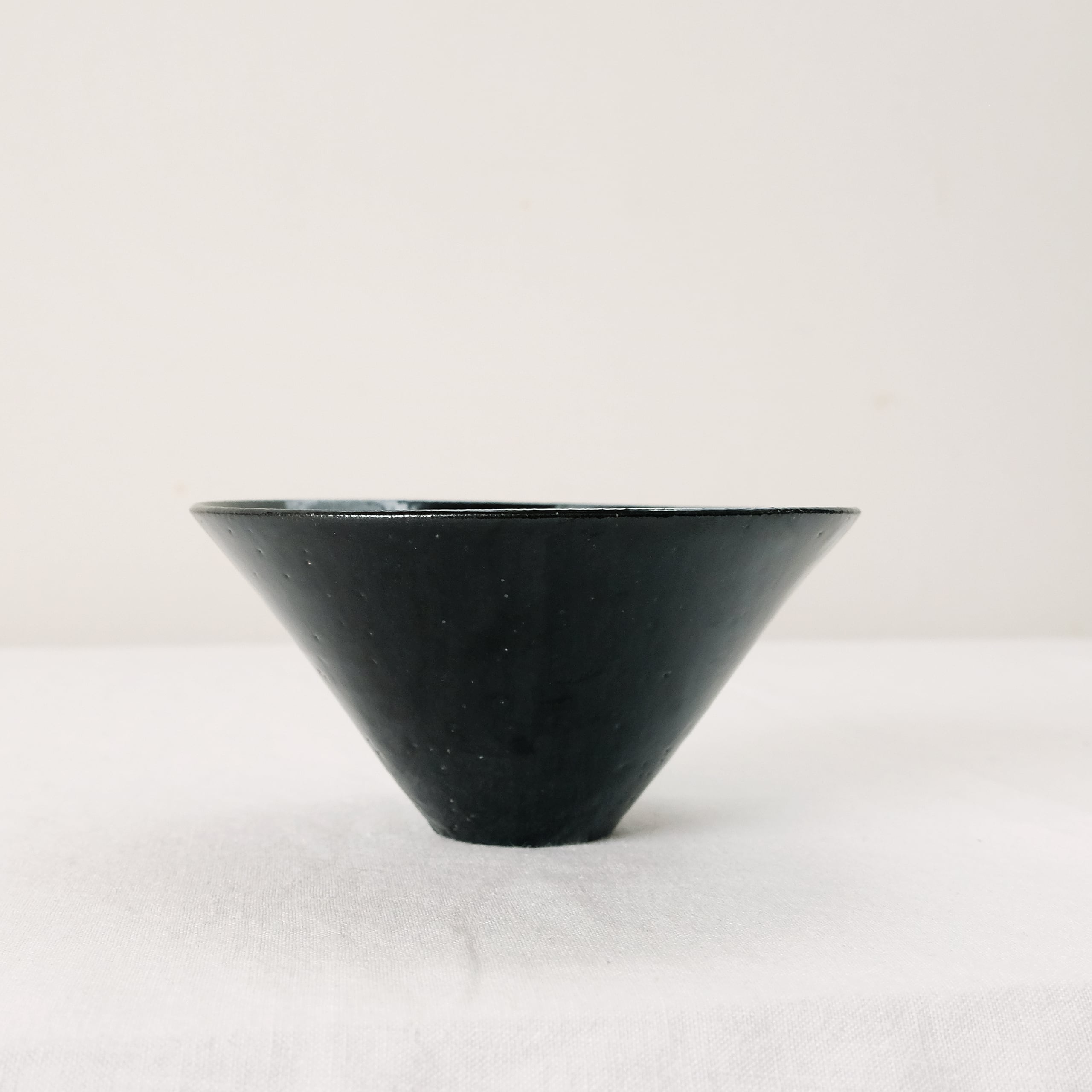 白磁をメインに活動されてきた三浦さんが、最近とても力をいれてらっしゃる黒。特に漆黒で光沢のある表情を目指すために多くの金属をを混ぜて表現しています。コバルトも含まれているので光や見る角度で青味を感じることもある複雑な表情の器です。