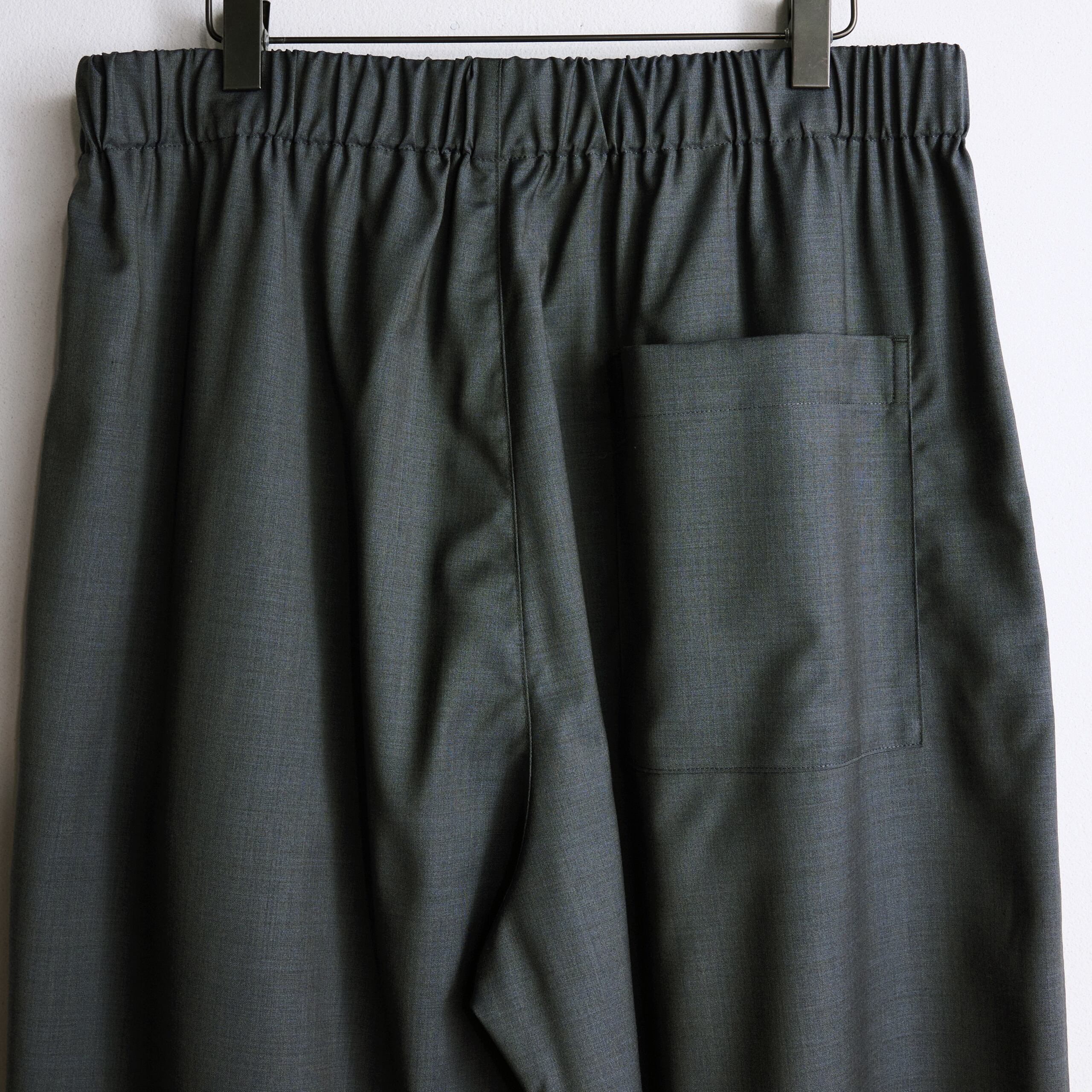 イタリアのREDA社製のしなやかでドレープのあるトロピカルウールは肌触りもドライなタッチで着心地抜群です。そのドレープ感を生かしたイージーパンツはハーレムパンツのようにボリュームたっぷりのパンツです。同素材のスキッパーシャツとセットアップとしてお使いいただけます。