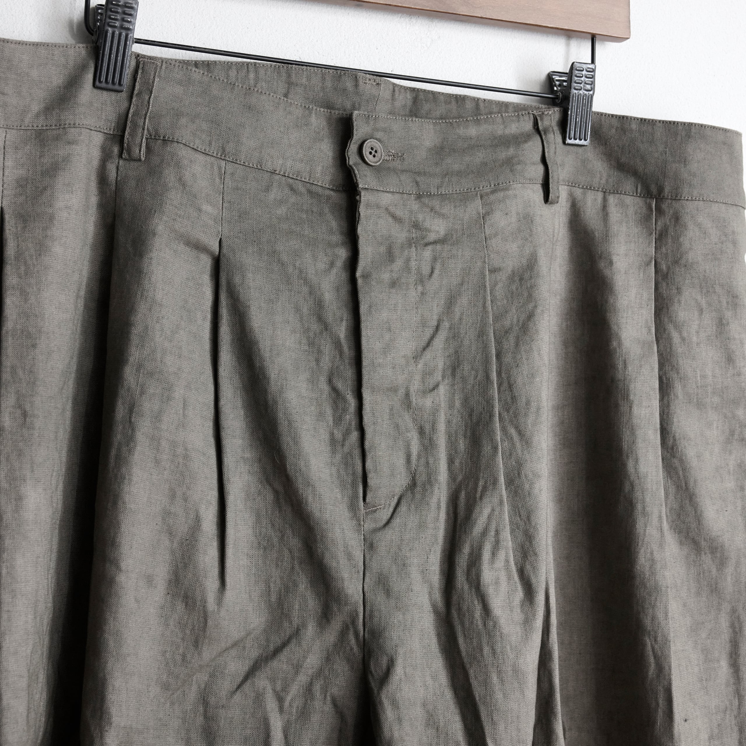 フロントに3タックを施し、腰まわりに程よい余白を持たせながら、すっきりとしたラインに仕上げており、程よく深さを持たせた股上と膝下丈により、リラックス感がありながらも、落ち着きのある印象に仕上げております。