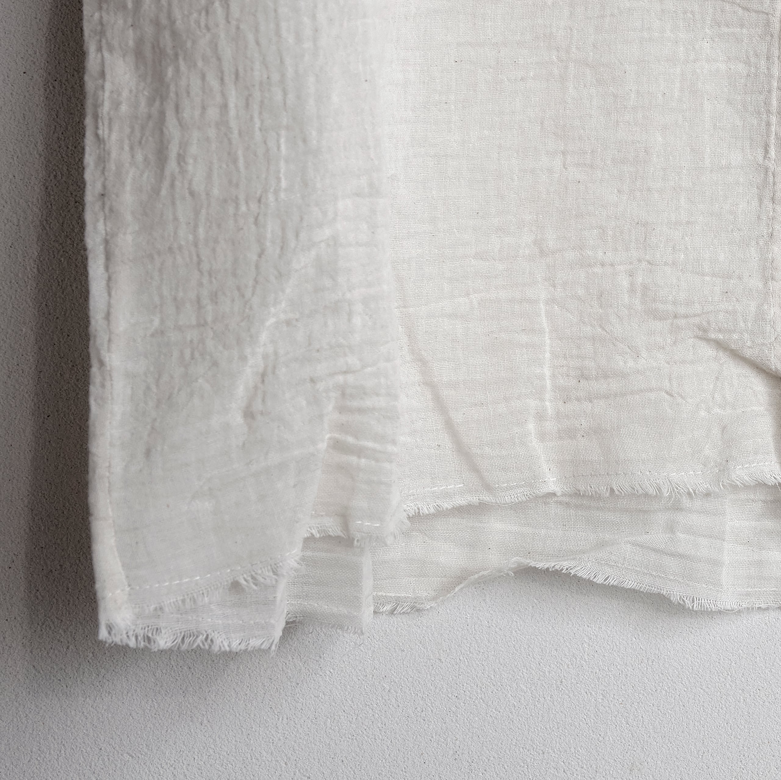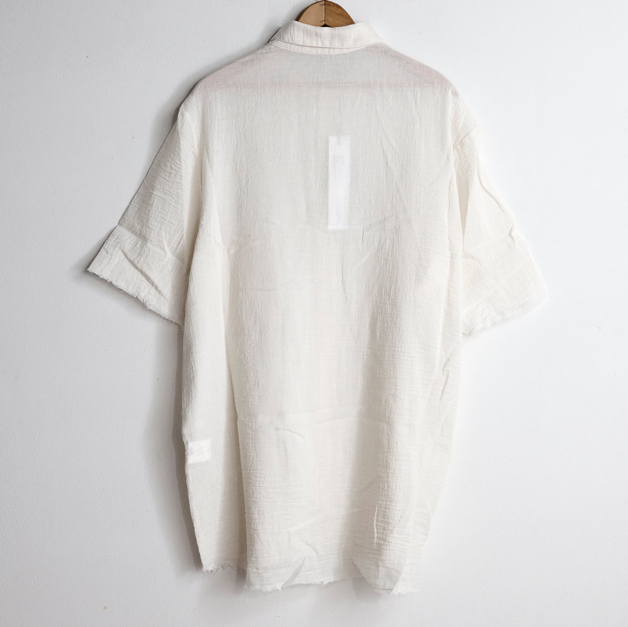 ガーゼのような柔らかな肌触りが抜群の素材を使用したシャツです。表面には楊柳のような凹凸感があり全体的にリラックスした分量感のあるサイジングなので涼し気な着心地とリラックスムードのある仕上がりとなっています。