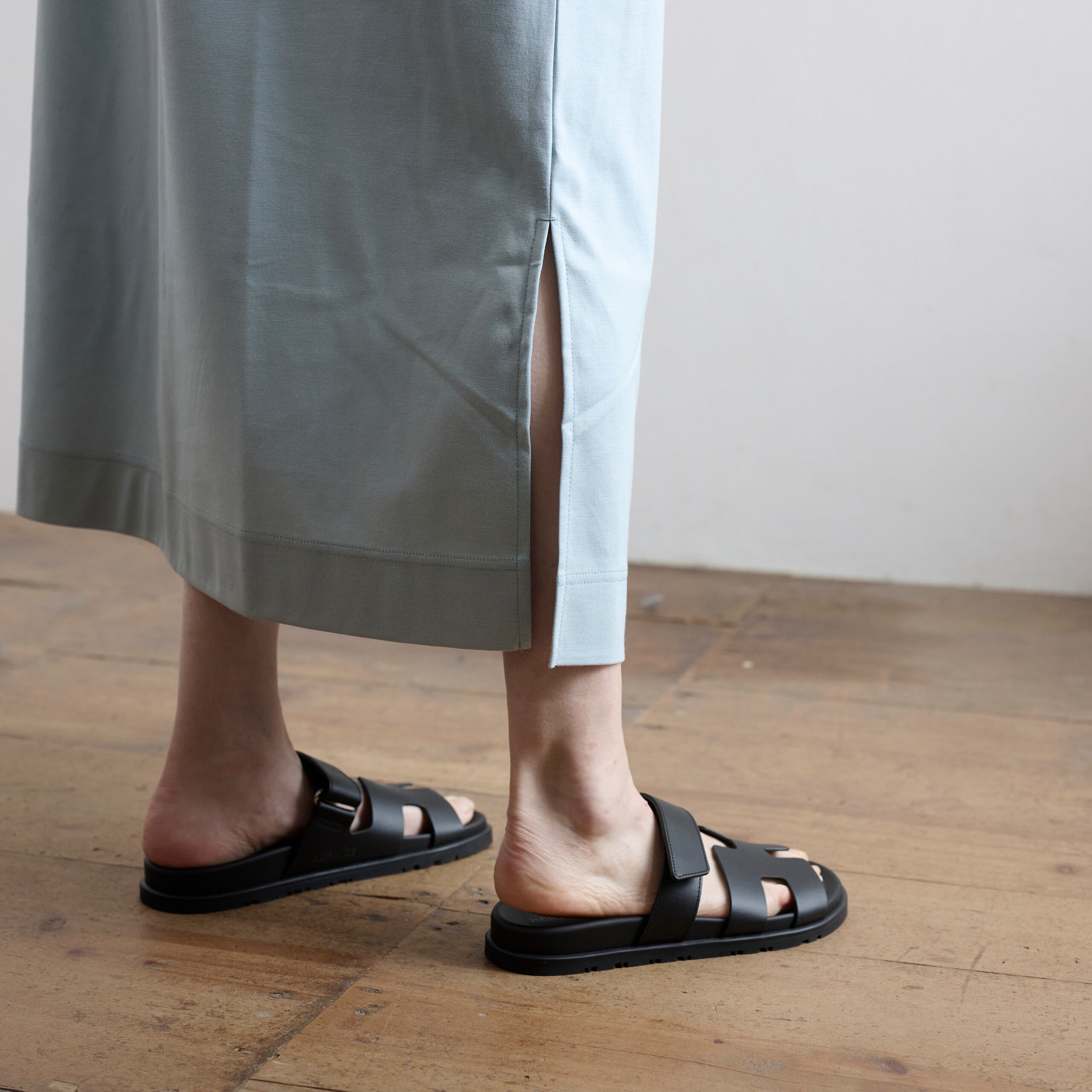 昨シーズンから人気のカットソーワンピース。こちらはクォリティの高いスローンらしい光沢のあるしなやかなコットン素材を使用しています。袖部分にプリーツを拝して二重に作られた袖部分が立体的になっていて二の腕をスッキリと見せてくれます。