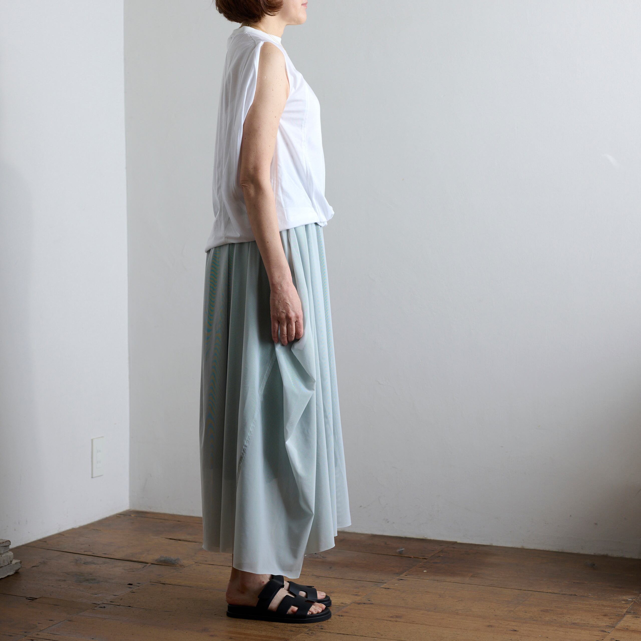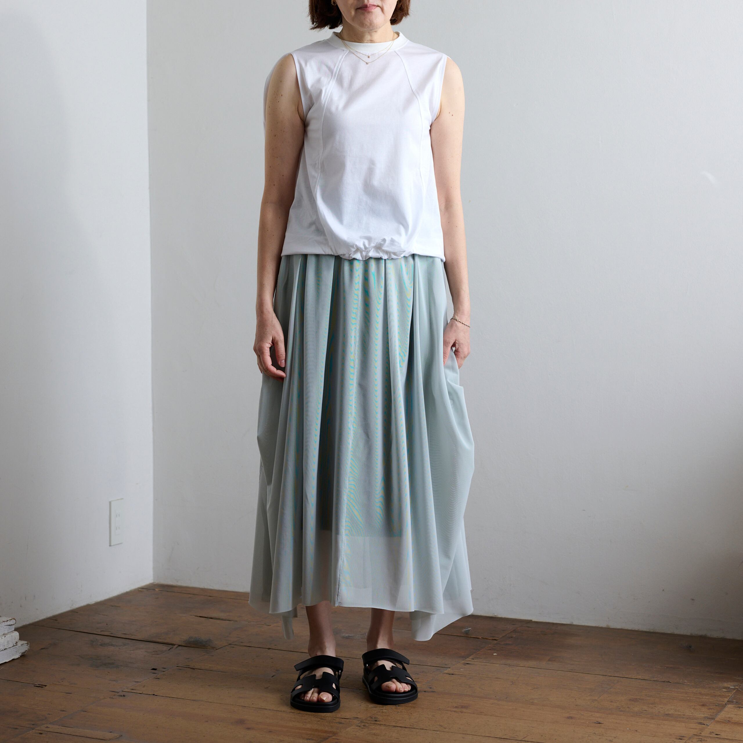 裾にギャザーを施し、トップスインしたようなデザインが特徴で、リラックスしたフォルムと程よい丸みのあるシルエットを実現。
