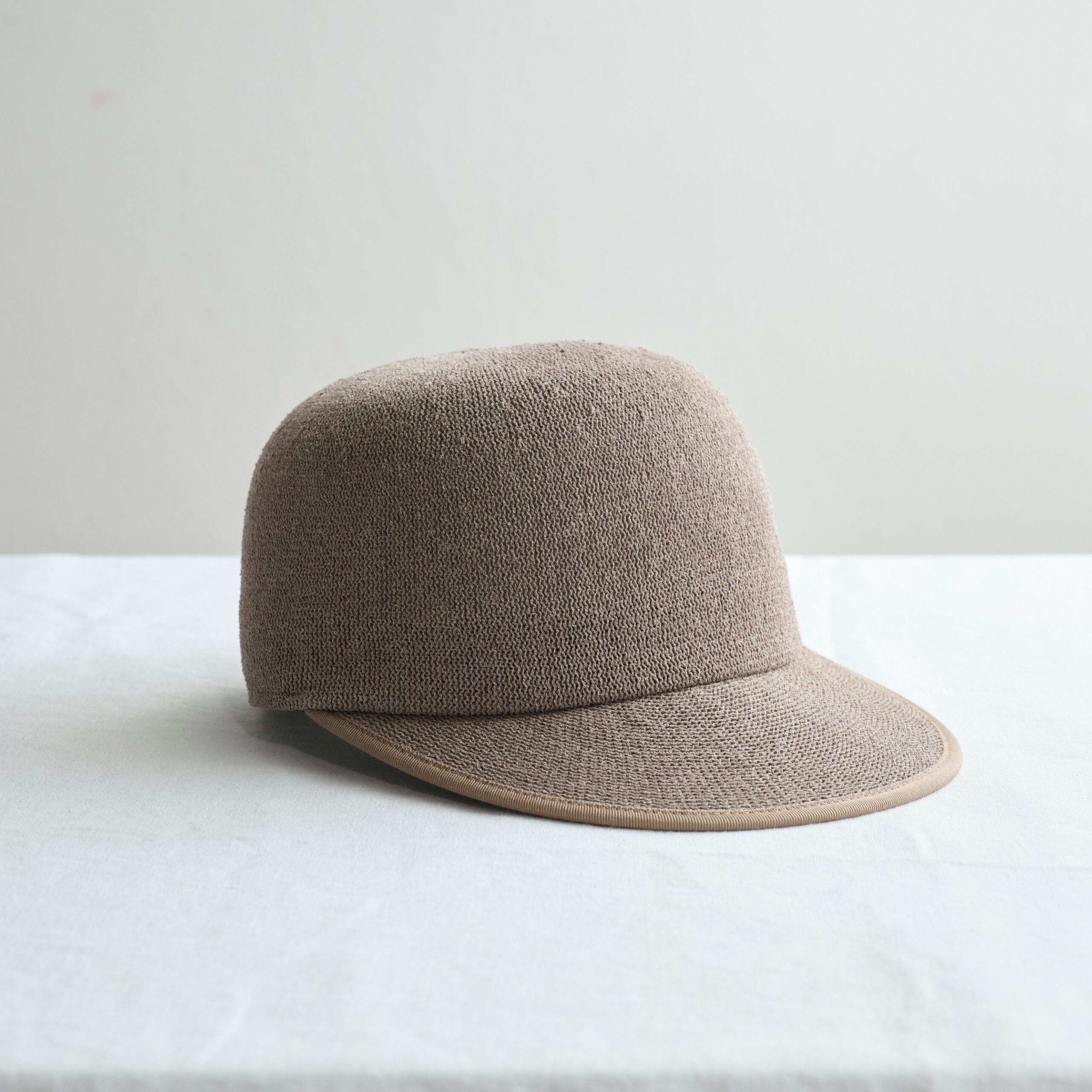 なめらかで上質な肌触りの糸にしっかりと撚りをかけ、その微光沢感が上品なサーモキャップ。