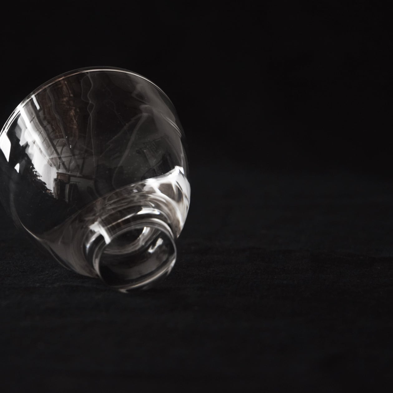 そこで、色や気泡などで模様をつけたりせず、また、道具などでガラス表面を触って形を整えることもせず、ただ、重力と竿を回す遠心力とだけを用いて制作しています。簡単な道具、単純な技法によって、作為のないシンプルなフォルムが現われるよう心がけています。ピン・ブロウならではの柔らかさと透明感の高い仕上がりが特徴です。